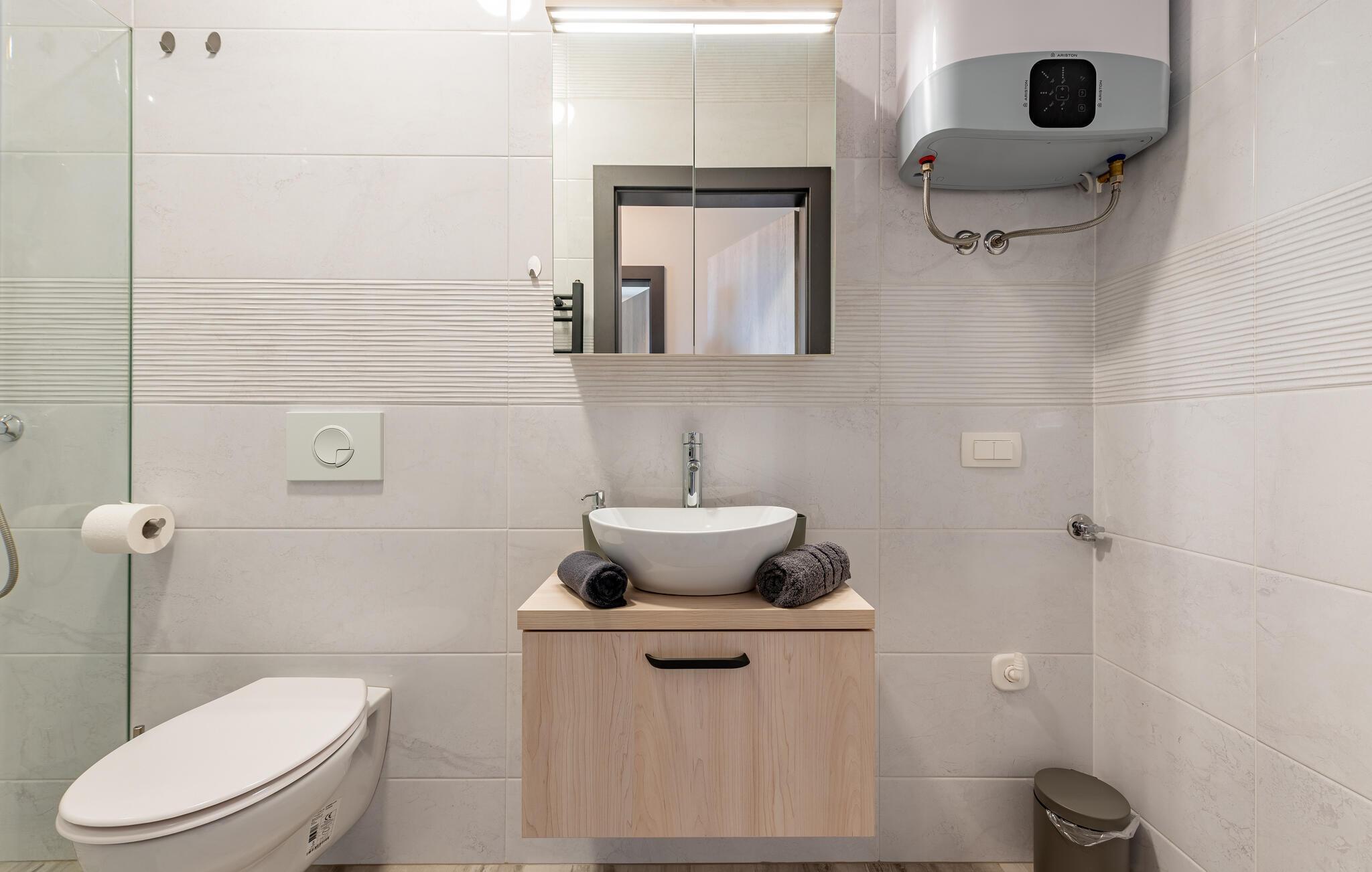 Badezimmer 4m2 (nr. 1) - WC. Warmes und kaltes Wasser. Dusche