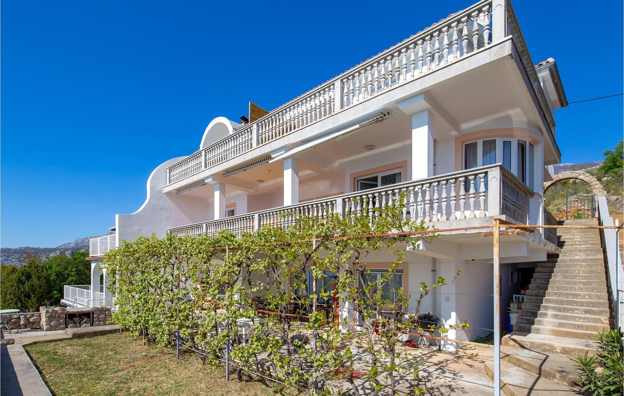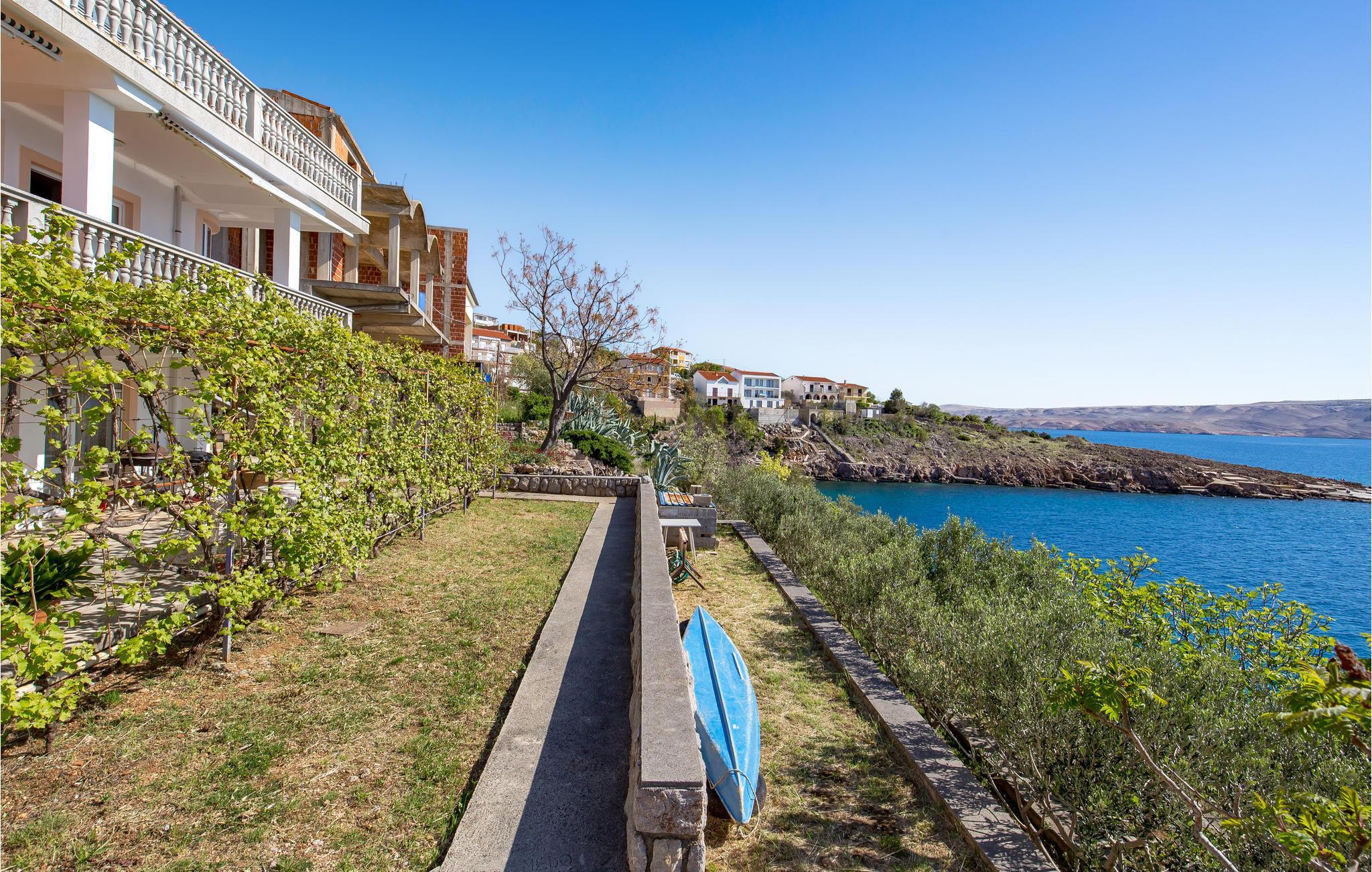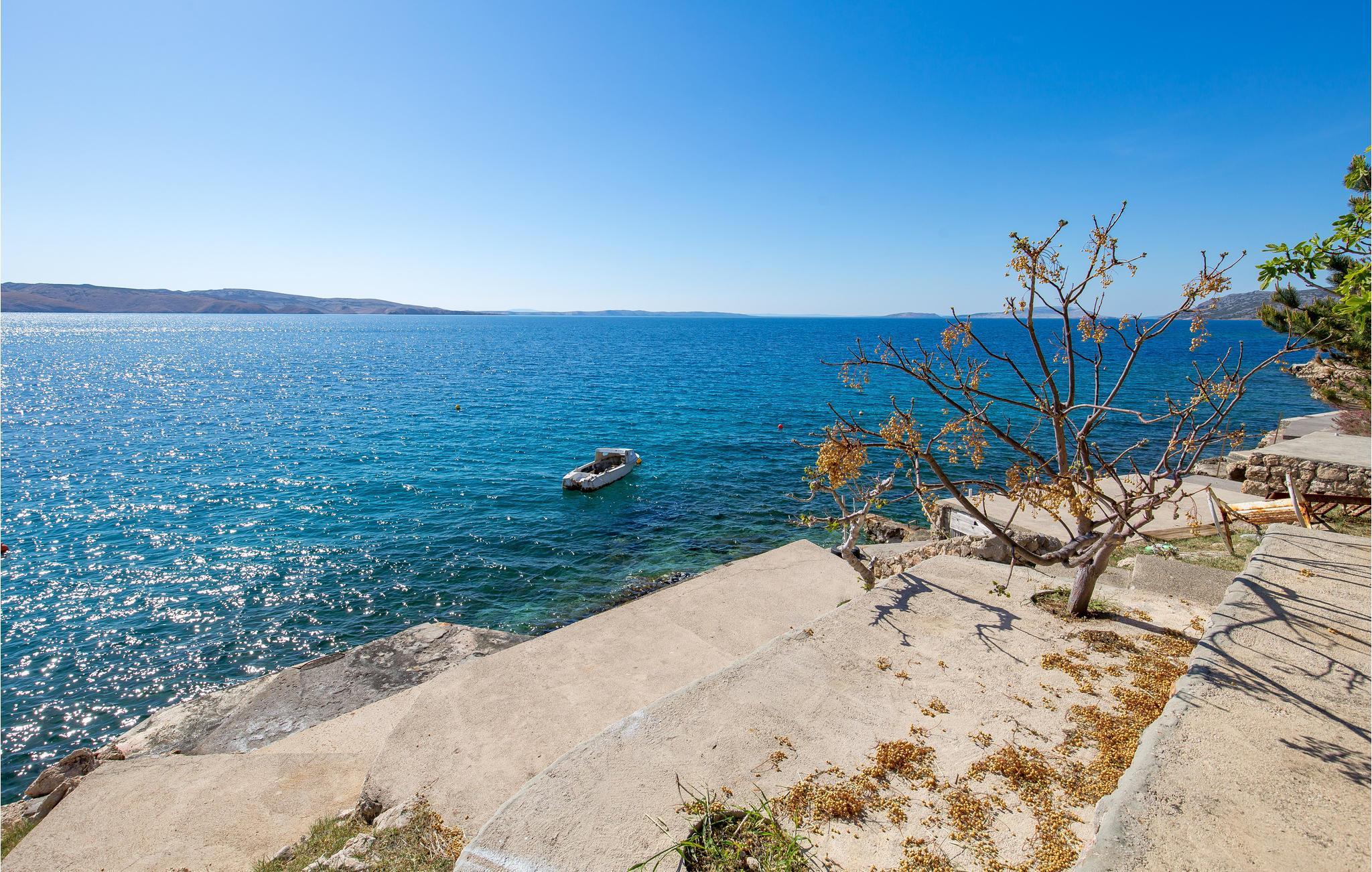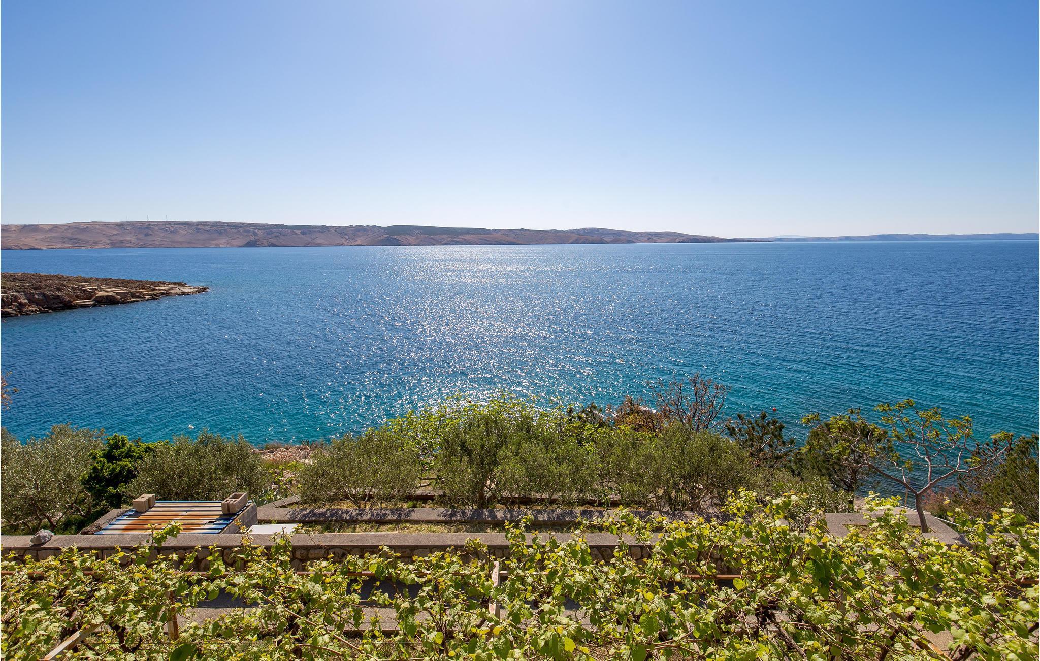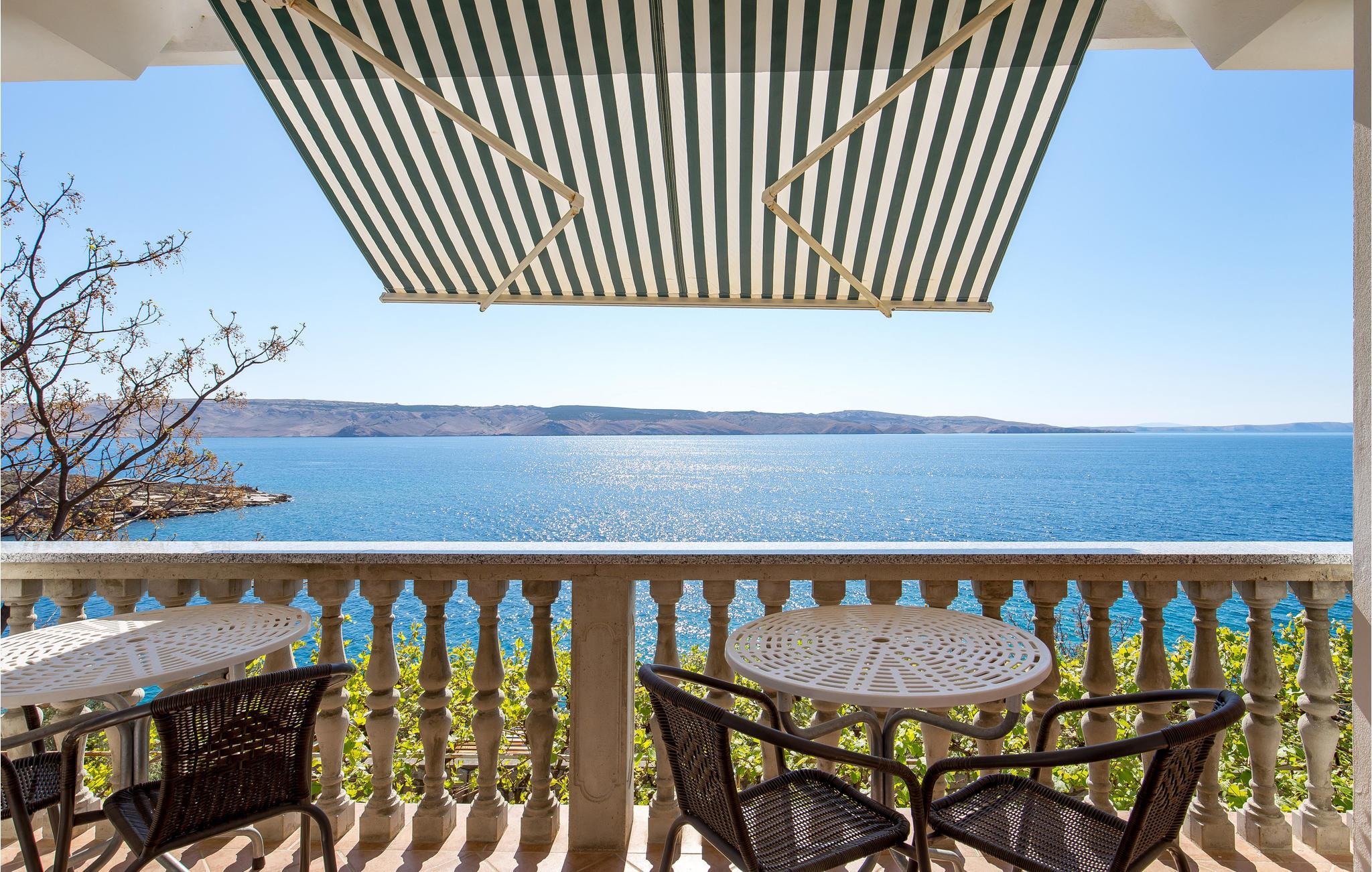 Entspannen Sie auf der großen überdachten Terrasse mit unvergesslichem Blick auf das Meer und die Insel Pag.