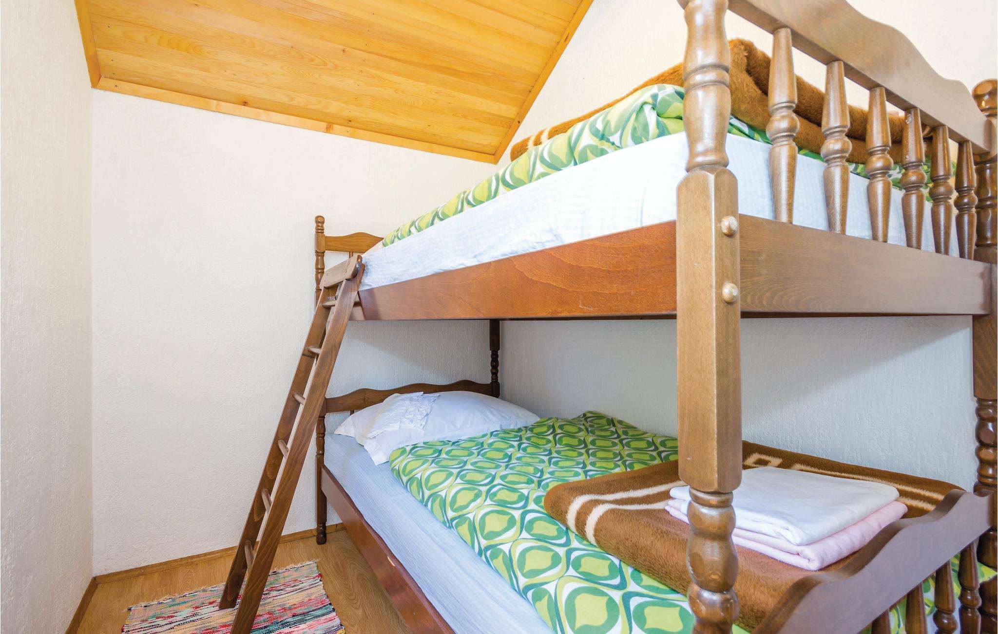 Nicht weit von Senj liegt der kleine Ort Zukalj mit diesem kleinen Haus. Im Erdgeschoss ist eine Garage mit Bodenbearbeitungsmaschinen, im Obergeschoss liegt die einfach eingerichtete Ferienwohnung. Hier können Sie ungestört in einer ruhigen Natur entspannen. Zukalj liegt ca. 1000 m über den Meeresspiegel und ist ideal für einen Urlaub während der heißen Sommertage. Wenn Sie das Verlangen nach gesellschaftlichen Ereignissen haben, finden Sie diese im 20 km entfernten Senj. Diese Gegend ist der Eingang zum Nationalpark Nord-Velebit. Vor Ort verläuft ein Radweg, aber auch Wandern und Fotografieren sind hier beliebte Aktivitäten.