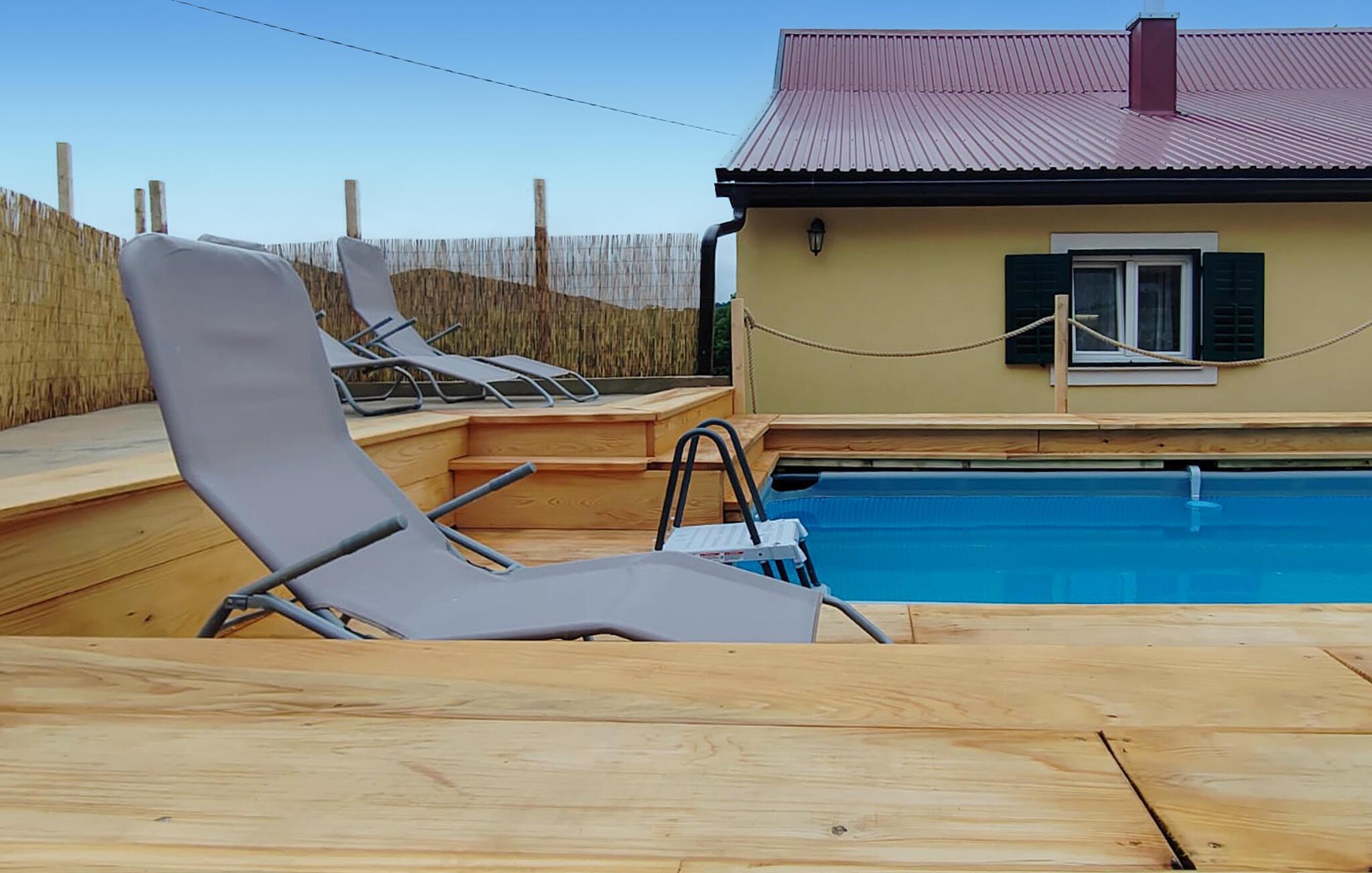 Verlieben Sie sich in den rustikalen Charme dieses komfortablen Ferienhauses mit Pool in ruhiger Lage.