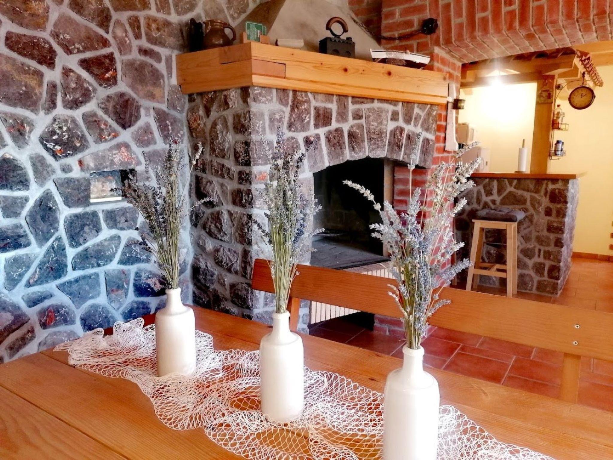 Die Wohnung befindet sich im Erdgeschoss des Hauses. Sie ist ca. 55 m² groß und bietet Platz für vier Personen. Das Wohn-/Esszimmer ist mit einem Schlafsofa für zwei Personen und einem Flachbild-Fernseher eingerichtet. Der Essbereich ist mit einem Holztisch und zwei passenden Sitzbänken rustikal gestaltet, was perfekt mit dem Sichtmauerwerk und der Holzbalkendecke harmoniert. Der angrenzende Kochbereich besitzt einen gemauerten Küchentresen, ebenfalls Sichtmauerwerk, und ist mit Induktionsherd, Kühlschrank, Mikrowelle und Wasserkocher ausgestattet. Das gemütliche Schlafzimmer verfügt über ein 160 cm breites Doppelbett und einen Kleiderschrank. Die Wohnung hat ein Badezimmer, welches mit Dusche, WC und Waschbecken ausgestattet ist. Auch ein WLAN-Anschluss ist vorhanden. Die Klimaanalge befindet sich im Wohnraum und ist so positioniert, dass sie die gesamte Wohnung kühl halten kann.