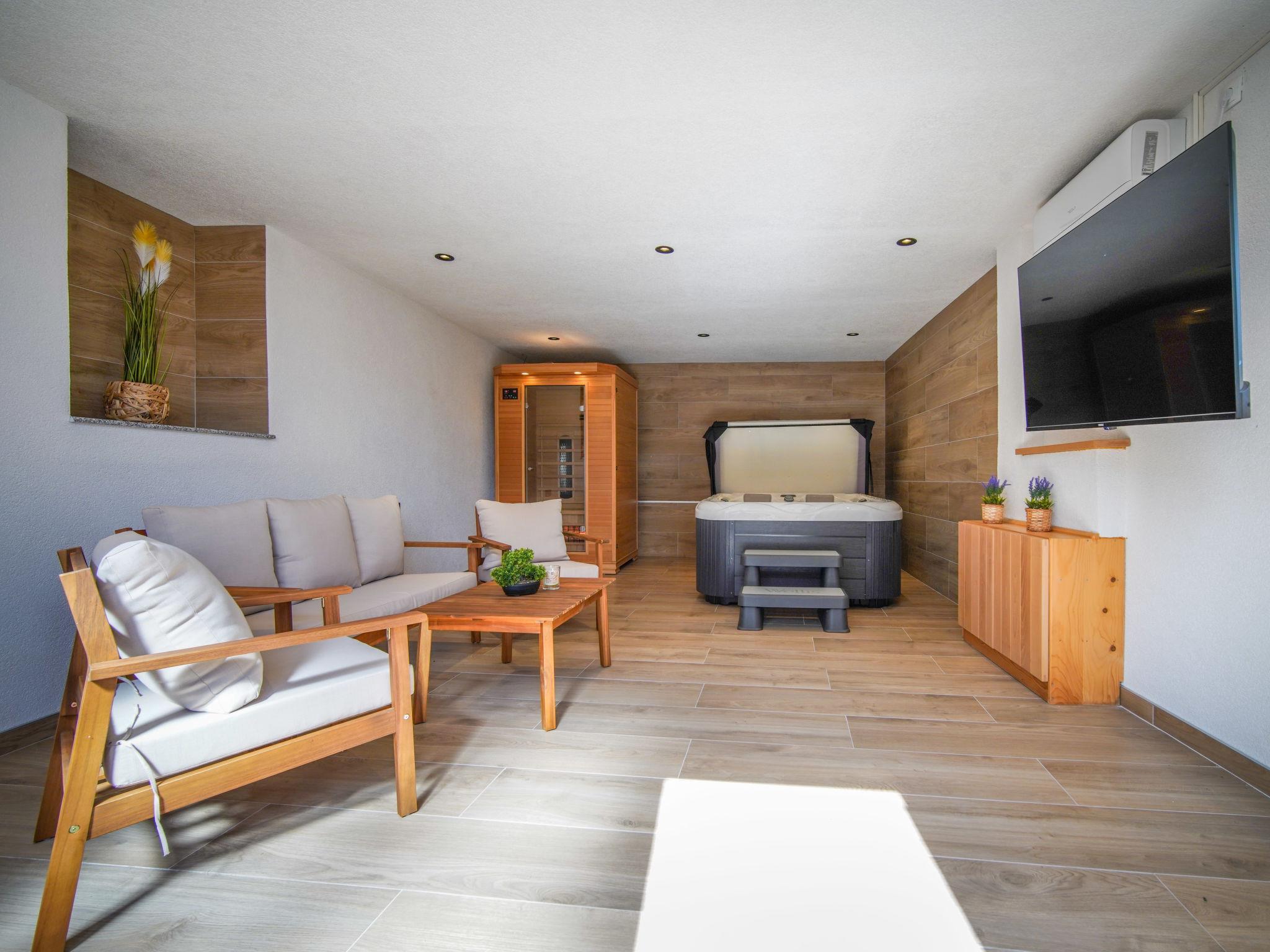 3-Zimmer-Chalet 80 m2 auf 2 Stockwerken, Südlage. Mit viel Holz eingerichtet: Wohn-/Esszimmer 35 m2 mit 1 Diwanbett (140 cm, Länge 200 cm), Sat-TV (Flachbildschirm), Holzofen und Klimaanlage. Ausgang zum Balkon. Offene Küche (Backofen, Geschirrspüler, 4 Glaskeramikplatten, elektrische Kaffeemaschine). Dusche/WC. Dachgeschoss: (Wendeltreppe) 1 abgeschrägtes Zimmer, Deckenhöhe 120 - 255 cm mit 1 franz. Bett (140 cm, Länge 200 cm). Ausgang zum Balkon. 1 abgeschrägtes Zimmer, Deckenhöhe 120 - 255 cm mit 1 franz. Bett (180 cm, Länge 200 cm). Ausgang zum Balkon. Sep. WC. Holzheizung, Warmluftheizung. Balkon 6 m2, 2 Balkone 4 m2, Terrasse 10 m2, überdacht. Terrassenmöbel. Sicht auf die Landschaft. Zur Verfügung: Holz (gratis). Internet (WLAN, gratis).