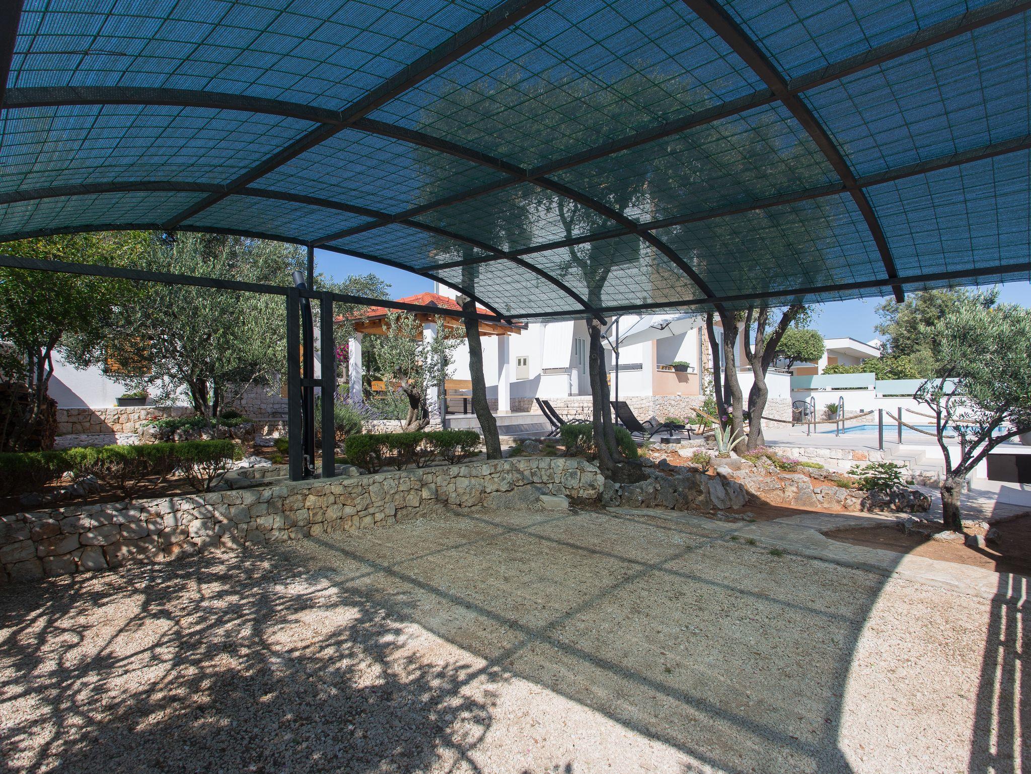 Umgebung des Objekts (Eingerichtet), Hof (340m2, Kinderbereich, Sitzbereich), Parkplatz (Anzahl der Parkplätze: 2, Entfernung vom Objekt: im Hof), Pool: privat, Dimensionen: 7m x 3.5m x 1.5m, Wassertyp: Salzwasser, WiFi Internet, Bootsanlegeplatz (Entfernung vom Objekt: 100 m, Bootsanlegeplatztyp: an der Küste), Föhn, Bügeleisen, Bügelbrett, Sonnenschirm