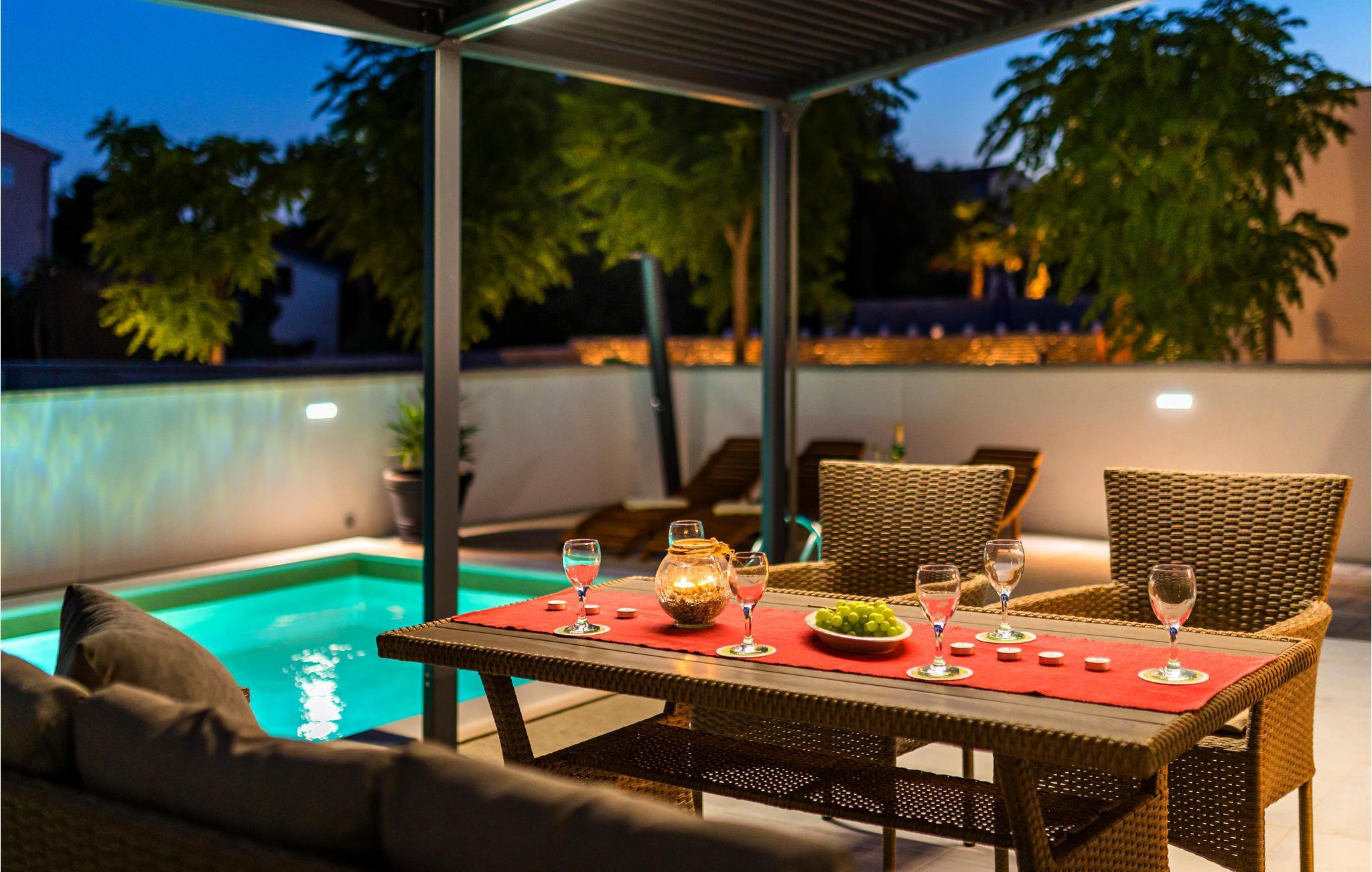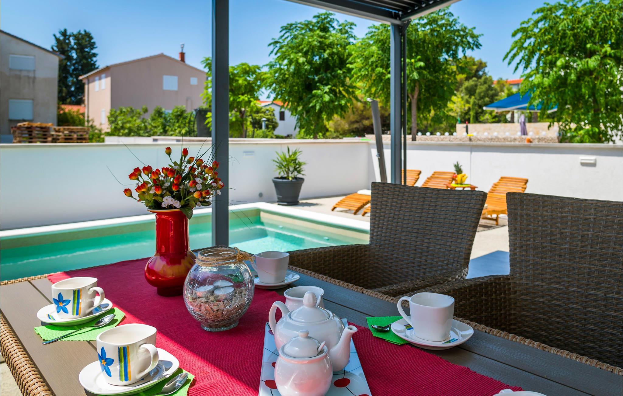 Genießen Sie Ihre Mahlzeiten auf der überdachten Terrasse und springen anschließend in den Pool für eine kurze Erfrischung. Legen Sie sich dann in die Sonne und kommen einfach zur Ruhe.