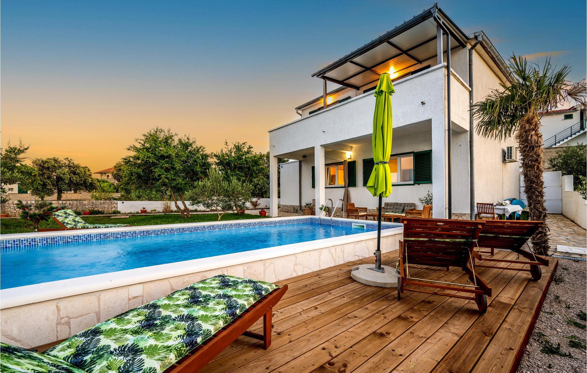 Das moderne Ferienhaus mit Pool ist die ideale Basis für einen Familienurlaub nahe dem Strand.