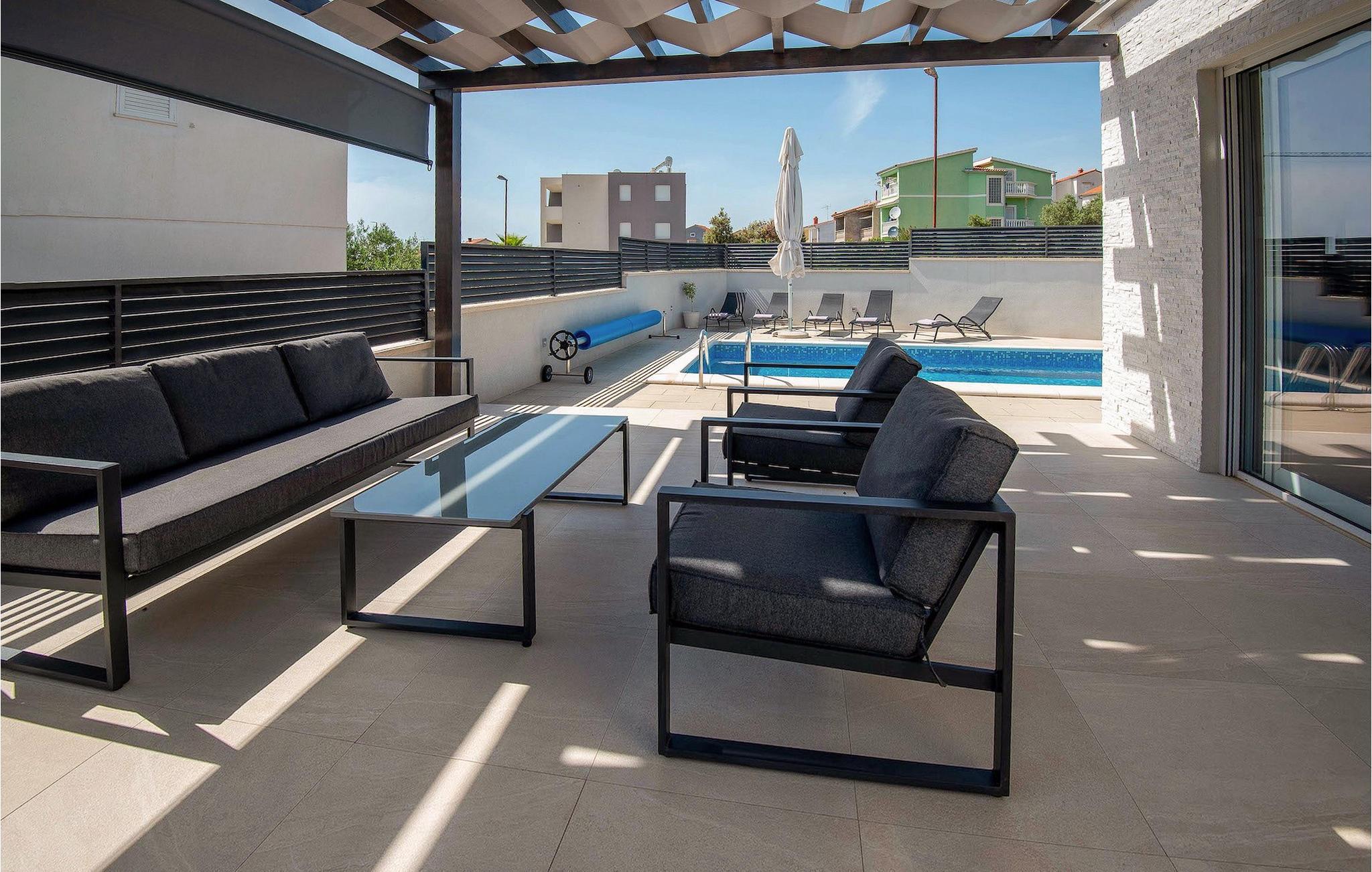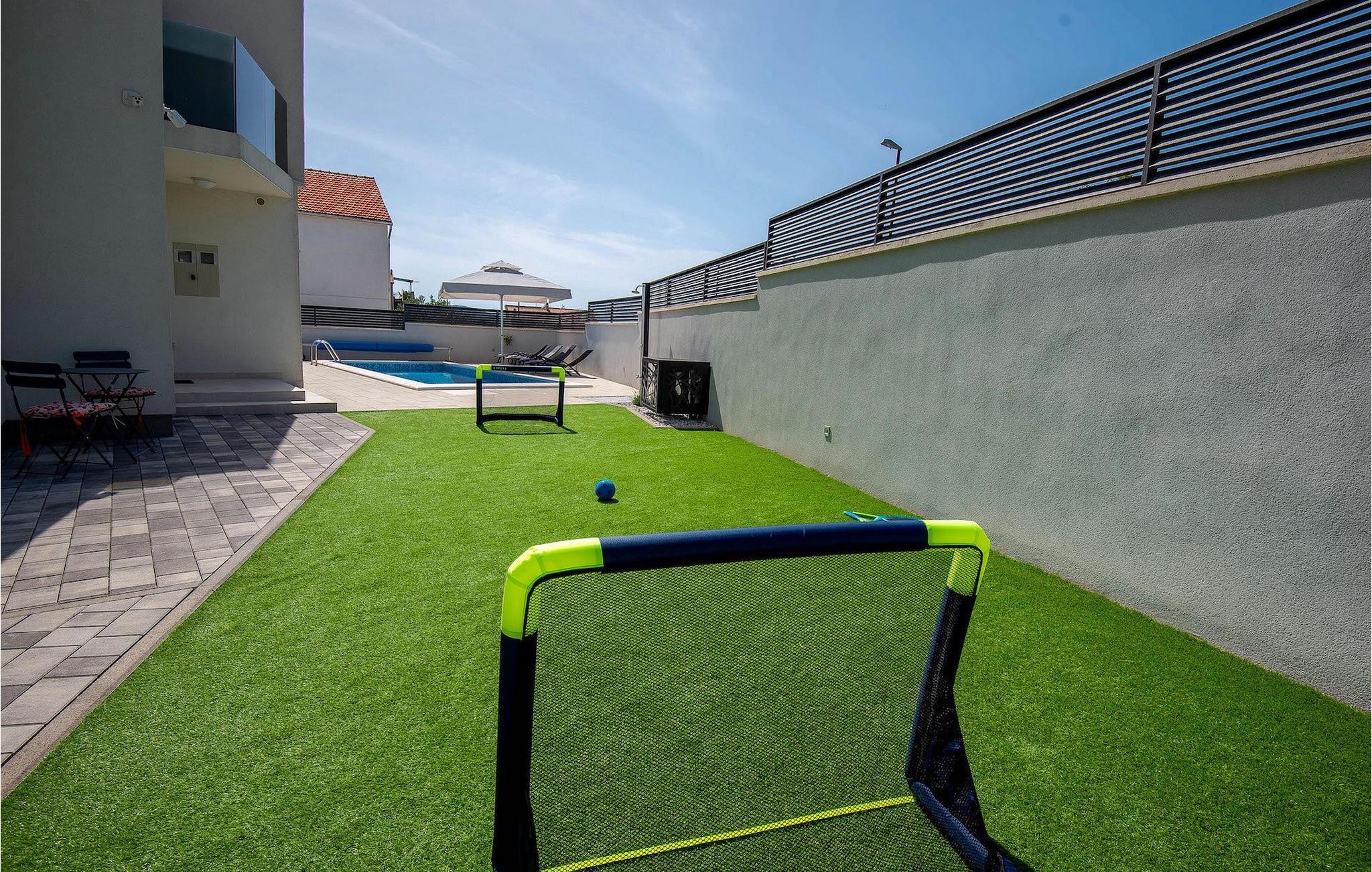 Vom Erdgeschoss aus haben Sie direkten Zugang zum geschlossenen Garten mit privatem Pool, Grill und einem schönen Lounge Bereich. Der private Pool ist ideal geeignet für Erfrischung bei sonnigen Tagen, umgeben von vielen Liegestühlen, zum Entspannen und Sonnen, während Ihre Kinder herumspielen. Neben dem Pool können Sie auch leckere Mahlzeit auf dem Grill zubereiten, und mit Ihren Freunde und der Familie genießen.Brodarica ist eine wahre Ferienoase an der Riviera von Sibenik. Die kleine Stadt hat eine 4 km lange Küste mit Kiesstränden, Läden, Restaurants und Kaffees. Der Strand Brodarica ist ein moderner, eingerichteter Familienstrand mit allen notwendigen Annehmlichkeiten. Unter anderem der Strand bietet einen Beachvolleyball Platz, einen Kinderspielplatz, outdoor Fitnessgeräte, einen Basketball Spielplatz und eine Promenade.