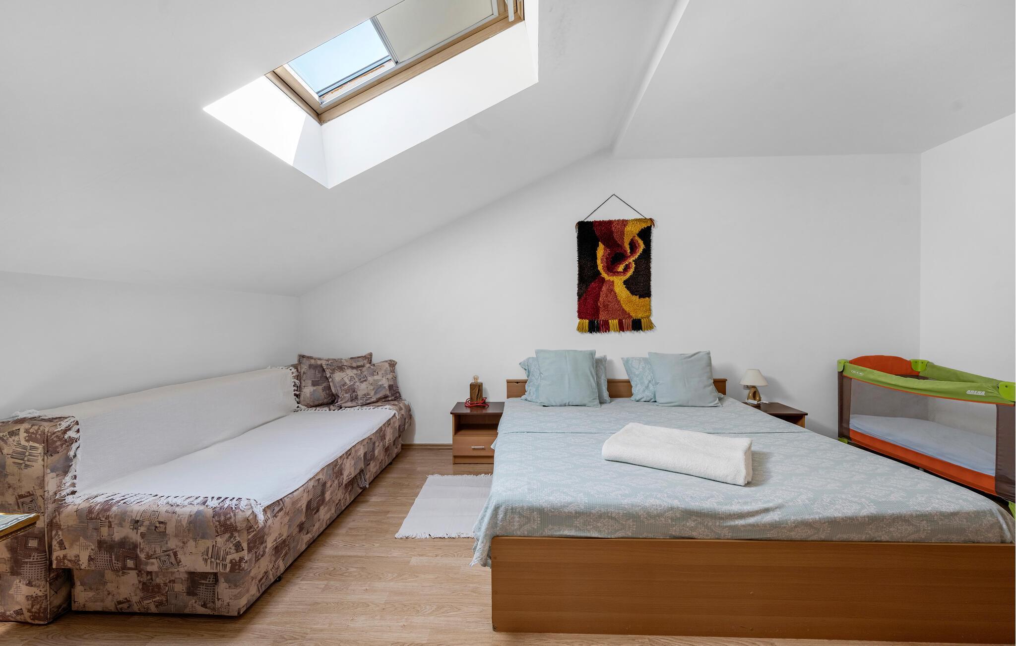 Erfrischen Sie sich nach Belieben im Meer, das Sie mit wenigen Schritten erreichen. Spazieren Sie entlang der ruhigen Uferpromenade von Brodarica und lassen Sie sich von der mediterranen Atmosphäre verzaubern. Entdecken Sie die historische Altstadt von Šibenik, schlendern Sie durch enge Gassen, bewundern Sie die Kathedrale des Heiligen Jakob und genießen Sie einen Kaffee auf einem der malerischen Plätze mit Meerblick.