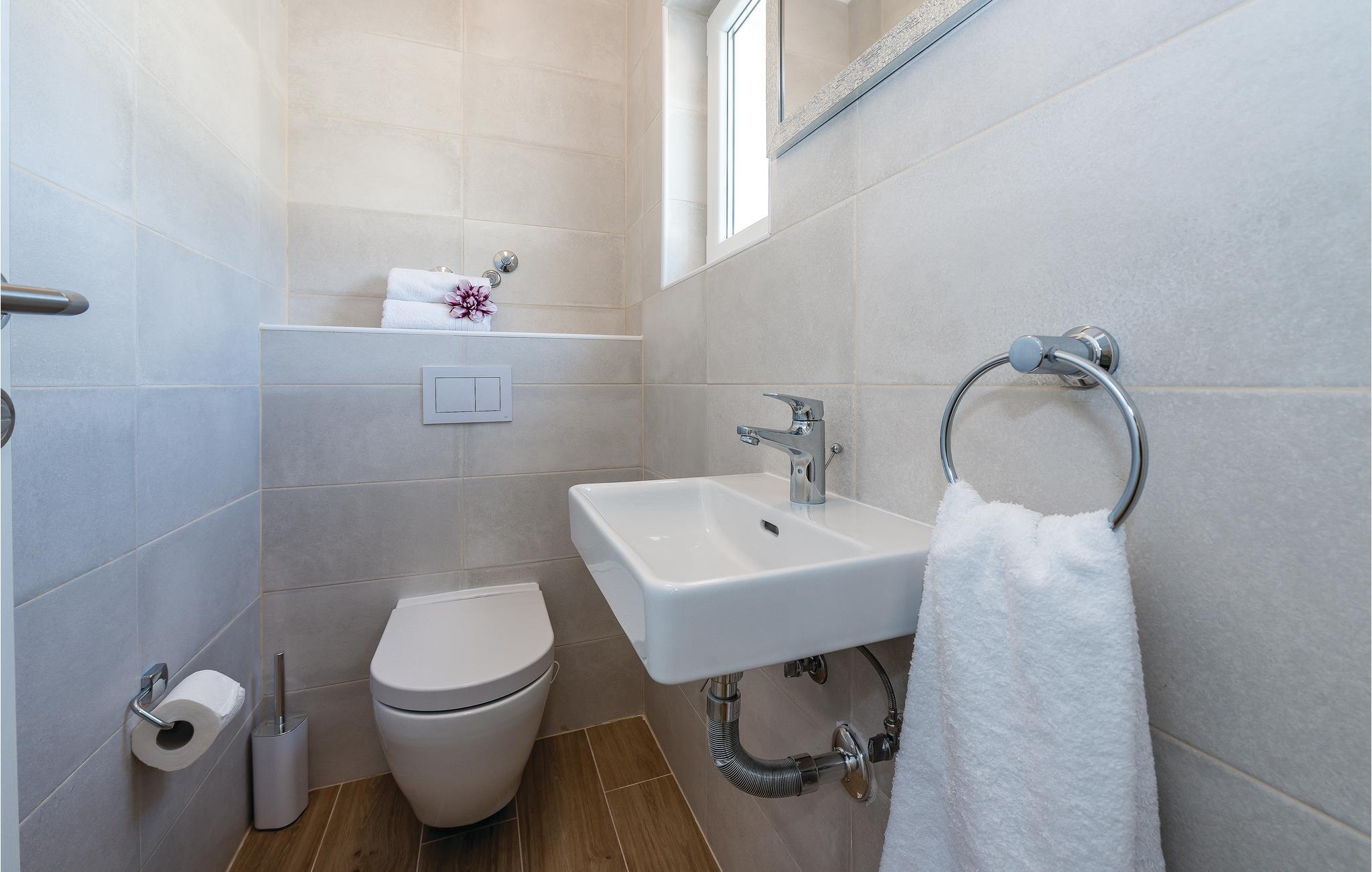 - WC mit warmem und kaltem Wasser, Dusche und Badewanne