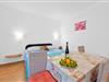 Die ruhige Lage der kleinen Ferienwohnung lädt zum Entspannen ein. Das Apartment ist funktional eingerichtet und kombiniert Wohnen, Kochen, Essen und Schlafen in einem Raum, was für eine heimelige Atmosphäre sorgt. Die gut ausgestattete Küche bietet alle Annehmlichkeiten, um gemeinsam Mahlzeiten zuzubereiten.