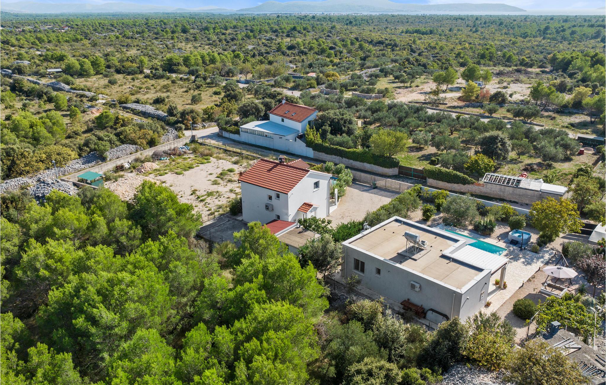 Realisieren Sie Ihren ganz persönlichen Traumurlaub in diesem reizenden Ferienhaus, das sich in einem kleinen Dorf, in der Nähe von Šibenik befindet. Auf dem großen und umzäunten Grundstück sorgen ein Pool, Whirlpool und Kinderspielgeräte für die Erfrischung und Entspannung. Hier wohnen Sie in idyllischer Umgebung, abseits der Hektik der Stadt, mitten in der Natur. Dieses dalmatinische Dorf ist verkehrstechnisch gut angebunden, da Sie in ca. 15 Minuten Autofahrt die historische Stadt Šibenik und den beliebten Touristenort Vodice erreichen. Unvergessliche Strandtage versprechen die Badestrände bei Jadrija und Srima in etwa 3 km Entfernung.