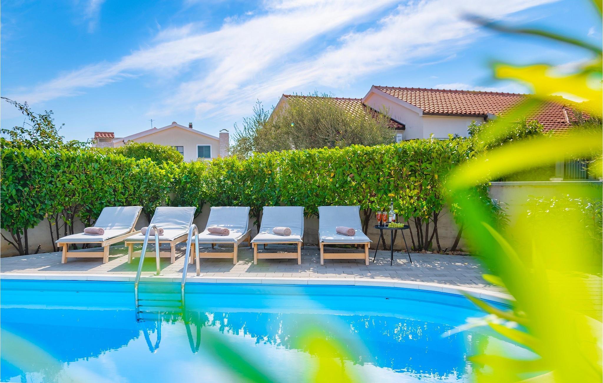 Sehnen Sie sich nach einem traumhaften Urlaub voller Sonne und Vitamin Meer? Dann ist die Villa Jadrija Beach in der Nähe von Sibenik die richtige Wahl für Sie! Wie der Name schon sagt, brauchen Sie ein paar Gehminuten, um zum nächsten Strand zu gelangen. Schnappen Sie sich einfach ein Handtuch und ziehen Sie die Flip Flops an – so einfach ist das!
