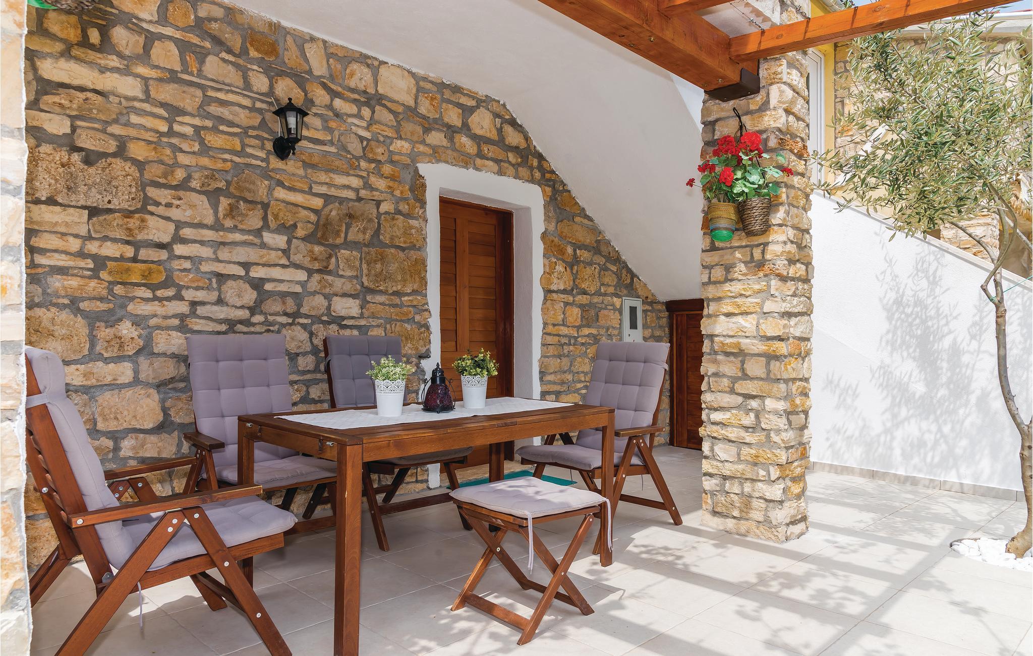 Dieses hübsche Ferienhaus aus Stein liegt umgegeben von Blumen in einem kleinen Dorf unweit vom Nationalpark Krka. Es besteht aus zwei Etagen mit Außentreppen. In dem schönen, eingezäunten Hof mit Sträuchern und Bäumen, liegt ein großer privater Außenpool. Die Lage eignet sich perfekt für einen ruhigen Urlaub. Wenn Sie aber eine lebendigere Szene erleben möchten, ist die Stadt Sibenik nicht weit entfernt. Kultur und Festivals werden dort geboten. Naturliebhaber sollten unbedingt Skradin besuchen (das antike Scardona), ein Städtchen am Eingang vom Nationalpark.