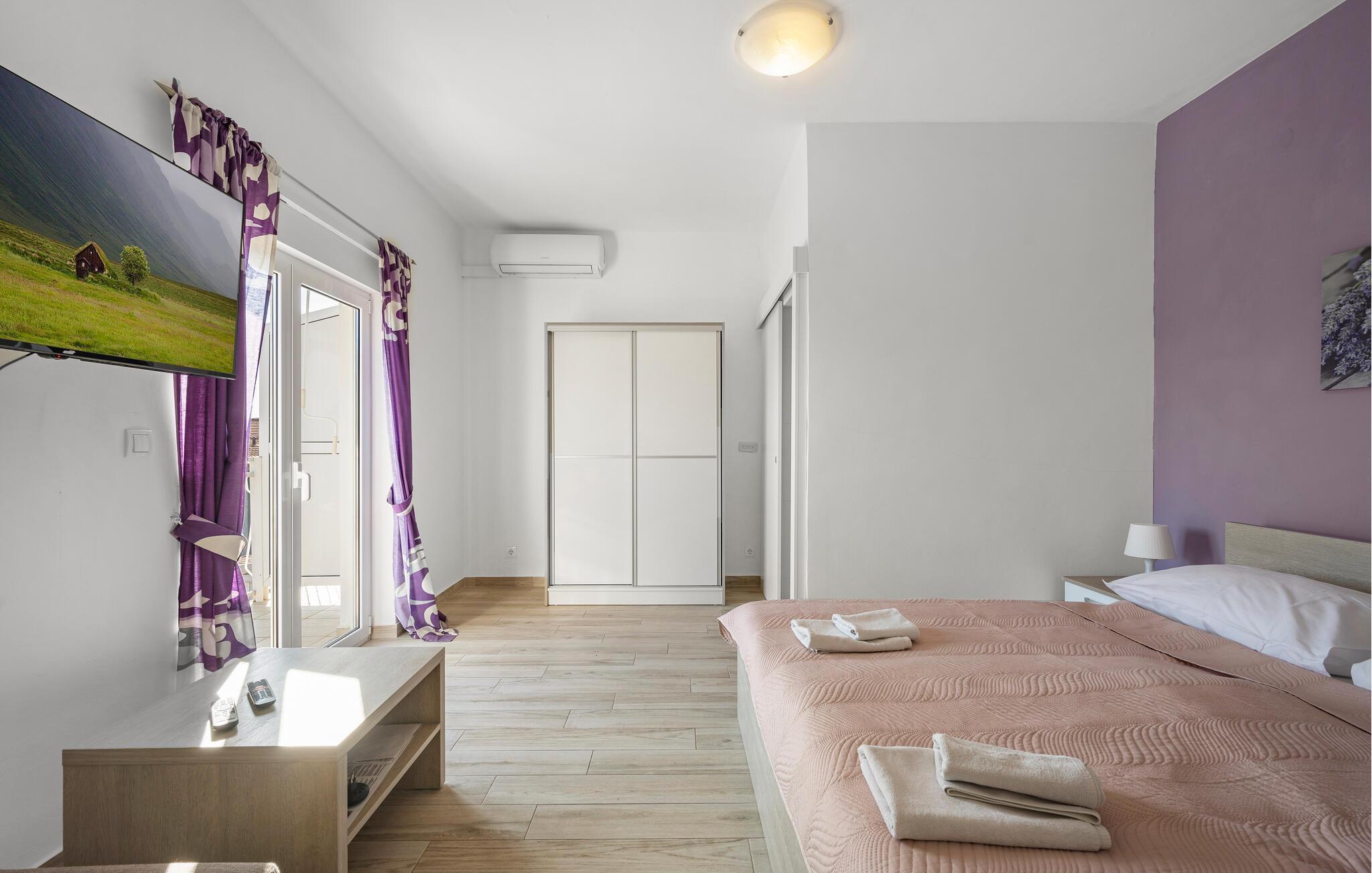 Ihre Ferienwohnung ist ideal für einen Urlaub zu zweit und ein guter Ausgangspunkt für Ausflüge in die Region. Freuen Sie sich auf eine ruhige Lage, moderne Ausstattung und die Nähe zum Strand. Nur wenige Meter trennen Sie vom nächsten Bad im Meer. Die Wohnung bietet Ihnen eine funktionale Küche. Kochen Sie nach Lust und Laune und verpflegen Sie sich im Urlaub selbst. Essen Sie bequem am kleinen Küchentisch oder genießen Sie Ihr Frühstück auf dem Balkon mit Blick auf das Wasser. Umgeben von Olivenbäumen und mediterranen Pflanzen, finden Sie hier Ruhe und Privatsphäre. Auch der gepflasterte Hofbereich ist gepflegt und großzügig gestaltet.