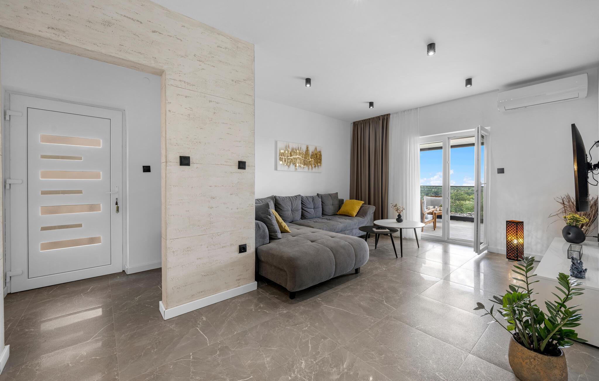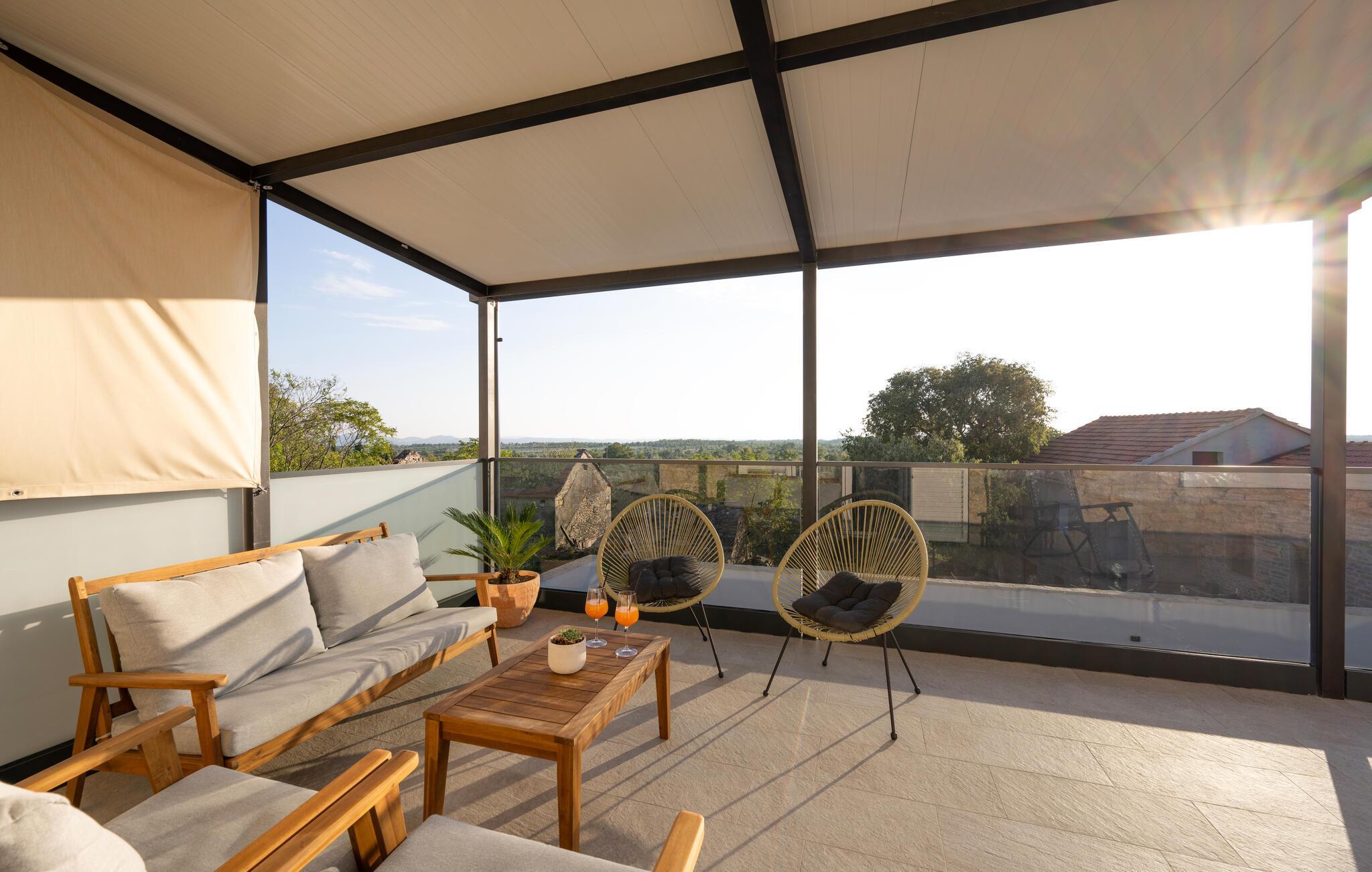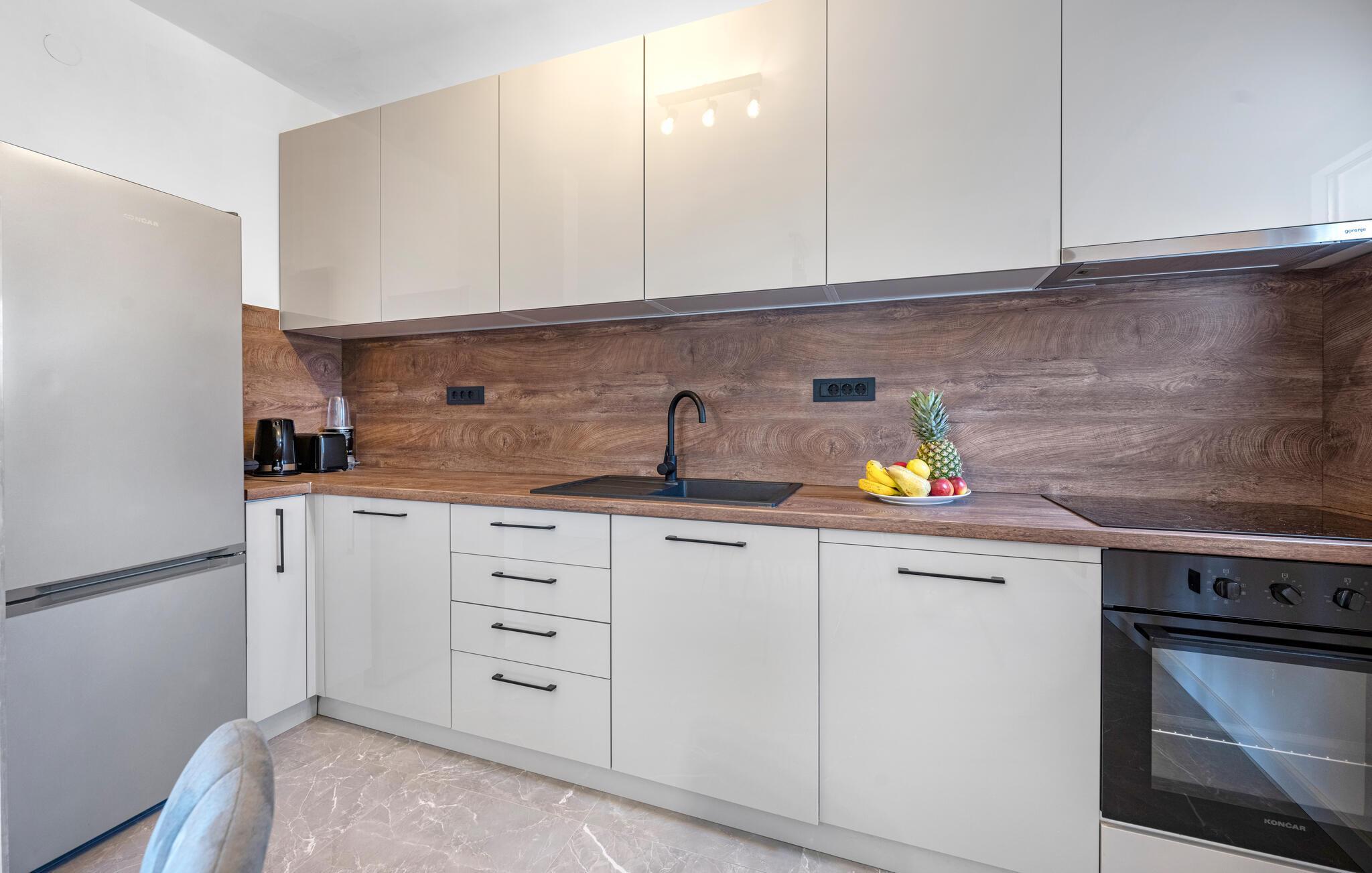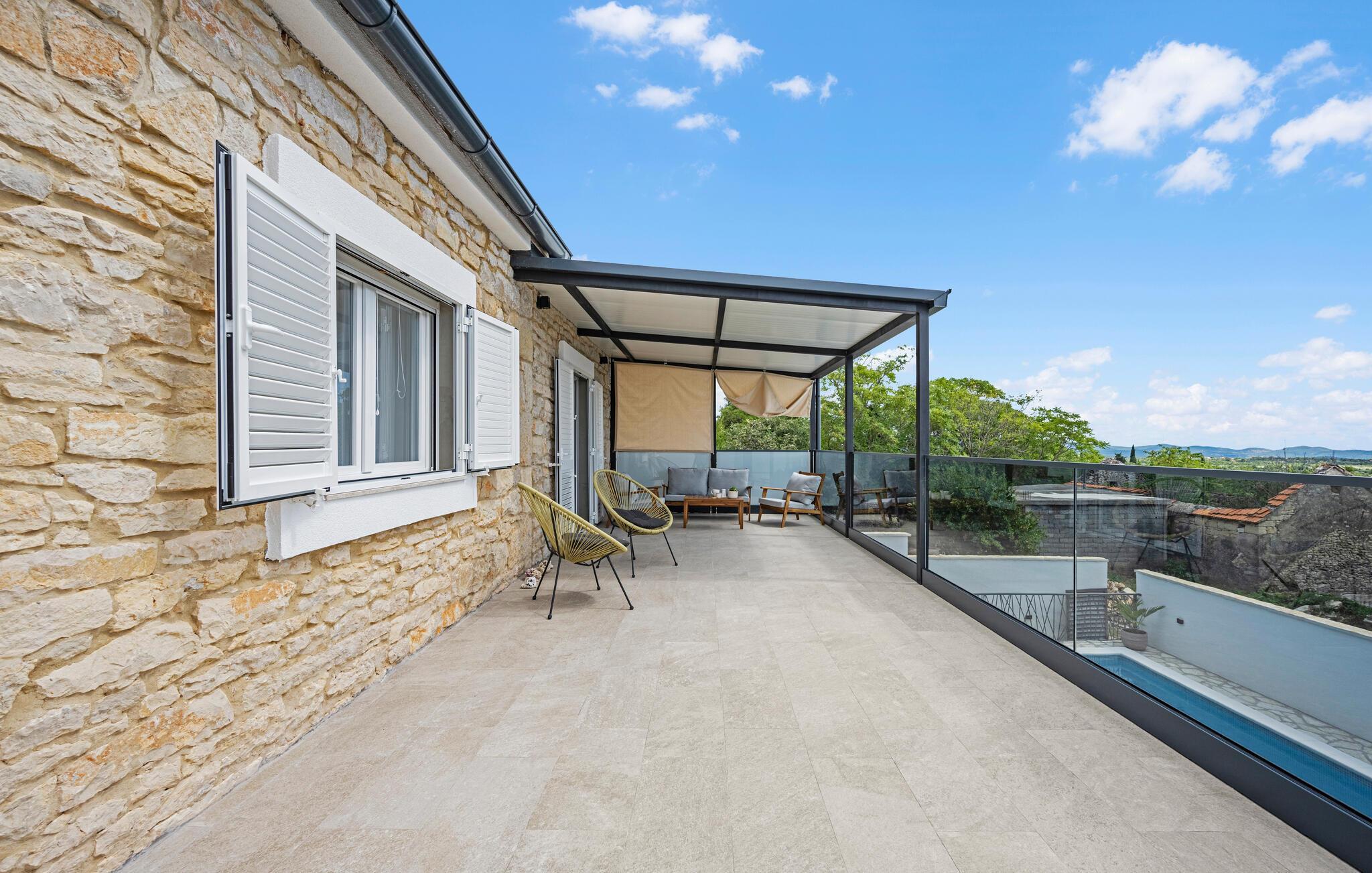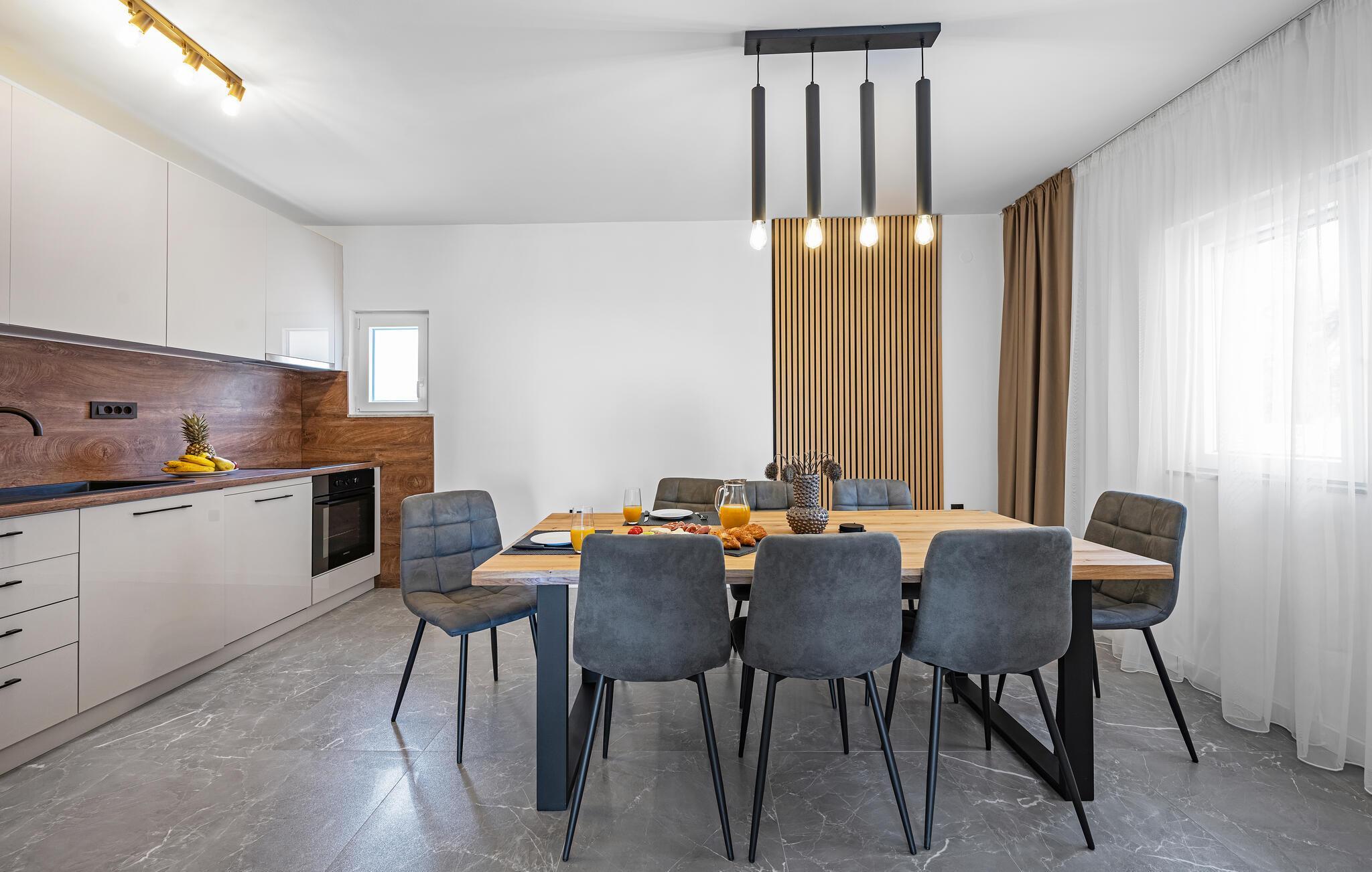 Genießen Sie einen erholsamen Urlaub in Ihrem modernen Ferienhaus in Plastovo, einem charmanten Dorf unweit des Nationalparks Krka. Dieses elegante Haus bietet Ihnen einen Hauch von Luxus. Entspannen Sie auf der großen Terrasse, die mit einem großzügigen Pool und bequemen Sonnenliegen ausgestattet ist. Beginnen Sie Ihren Tag mit einem erfrischenden Sprung ins kühle Nass und genießen Sie die friedliche Umgebung. Der stilvolle Innenbereich des Hauses lädt zum Verweilen ein. Machen Sie es sich auf dem gemütlichen Sofa im Wohnzimmer bequem und genießen Sie die moderne Einrichtung. In der gut ausgestatteten Küche können Sie Ihre Lieblingsgerichte zubereiten und diese am Esstisch mit der Familie oder Freunden genießen.