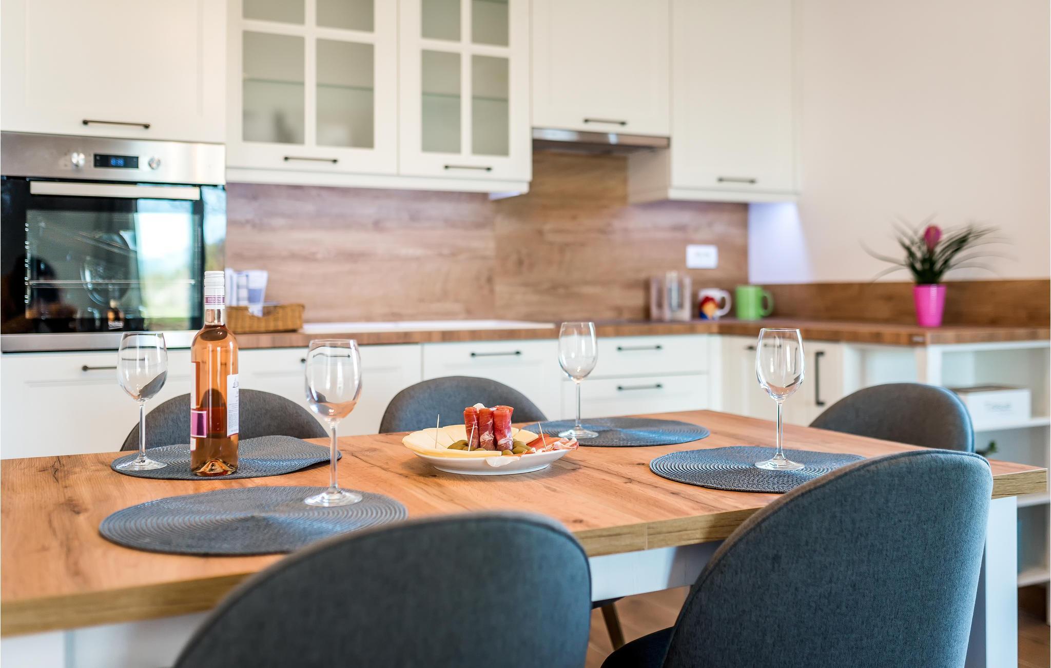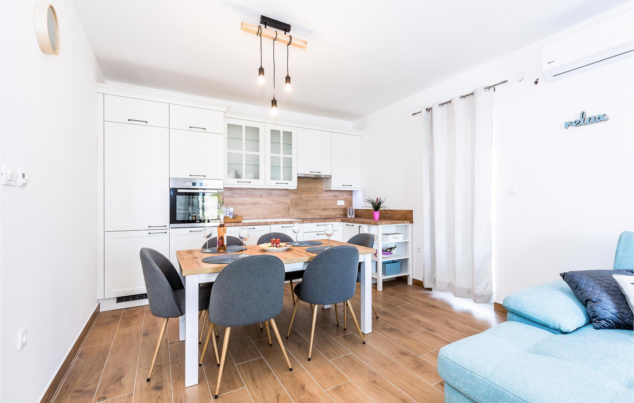 Das Erdgeschosshaus mit harmonischer Wohnküche, 2 Schlafzimmern und 2 Badezimmern bietet eine angenehme Wohlfühlatmosphäre. Aktivurlaubern und Naturliebhabern empfehlen wir einen Spaziergang durch die umliegenden Orte bis zum Nationalpark Krka, den archäologischen Stätten sowie dem zweitältesten Wasserwerk namens Jaruga. Die Küstenstädte Skradin und Šibenik sind ebenfalls einen Besuch wert.