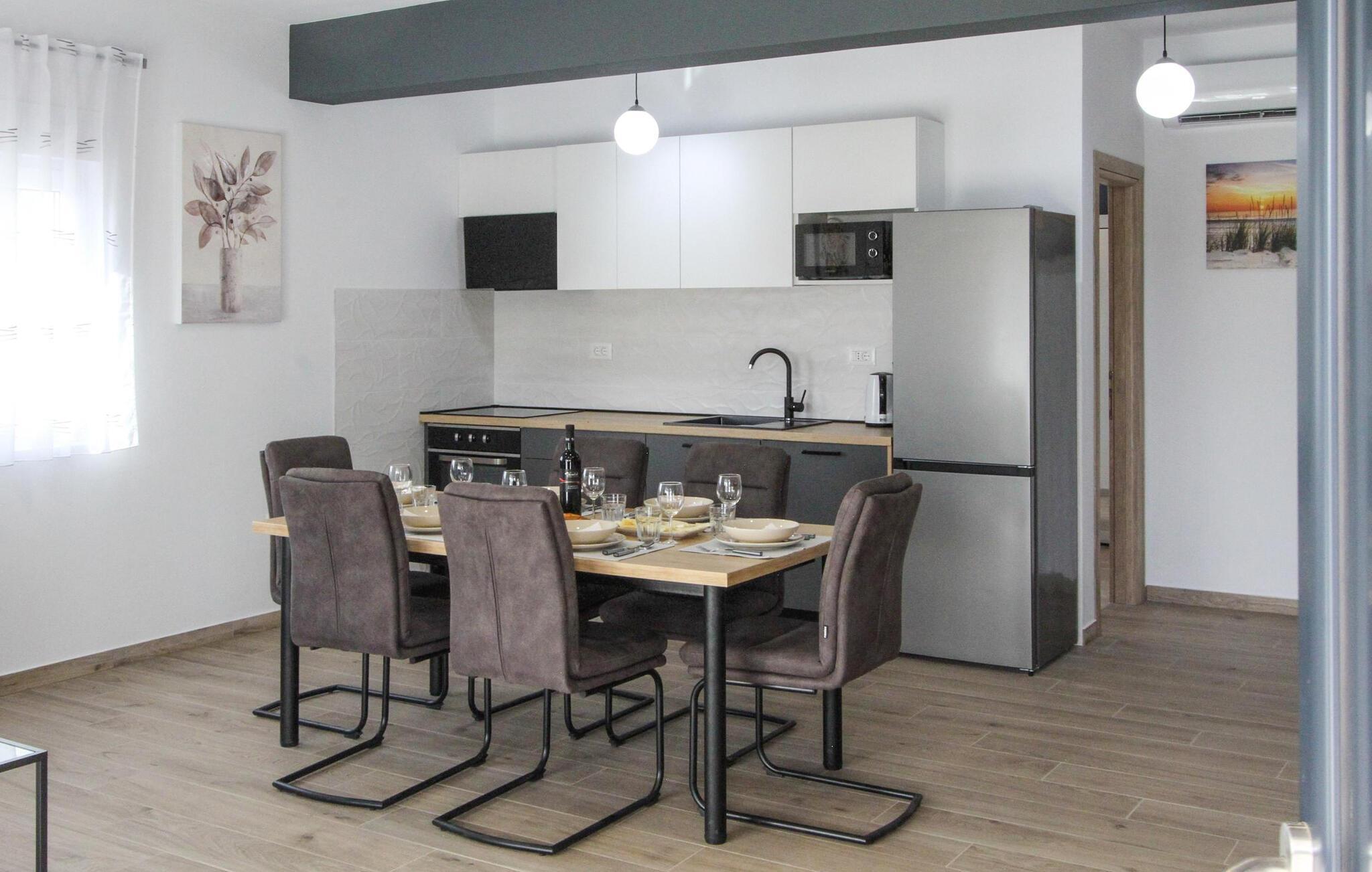 Der moderne und geräumige Innenraum mit eleganten Linien und traditionellem Charme ist die ideale Wahl für Familien oder Gruppen von Freunden. Sanfte Farben sowie der Zusatz von Holz verstärken die entspannte Atmosphäre und heißen Sie willkommen. Das luftige Wohnzimmer, das mit der eleganten Küche verbunden ist, bietet eine angenehme Umgebung für Unterhaltung und geselliges Beisammensein.