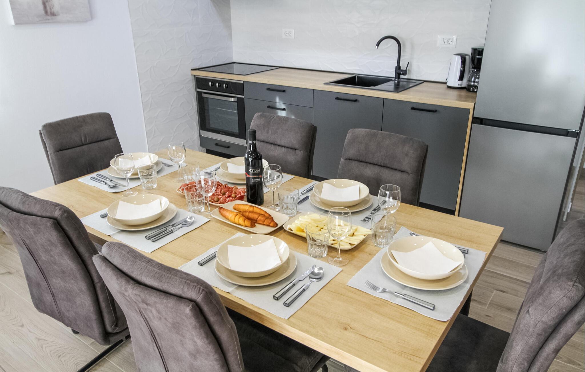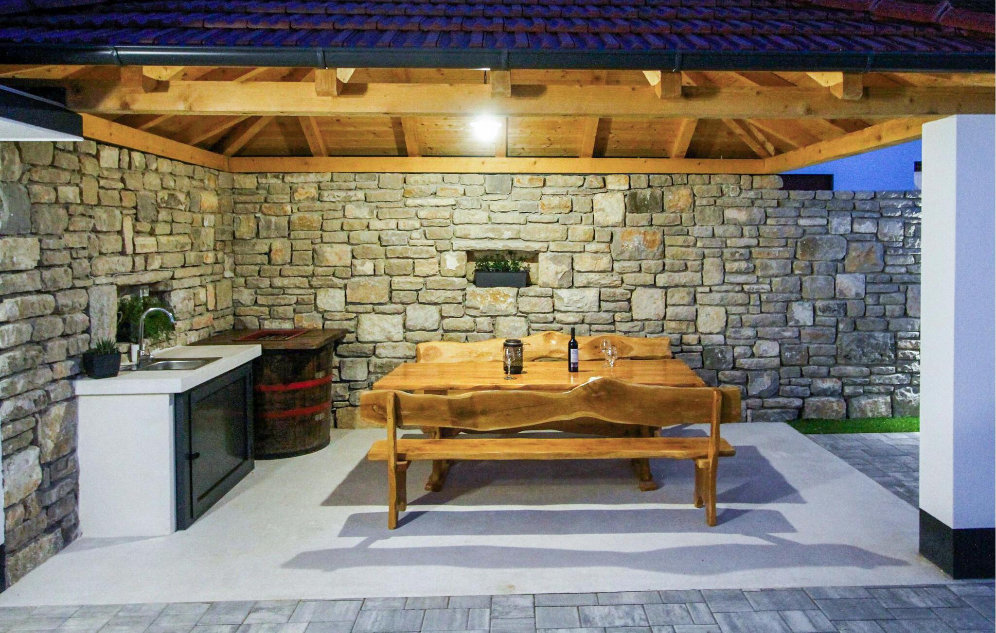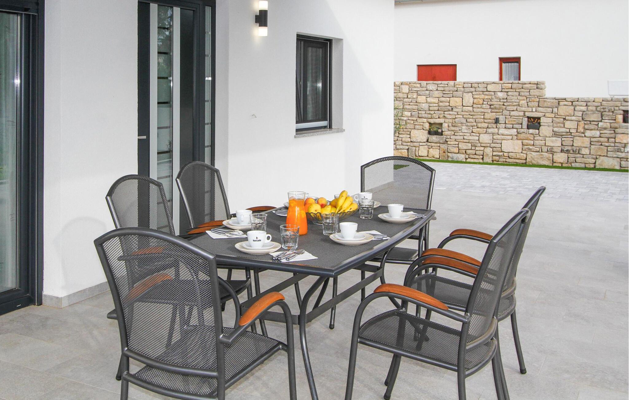 Neben der Villa gibt es einen separaten Bereich mit Grill sowie eine überdachte Terrasse mit Sitzecke. Genießen Sie kulinarische Fähigkeiten und reichhaltige Gerichte und kosten Sie den Charme des sommerlichen mediterranen Alltags.