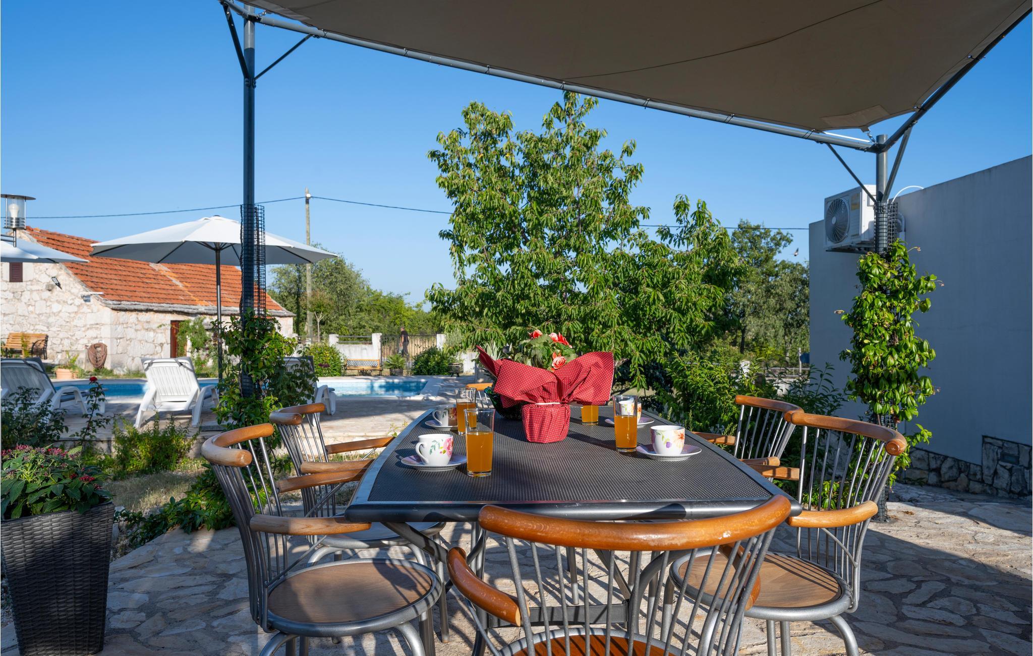 Dieses reizende Ferienhaus mit Pool befindet sich im kleinen Dorf Vinovo Donje und ist ideal geeignet für einen Urlaub in natürlicher Umgebung. Entspannung weit weg vom Trubel der Stadt ist hier möglich. Auf dem schönen Naturgrundstück gibt es einen Außenpool, der für die richtige Erfrischung an heißen Sommertagen sorgt. Das Schlafzimmer Nr. 3 befindet sich im separaten, kleinen Gebäude neben dem Haupthaus. Empfehlenswert ist ein Besuch der Nationalparks Krka und Kornati sowie der historischen Städte Šibenik, Trogir und Split.