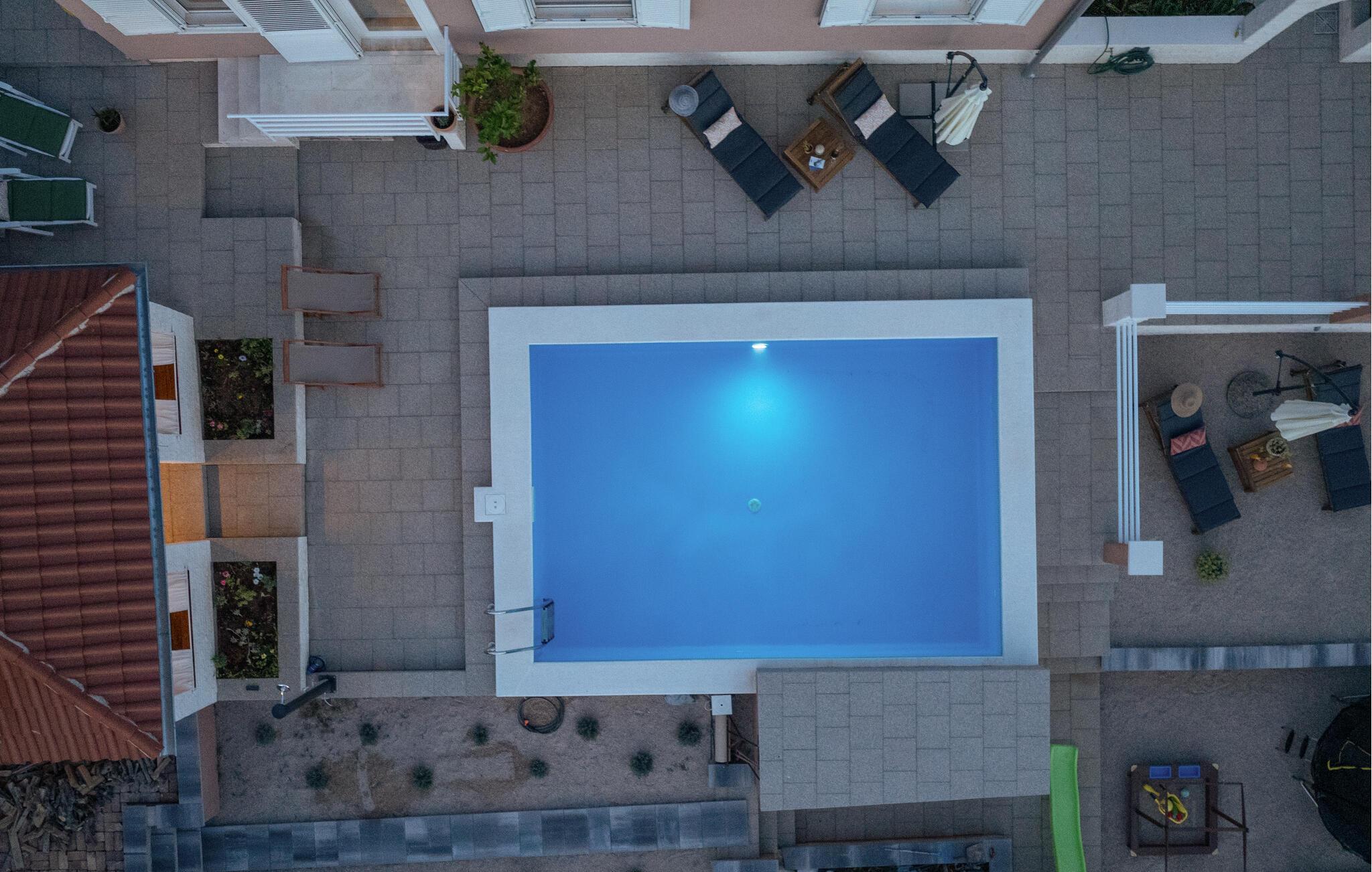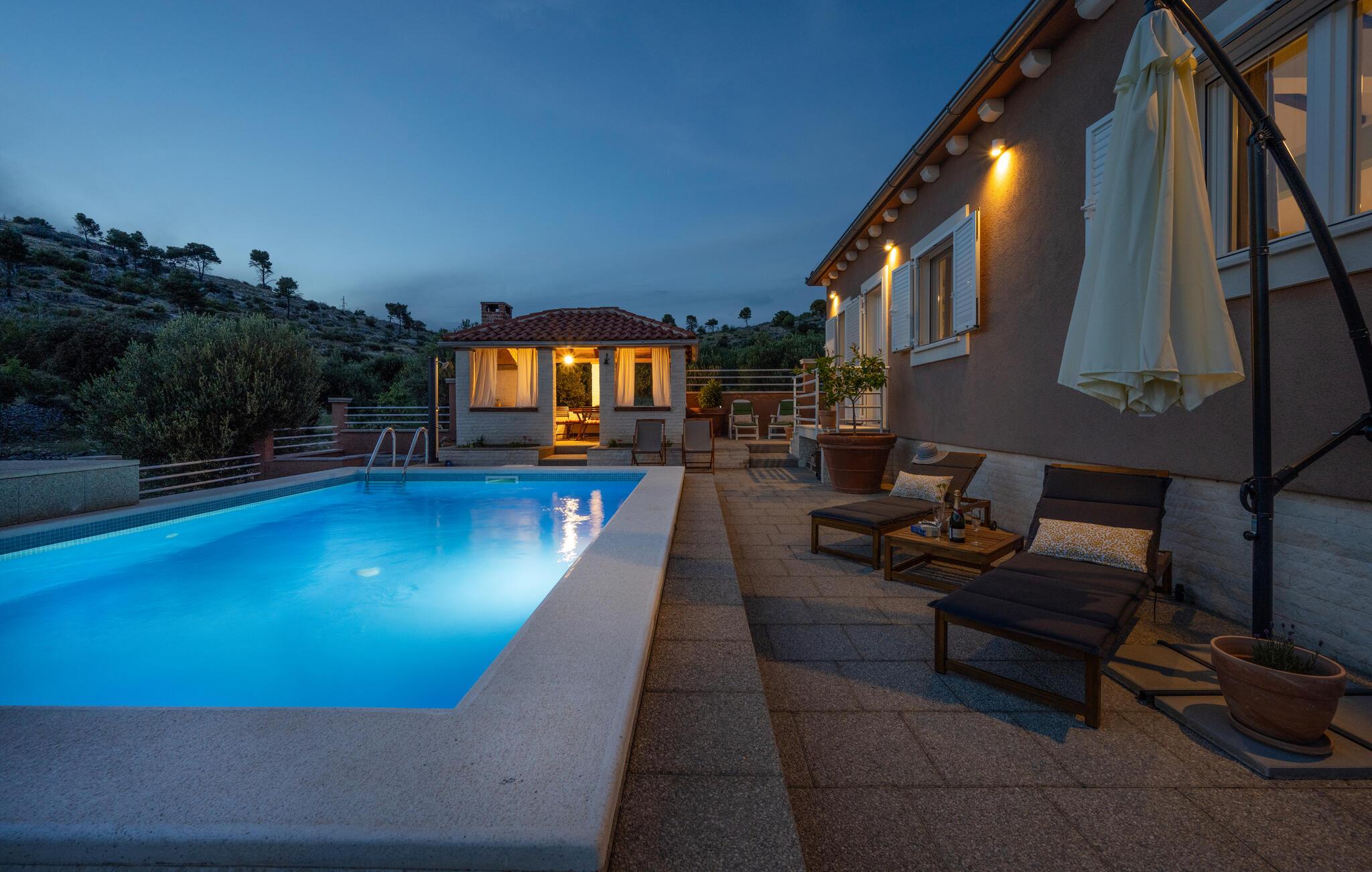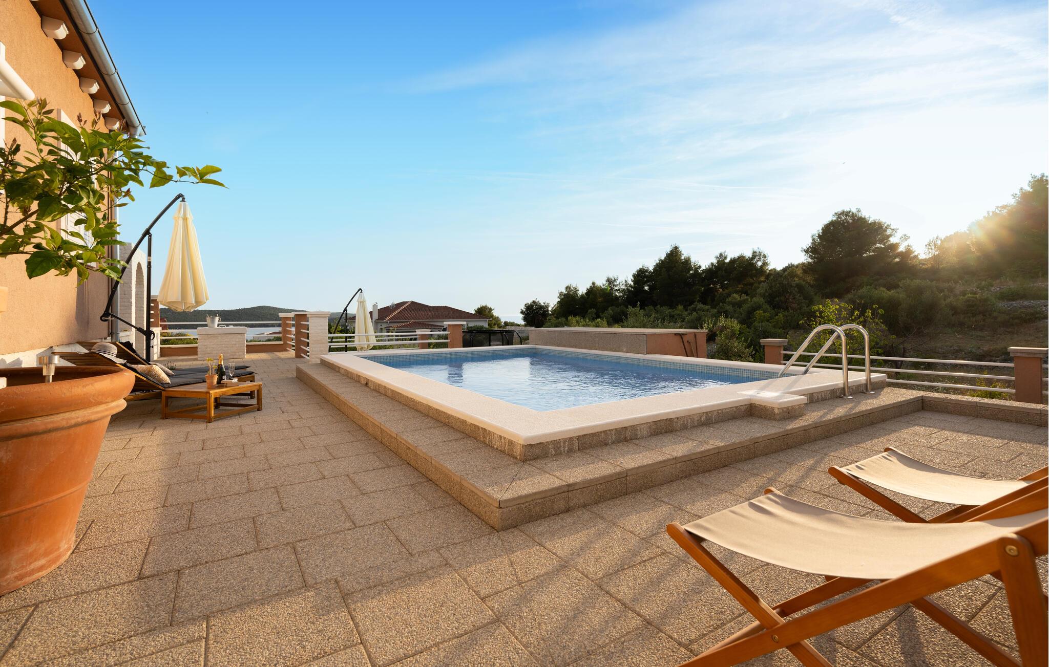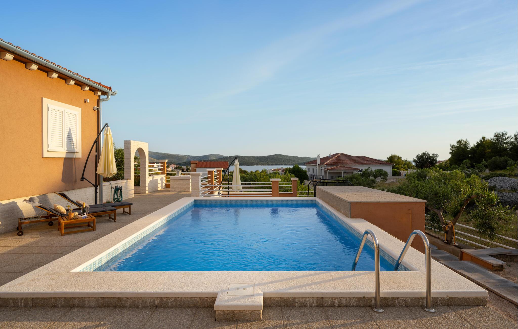 Großes und familienfreundliches Ferienhaus mit Pool und großartiger Panoramaaussicht auf das Meer.