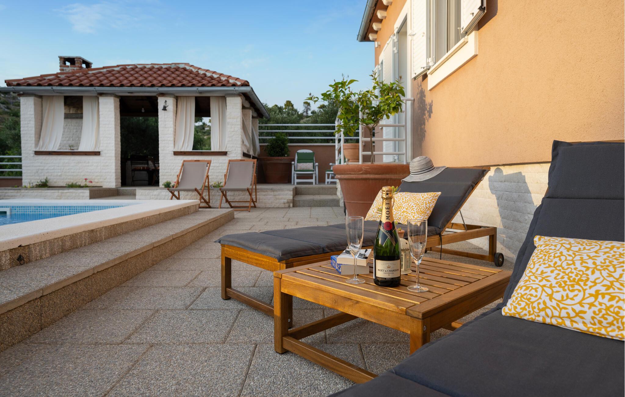 An der Küste wartet der Sandstrand von Zaboric, der nur wenige Minuten entfernt ist, oder die beeindruckende mittelalterliche Mauer von Ostrica. Die Küstenorte in der Umgebung sind allemal einen Besuch wert, und locken allesamt mit Cafés und Restaurants mit Meerblick, einer einladenden, lebensfrohen Atmosphäre und schönen Badegelegenheiten. Wenn Ihnen der Sinn eher nach einer einsamen Bergwelt steht, ist auch dafür gesorgt. Fahren Sie ins Inland, kommen Sie direkt in die Höhen Kroatiens. Auch der Nationalpark Krka mit seinen weithin bekannten traumhaften Wasserfällen ist ganz in der Nähe.