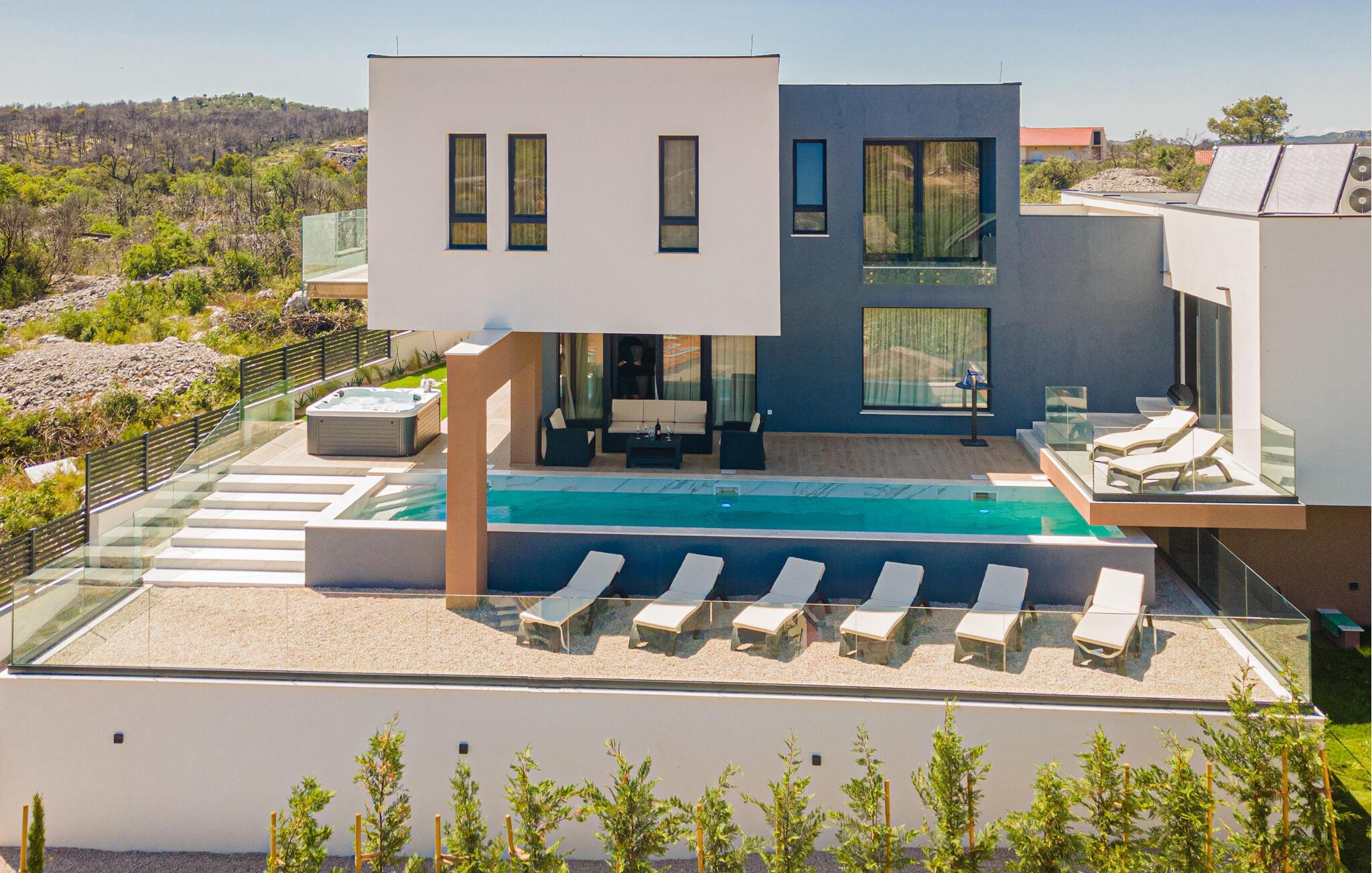 Erleben Sie einen luxuriösen Ferienhausurlaub in Zaton, wo moderne Eleganz auf pure Entspannung trifft. Diese exklusive Villa bietet alles, was Sie für einen unvergesslichen Aufenthalt benötigen. Der großzügige Außenbereich mit privatem Pool und Sonnenliegen lädt zum Entspannen ein. Beginnen Sie Ihren Tag mit einem erfrischenden Bad im Pool und entspannen Sie sich im Whirlpool, während Sie die herrliche Aussicht auf die umliegende Landschaft genießen.