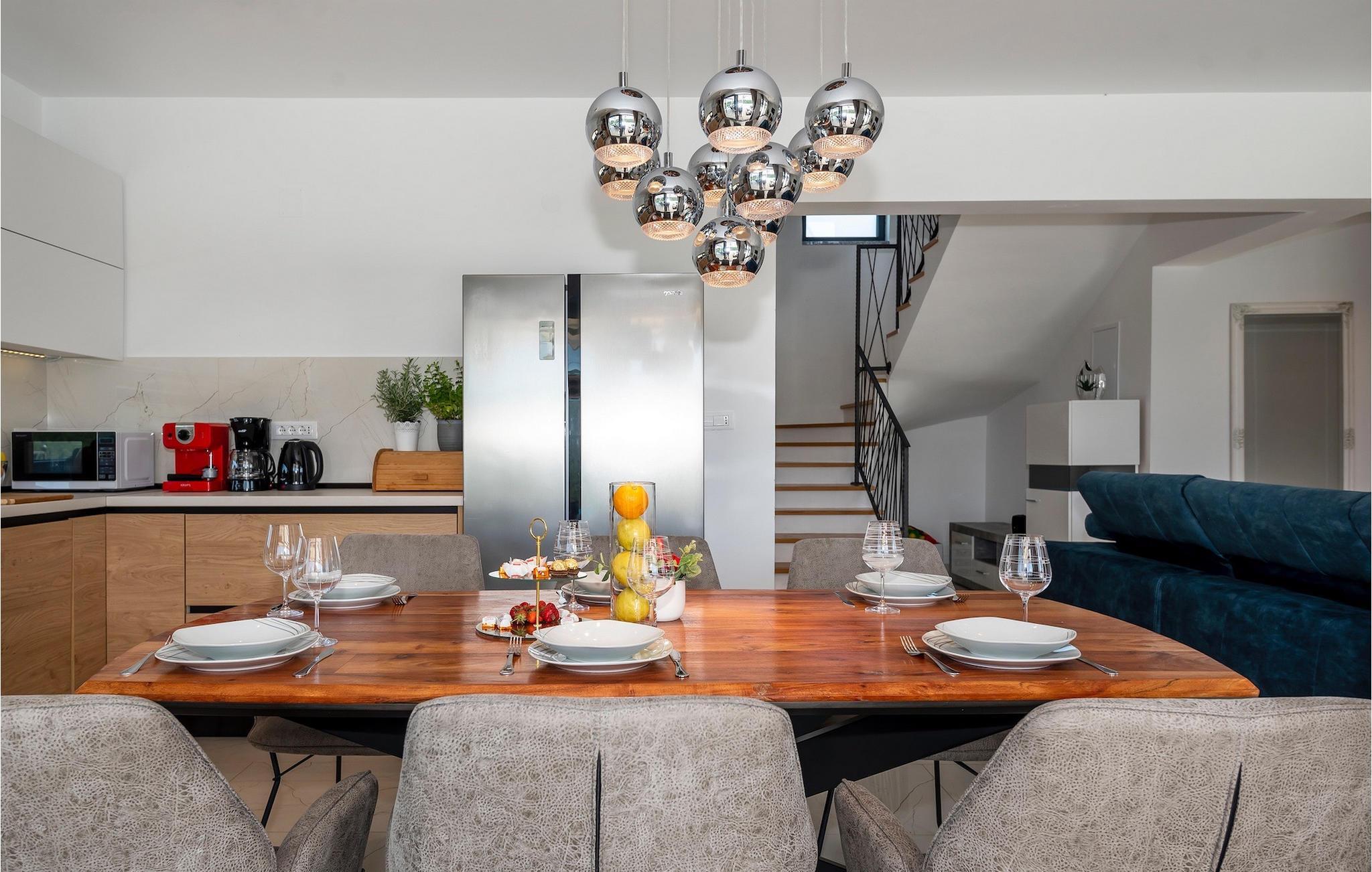 Im Innenbereich der Villa finden Sie ein modern eingerichtetes Interieur. Im Erdgeschoss der Villa finden Sie ein geräumiges Wohnzimmer, ein Esszimmer und eine schön eingerichtete voll ausgestattete Küche mit Blick auf den Pool und die Terrasse. Auf der gleichen Etage befinden sich ein schönes Schlafzimmer und ein elegant gestaltetes Badezimmer. Im ersten Stock befinden sich drei weitere schöne Schlafzimmer, ein Badezimmer und eine Terrasse mit herrlichem Blick auf die Umgebung.
