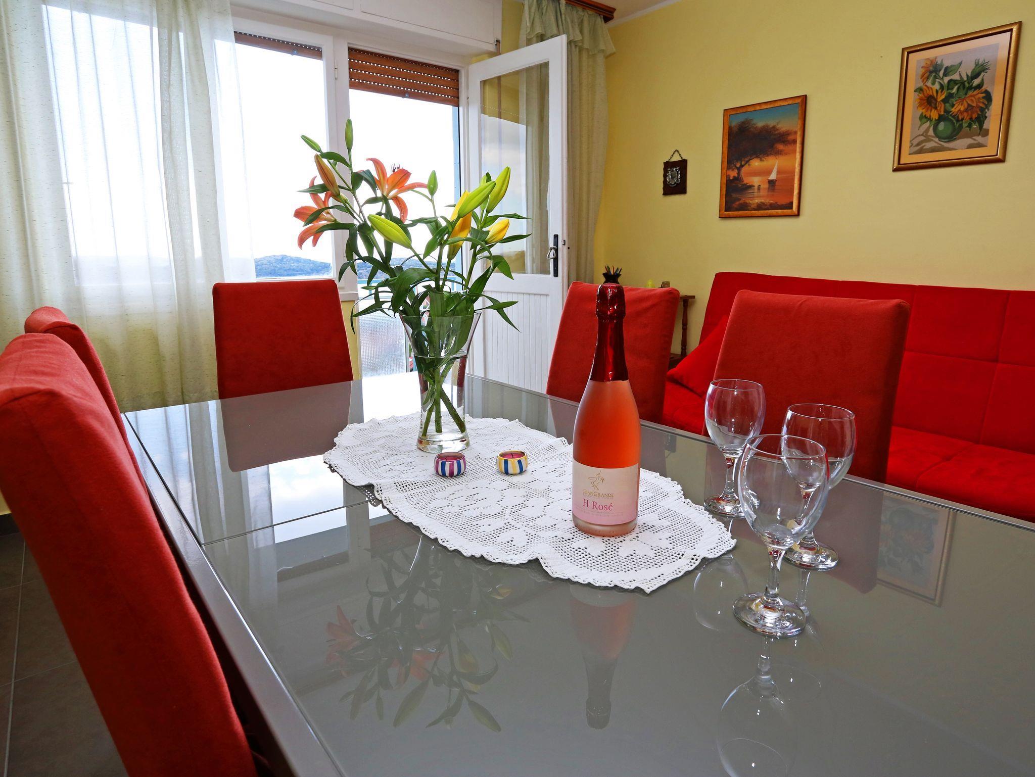 Ferienwohnung bietet Platz für 6 Gäste. Die Betten sind in Schlafzimmern, die es 3 gibt, innerhalb einer Gesamtfläche von 100m2, angeordnet. Die Gäste haben eine eigene Terrasse zur Verfügung, auf der sie in warmen Sommernächten genießen können. Das Apartment bietet Meerblick. Es ist erlaubt, Speisen auf dem Gemeinschafts-Grill vorzubereiten. Durch die Terrasse der gebuchten Unterkunftseinheit gehen auch andere Gäste oder Vermieter. IM PREIS INBEGRIFFEN: Kurtaxe, Endreinigung, Klimatisierung, Internet, Kinderbett, Bügeleisen, Bügelbrett, Föhn, tragbarer Grill. VERBINDLICHE ZUSÄTZLICHE KOSTEN: Aufzahlung für Kurzaufenthalte (prozentualer Zuschlag pro Nächtigungsanzahl: 30% - 1, 20% - 2, 10% - 3). UNVERBINDLICHE ZUSÄTZLICHE KOSTEN: Garage (10,00 € pro Nacht). Die Verfügbarkeit zusätzlicher Dienstleistungen in Ihrem reservierten Termin und die Preise derselben (falls nicht aufgeführt) müssen im Voraus überprüft werden. Zusätzliche Dienstleistungen die in der Zahlungsaufforderung nicht aufgeführt sind werden direkt beim Vermieter bezahlt, angenommen der Gast nutzt auch diese. Ermäßigung auf den Grundpreis: Gratistag 14=13 (bei einem Aufenthalt von 14 Tagen oder mehr erhalten Sie einen Gratistag für den Aufenthalt bis 31.12.26).