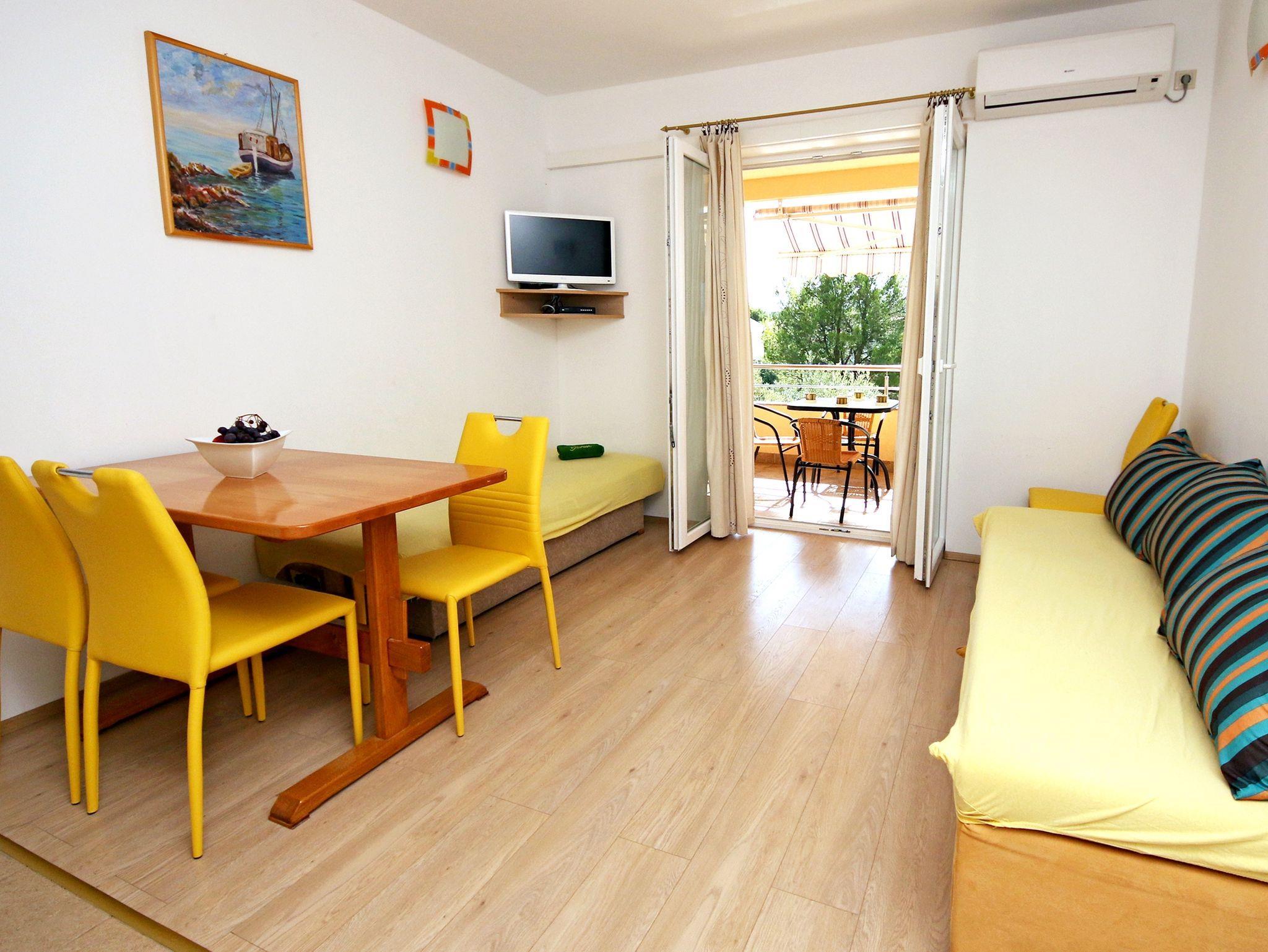 Ferienwohnung bietet Platz für 4 Gäste. Die Betten sind in Schlafzimmern, die es 1 gibt, und in Esszimmer, innerhalb einer Gesamtfläche von 30m2, angeordnet. Die Gäste haben eine eigene Terrasse zur Verfügung, auf der sie in warmen Sommernächten genießen können. Es ist erlaubt, Speisen auf dem Gemeinschafts-Grill vorzubereiten. IM PREIS INBEGRIFFEN: Kurtaxe, Endreinigung, Klimatisierung, Parkplatz, Internet, Wäschewaschen, Kinderbett, Bügeleisen, Bügelbrett, Föhn. VERBINDLICHE ZUSÄTZLICHE KOSTEN: Aufzahlung für Kurzaufenthalte (prozentualer Zuschlag pro Nächtigungsanzahl: 30% - 1, 20% - 2, 10% - 3). UNVERBINDLICHE ZUSÄTZLICHE KOSTEN: Bootsanlegeplatz (10,00 € pro Nacht). Die Verfügbarkeit zusätzlicher Dienstleistungen in Ihrem reservierten Termin und die Preise derselben (falls nicht aufgeführt) müssen im Voraus überprüft werden. Zusätzliche Dienstleistungen die in der Zahlungsaufforderung nicht aufgeführt sind werden direkt beim Vermieter bezahlt, angenommen der Gast nutzt auch diese. Ermäßigung auf den Grundpreis: Gratistag 14=13 (bei einem Aufenthalt von 14 Tagen oder mehr erhalten Sie einen Gratistag für den Aufenthalt bis 31.12.26).