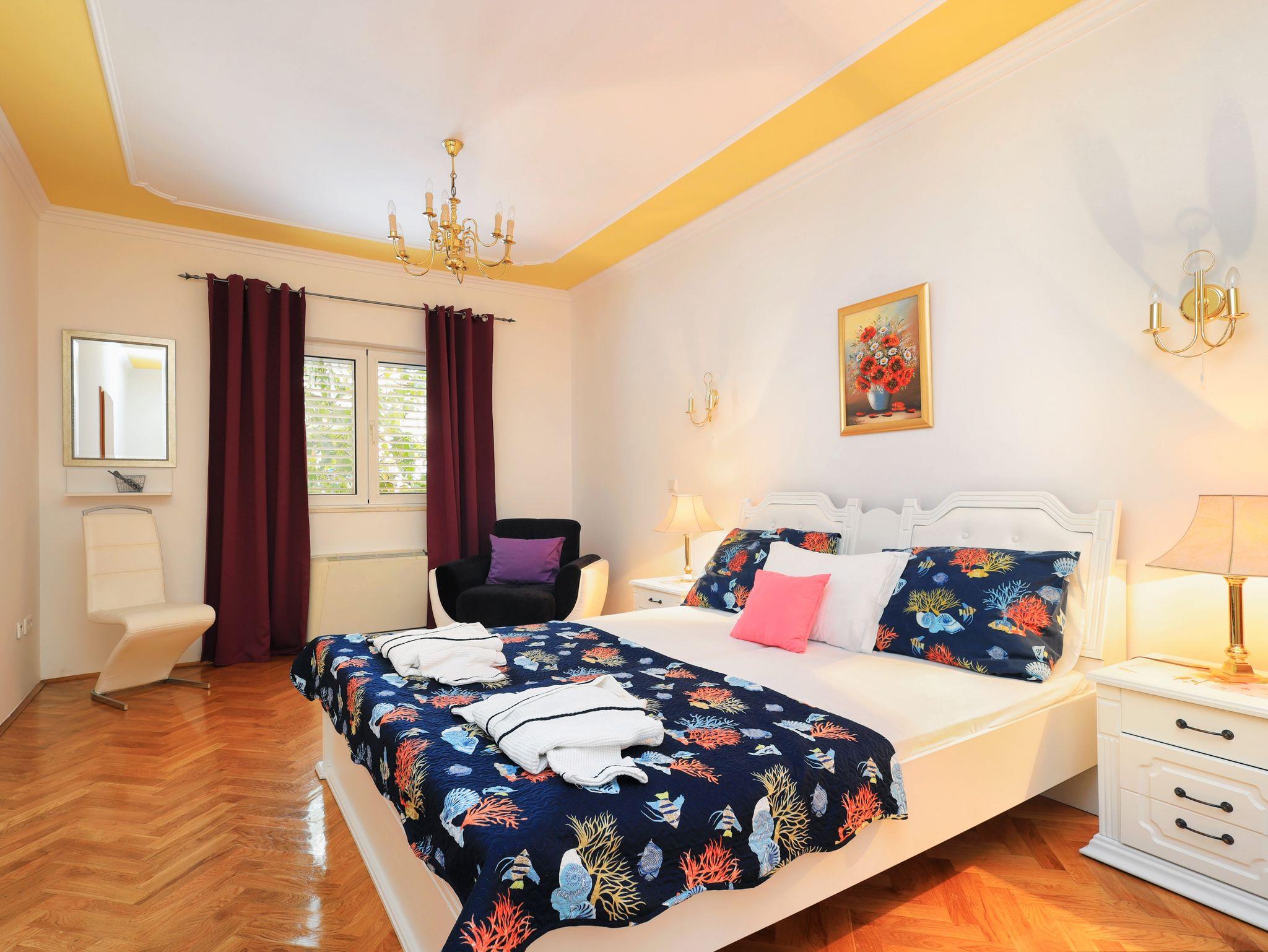 Ferienwohnung bietet Platz für 4 Gäste. Die Betten sind in Schlafzimmern, die es 2 gibt, innerhalb einer Gesamtfläche von 85m2, angeordnet. Die Gäste haben eine eigene Terrasse zur Verfügung, auf der sie in warmen Sommernächten genießen können. Das Apartment bietet Meerblick. Es ist erlaubt, Speisen auf dem Gemeinschafts-Grill vorzubereiten. IM PREIS INBEGRIFFEN: Kurtaxe, Endreinigung, Klimatisierung, Parkplatz, Internet, Bootsanlegeplatz, Bügeleisen, Bügelbrett. VERBINDLICHE ZUSÄTZLICHE KOSTEN: Aufzahlung für Kurzaufenthalte (prozentualer Zuschlag pro Nächtigungsanzahl: 30% - 1, 20% - 2, 10% - 3). UNVERBINDLICHE ZUSÄTZLICHE KOSTEN: Wäschewaschen (12,00 € Waschen), Zusatzbett (40,00 € pro Nacht). Die Verfügbarkeit zusätzlicher Dienstleistungen in Ihrem reservierten Termin und die Preise derselben (falls nicht aufgeführt) müssen im Voraus überprüft werden. Zusätzliche Dienstleistungen die in der Zahlungsaufforderung nicht aufgeführt sind werden direkt beim Vermieter bezahlt, angenommen der Gast nutzt auch diese.