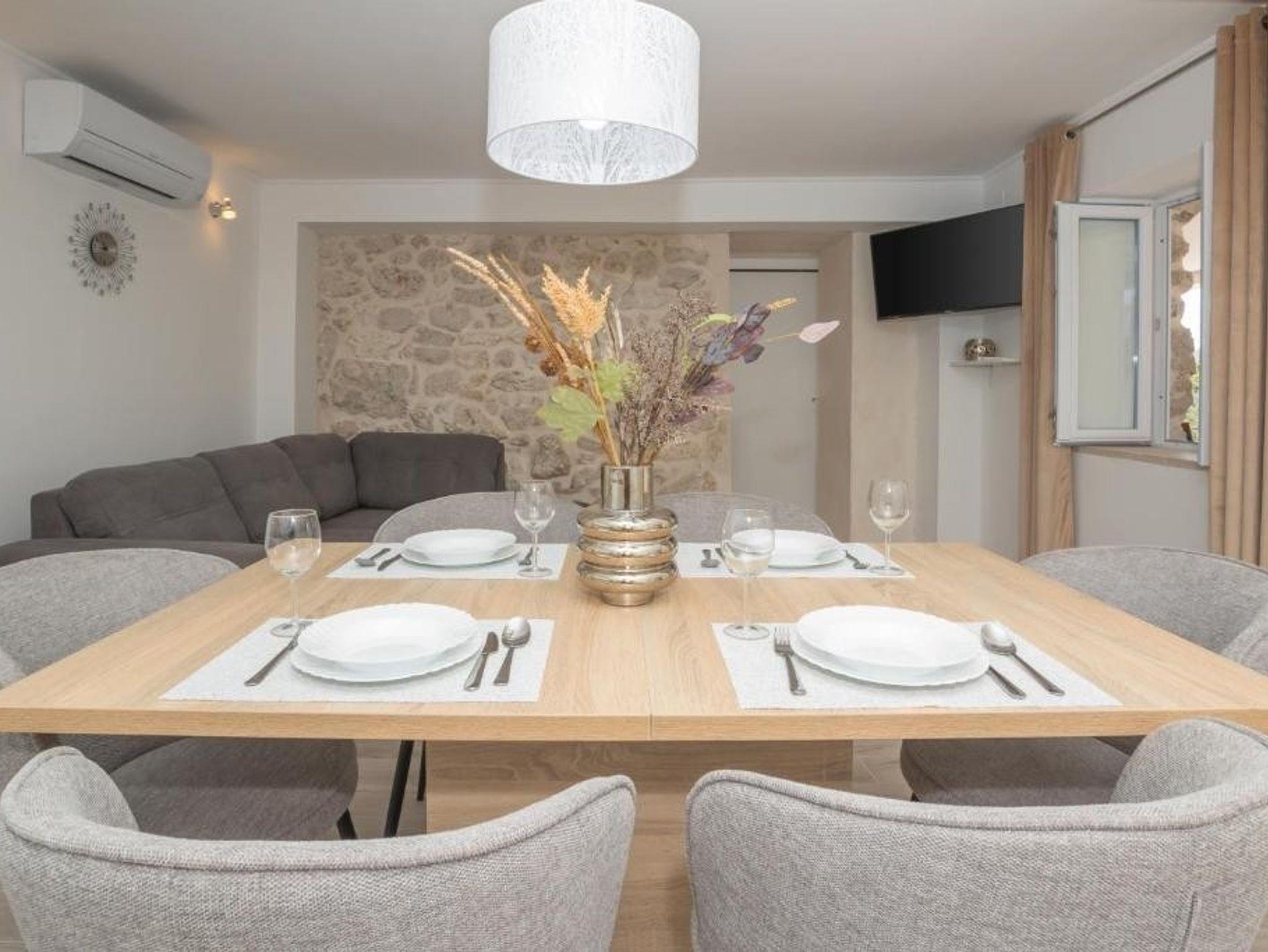 Haus bietet Platz für 8 Gäste. Die Betten sind in Schlafzimmern, die es 3 gibt, und in Wohnzimmer, innerhalb einer Gesamtfläche von 99m2, angeordnet. Die Gäste haben eine eigene Terrasse zur Verfügung, auf der sie in warmen Sommernächten genießen können. Für vollen Genuss und Entspannung gibt es einen privaten Grill für Gäste dieser Unterkunft. Während ihres Aufenthalts können sich Gäste im privaten Schwimmbad entspannen. In der Unterkunftseinheit besteht die Möglichkeit des Mitbringens von Haustieren, und die Dienstleistung ist im Preis der Unterkunft enthalten. IM PREIS INBEGRIFFEN: Kurtaxe, Endreinigung, Klimatisierung, Pool, Parkplatz, Internet, Haustiere, Kinderbett, Bügeleisen, Bügelbrett, Föhn. VERBINDLICHE ZUSÄTZLICHE KOSTEN: Aufzahlung für Kurzaufenthalte (prozentualer Zuschlag pro Nächtigungsanzahl: 30% - 1, 20% - 2, 10% - 3). Die Verfügbarkeit zusätzlicher Dienstleistungen in Ihrem reservierten Termin und die Preise derselben (falls nicht aufgeführt) müssen im Voraus überprüft werden. Zusätzliche Dienstleistungen die in der Zahlungsaufforderung nicht aufgeführt sind werden direkt beim Vermieter bezahlt, angenommen der Gast nutzt auch diese.