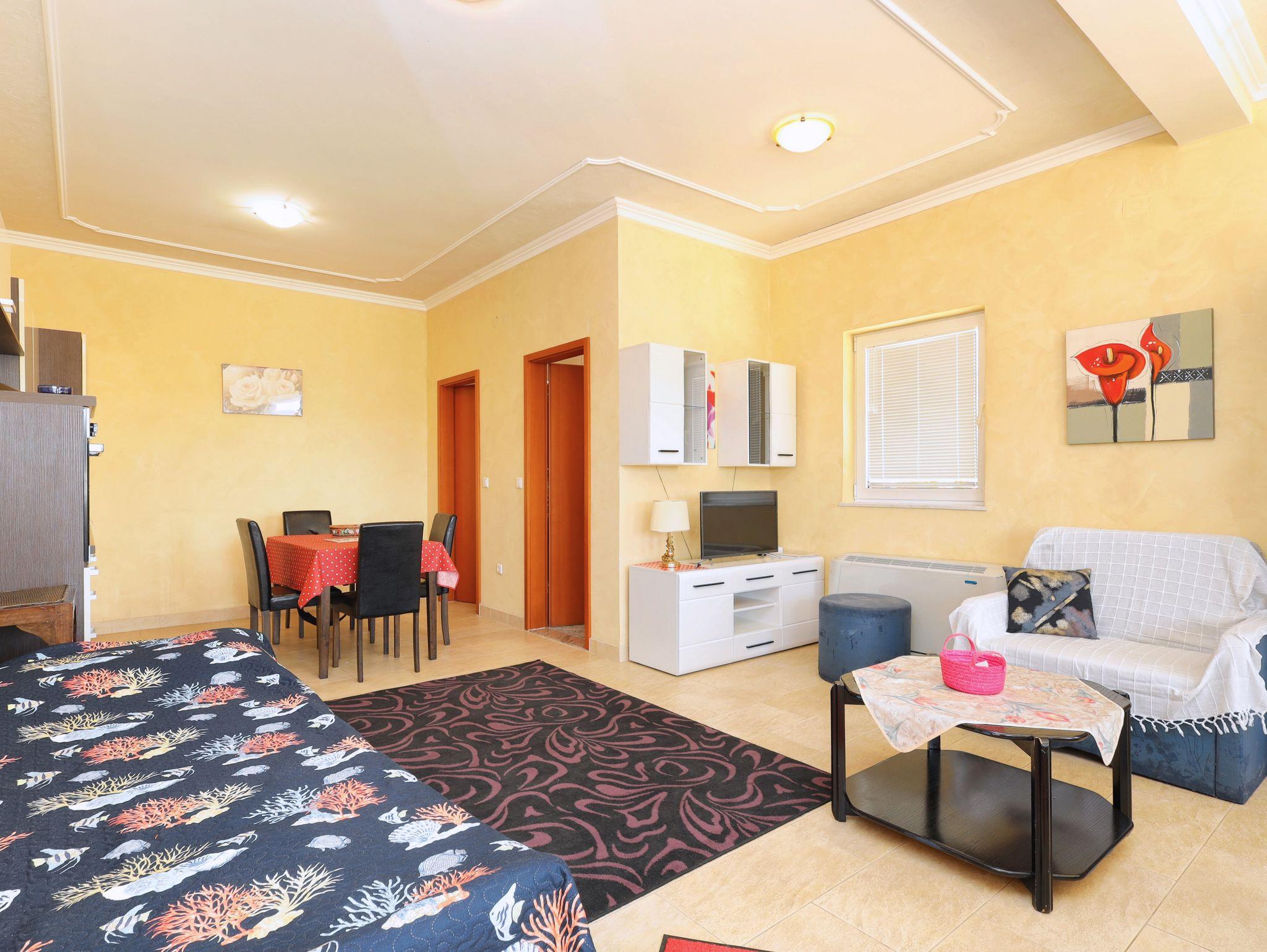 Studio bietet Platz für 2 Gäste. Die Betten sind in Schlafzimmern, die es 1 gibt, innerhalb einer Gesamtfläche von 37m2, angeordnet. Die Gäste haben eine eigene Terrasse zur Verfügung, auf der sie in warmen Sommernächten genießen können. Das Studio-Apartment bietet Meerblick. Es ist erlaubt, Speisen auf dem Gemeinschafts-Grill vorzubereiten. IM PREIS INBEGRIFFEN: Kurtaxe, Endreinigung, Klimatisierung, Parkplatz, Internet, Bootsanlegeplatz, Bügeleisen, Bügelbrett, 1 Bett für Kinder (im Preis enthalten). VERBINDLICHE ZUSÄTZLICHE KOSTEN: Aufzahlung für Kurzaufenthalte (prozentualer Zuschlag pro Nächtigungsanzahl: 30% - 1, 20% - 2, 10% - 3). UNVERBINDLICHE ZUSÄTZLICHE KOSTEN: Wäschewaschen (12,00 € Waschen). Die Verfügbarkeit zusätzlicher Dienstleistungen in Ihrem reservierten Termin und die Preise derselben (falls nicht aufgeführt) müssen im Voraus überprüft werden. Zusätzliche Dienstleistungen die in der Zahlungsaufforderung nicht aufgeführt sind werden direkt beim Vermieter bezahlt, angenommen der Gast nutzt auch diese.
