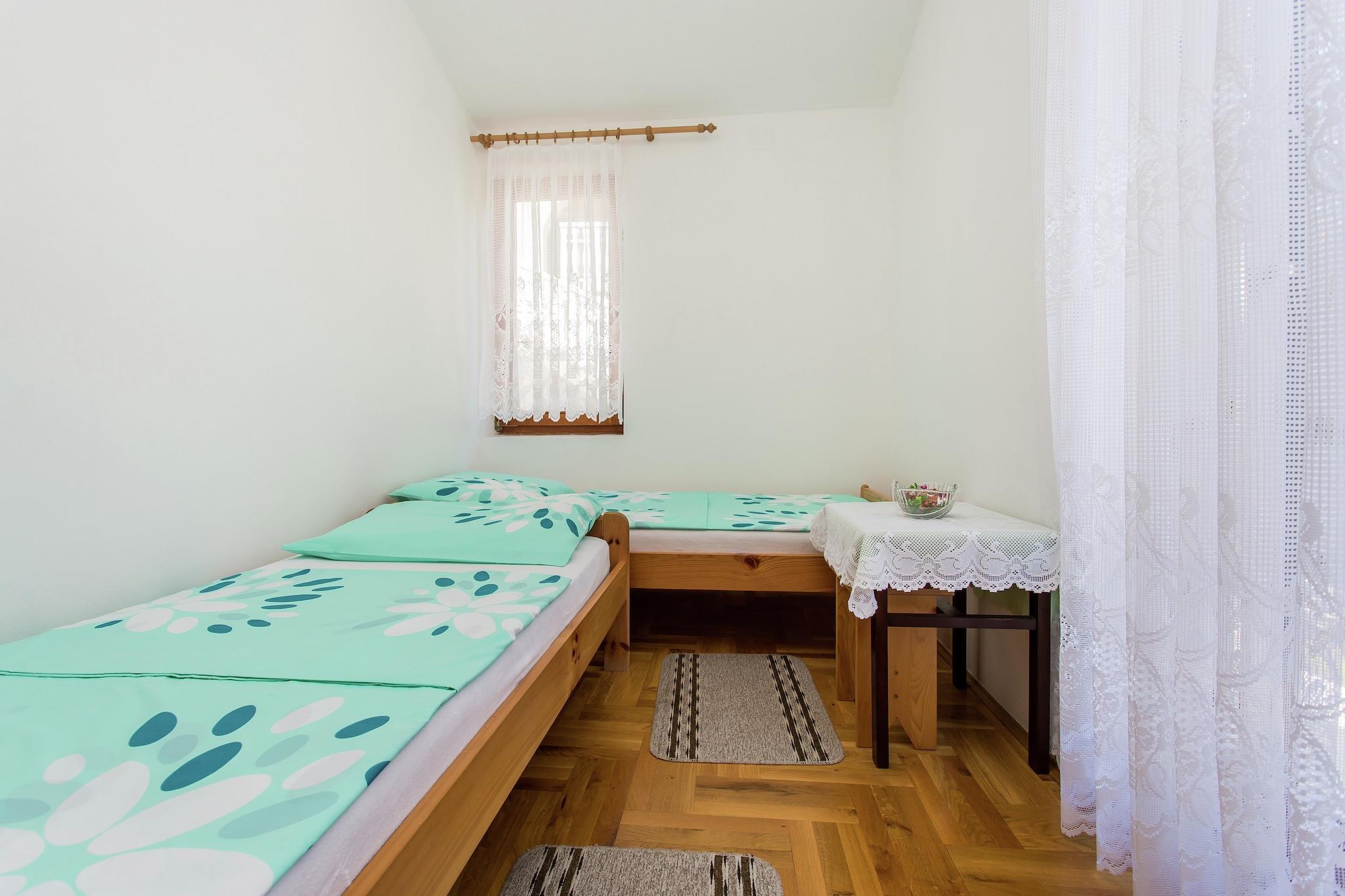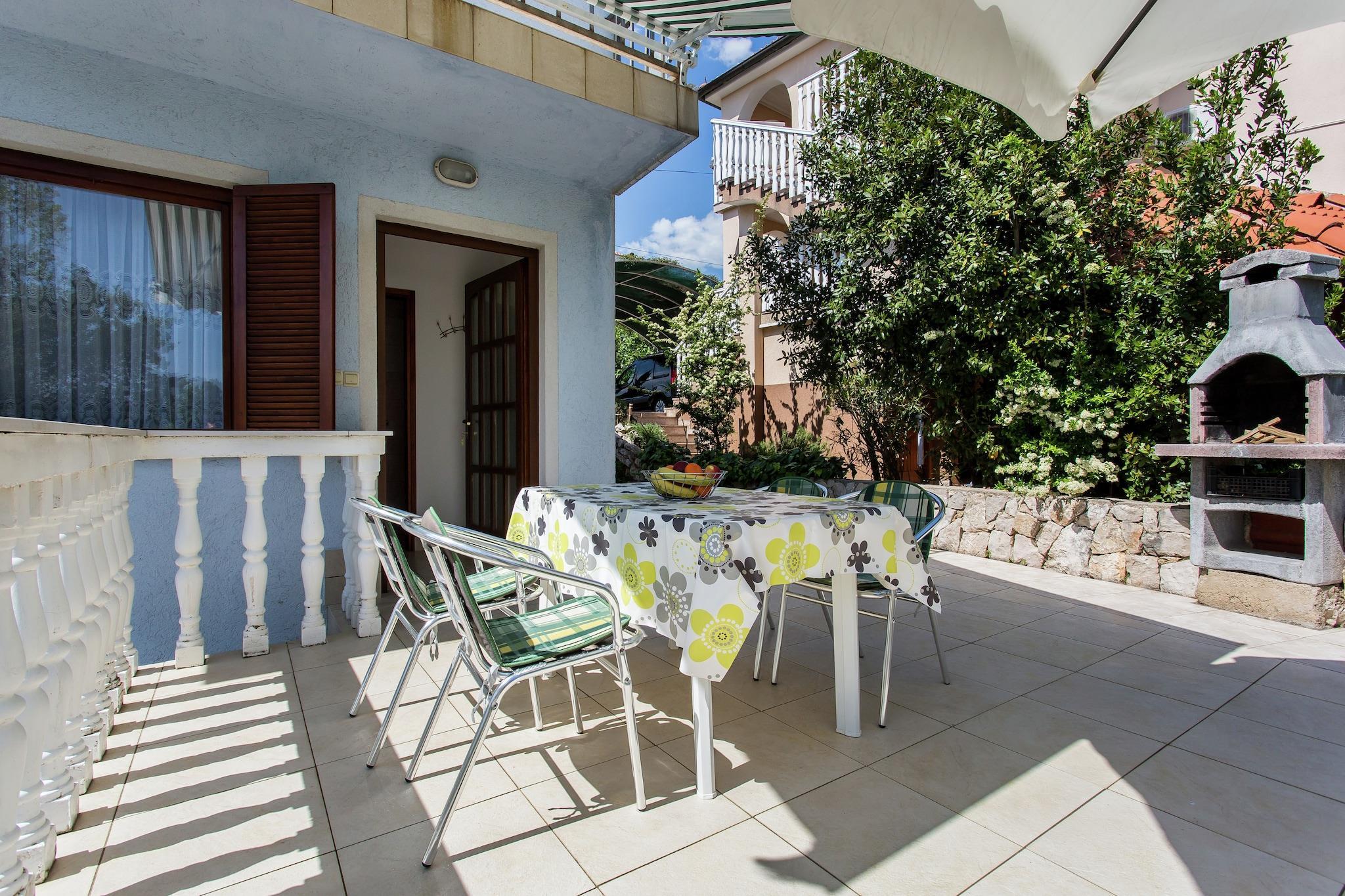 Wunderschöne Wohnung am Waldrand. Erdgeschoss und erste Etage mit ordentlicher und gepflegter Einrichtung. Wohnzimmer mit Sitzbank, Esstisch, Küchenecke und Flügeltüren zum Balkon und Tür zur großen Terrasse mit Sonnenschirm und Gartenmöbeln. Oben befindet sich ein Balkon mit Aussicht auf die Umgebung. Eine schöne bewaldete Umgebung und der Strand 600 Meter entfernt! Wenn Sie die Natur lieben, dann sind Sie hier richtig, denn das Fischerdörfchen liegt auf dem grüneren Teil der Insel Krk, die durch eine Brücke mit dem Festland verbunden ist. Bäcker, Markt, Post, einfache Einkäufe und Restaurant in Silo (600 m). Hier befinden Sie sich nicht weit von der Zugangsstraße, die Silo mit den anderen kleinen Dörfern der Insel verbindet, entfernt. Vom breiten Strand von Baska (29 km) aus haben Sie eine wundervolle Aussicht auf das Velebit-Gebirge. Schwimmbad in Krk-Stadt (23 km). Von Valbiska (26 km) fährt eine Fähre zur Insel Rab, auf der die gleichnamige alte Stadt in unvergleichbarer Schönheit liegt. Ein Gewirr von prächtigen Sträßchen und schöne kleine Kirchtürme, umgeben vom kristallklaren Meer. Auf dem Festland befinden sich die Hafenstadt Rijeka (52 km) und der Nationalpark Risnjak (60 km), die einen Besuch wert sind.