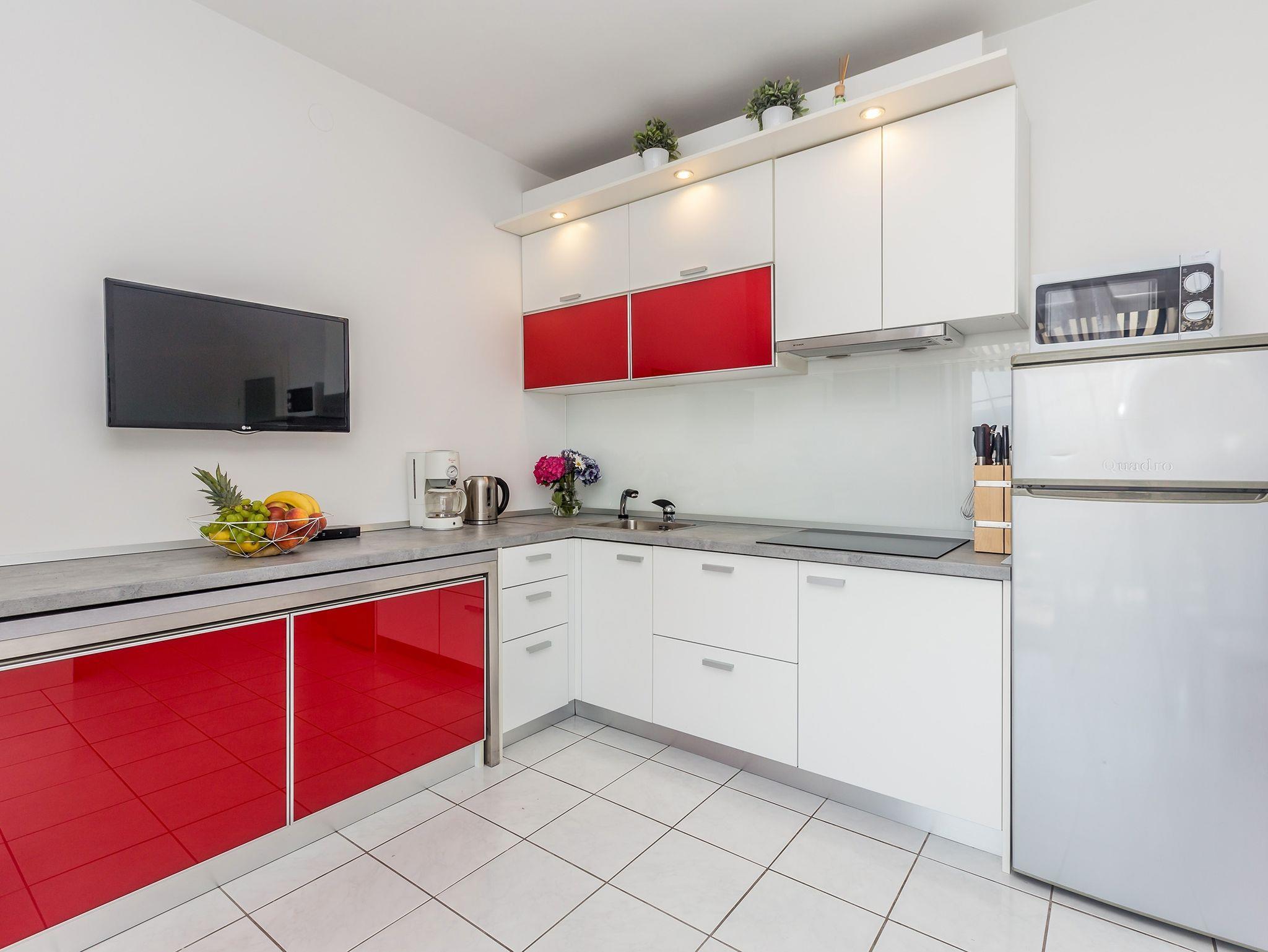 Ferienwohnung bietet Platz für 4 Gäste. Die Betten sind in Schlafzimmern, die es 2 gibt, innerhalb einer Gesamtfläche von 49m2, angeordnet. Die Gäste haben eine eigene Terrasse zur Verfügung, auf der sie in warmen Sommernächten genießen können. Das Apartment bietet Meerblick. Es ist erlaubt, Speisen auf dem Gemeinschafts-Grill vorzubereiten. IM PREIS INBEGRIFFEN: Kurtaxe, Endreinigung, Klimatisierung, Internet, Kinderbett, Bügeleisen, Bügelbrett, Föhn, tragbarer Grill. Die Verfügbarkeit zusätzlicher Dienstleistungen in Ihrem reservierten Termin und die Preise derselben (falls nicht aufgeführt) müssen im Voraus überprüft werden. Zusätzliche Dienstleistungen die in der Zahlungsaufforderung nicht aufgeführt sind werden direkt beim Vermieter bezahlt, angenommen der Gast nutzt auch diese.
