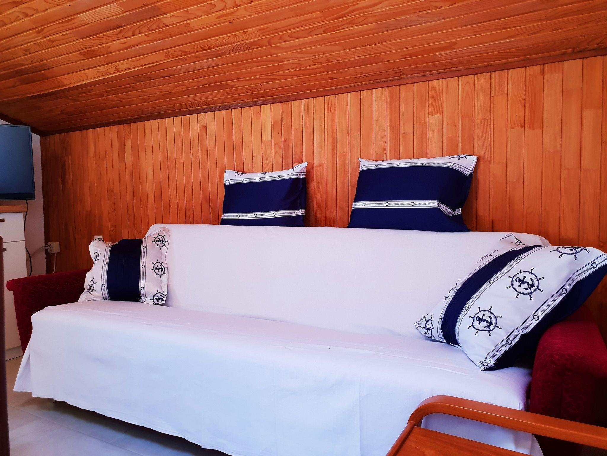 Ferienwohnung bietet Platz für 7 Gäste. Die Betten sind in Schlafzimmern, die es 3 gibt, innerhalb einer Gesamtfläche von 67m2, angeordnet. Die Gäste haben eine eigene Terrasse zur Verfügung, auf der sie in warmen Sommernächten genießen können. Das Apartment bietet Meerblick. Für vollen Genuss und Entspannung gibt es einen privaten Grill für Gäste dieser Unterkunft. IM PREIS INBEGRIFFEN: Kurtaxe, Endreinigung, Klimatisierung, Parkplatz, Internet, Bügeleisen, Bügelbrett, Föhn. Die Verfügbarkeit zusätzlicher Dienstleistungen in Ihrem reservierten Termin und die Preise derselben (falls nicht aufgeführt) müssen im Voraus überprüft werden. Zusätzliche Dienstleistungen die in der Zahlungsaufforderung nicht aufgeführt sind werden direkt beim Vermieter bezahlt, angenommen der Gast nutzt auch diese.