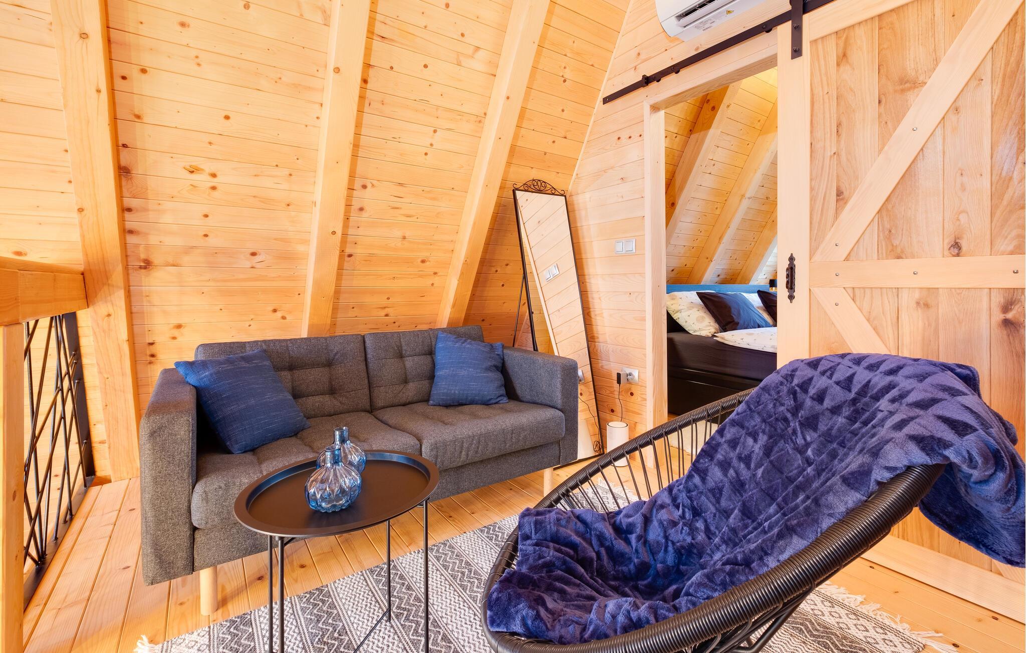 Erholen Sie sich im einladenden Whirlpool Ihres Außenbereichs und genießen Sie Ihr Frühstück auf der großzügigen Terrasse, umgeben von unberührter Natur. Lehnen Sie sich auf den bequemen Liegestühlen zurück und lassen Sie den Blick über die idyllische Landschaft schweifen. Am Abend schaffen die stimmungsvollen Lichter ein perfektes Ambiente für entspannte Stunden unter dem Sternenhimmel.