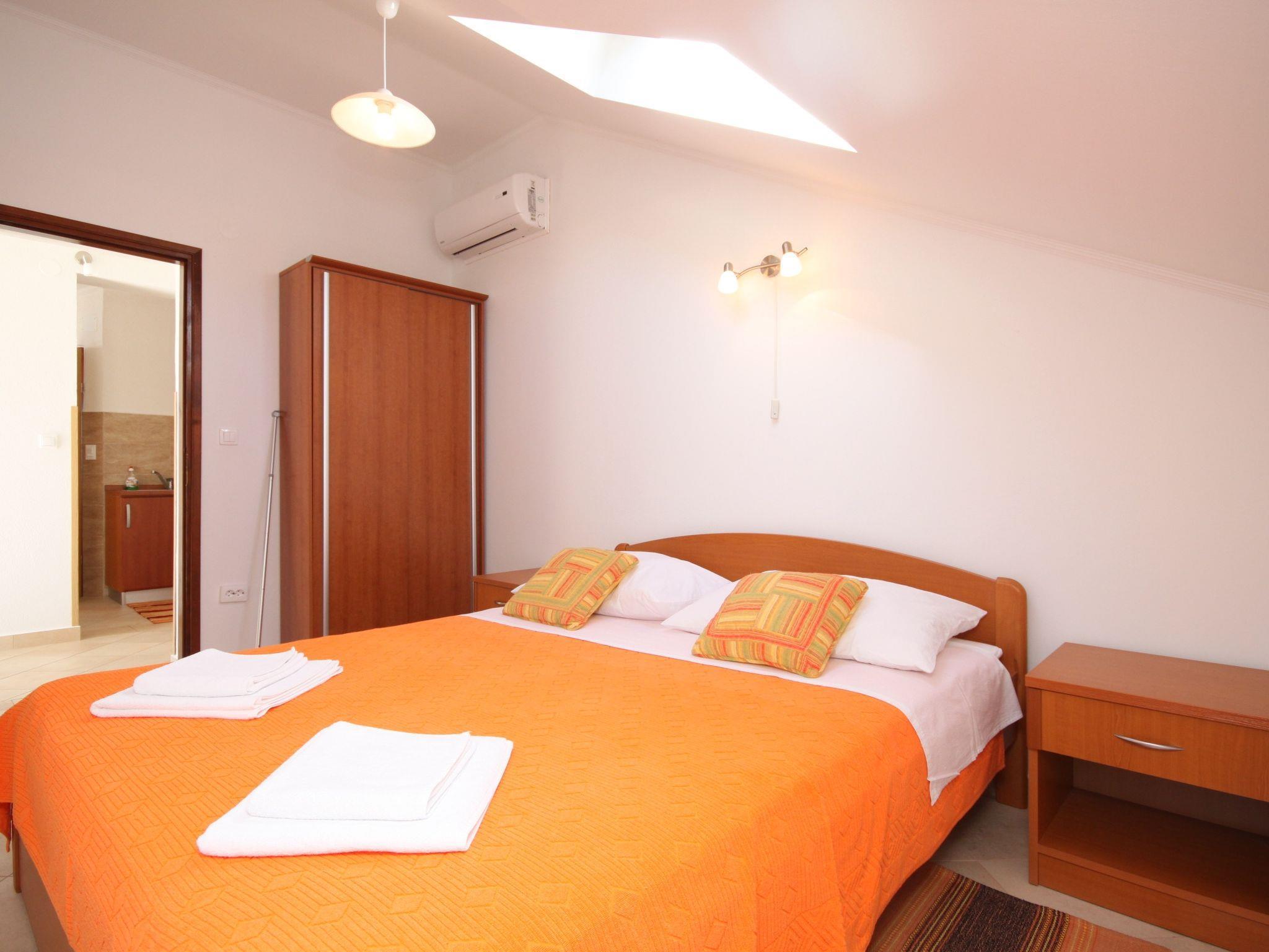 Ferienwohnung bietet Platz für 4 Gäste. Die Betten sind in Schlafzimmern, die es 2 gibt, innerhalb einer Gesamtfläche von 51m2, angeordnet. Die Gäste haben einen eigenen Balkon zur Verfügung, auf der sie in warmen Sommernächten genießen können. Das Apartment bietet Meerblick. Es ist erlaubt, Speisen auf dem Gemeinschafts-Grill vorzubereiten. IM PREIS INBEGRIFFEN: Kurtaxe, Endreinigung, Klimatisierung, Parkplatz, Internet, Bootsanlegeplatz, Kinderbett, Bügeleisen, Bügelbrett, Föhn. VERBINDLICHE ZUSÄTZLICHE KOSTEN: Aufzahlung für Kurzaufenthalte (prozentualer Zuschlag pro Nächtigungsanzahl: 30% - 1, 20% - 2, 10% - 3). Die Verfügbarkeit zusätzlicher Dienstleistungen in Ihrem reservierten Termin und die Preise derselben (falls nicht aufgeführt) müssen im Voraus überprüft werden. Zusätzliche Dienstleistungen die in der Zahlungsaufforderung nicht aufgeführt sind werden direkt beim Vermieter bezahlt, angenommen der Gast nutzt auch diese.