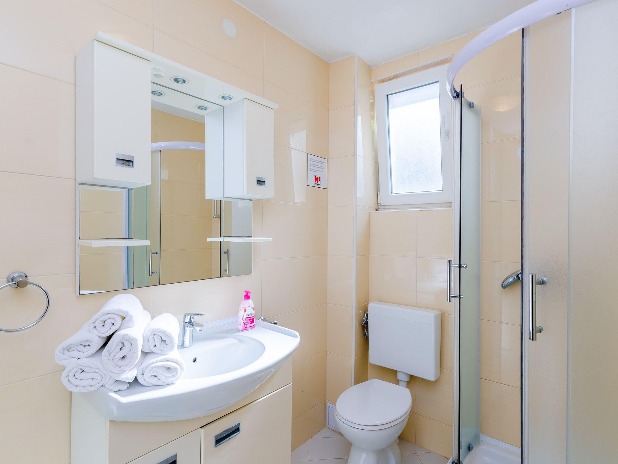 Ferienwohnung bietet Platz für 4 Gäste. Die Betten sind in Schlafzimmern, die es 1 gibt, und in Wohnzimmer, innerhalb einer Gesamtfläche von 38m2, angeordnet. Die Gäste haben eine eigene Terrasse zur Verfügung, auf der sie in warmen Sommernächten genießen können. Das Apartment bietet Meerblick. Es ist erlaubt, Speisen auf dem Gemeinschafts-Grill vorzubereiten. IM PREIS INBEGRIFFEN: Kurtaxe, Endreinigung, Klimatisierung, Parkplatz, Internet, Bootsanlegeplatz, Kinderbett, Zusatzbett, Bügeleisen, Bügelbrett, Föhn, Sonnenschirm, Liegestühle. Die Verfügbarkeit zusätzlicher Dienstleistungen in Ihrem reservierten Termin und die Preise derselben (falls nicht aufgeführt) müssen im Voraus überprüft werden. Zusätzliche Dienstleistungen die in der Zahlungsaufforderung nicht aufgeführt sind werden direkt beim Vermieter bezahlt, angenommen der Gast nutzt auch diese. Ermäßigung auf den Grundpreis: Gratistag 14=13 (bei einem Aufenthalt von 14 Tagen oder mehr erhalten Sie einen Gratistag für den Aufenthalt bis 31.12.26).