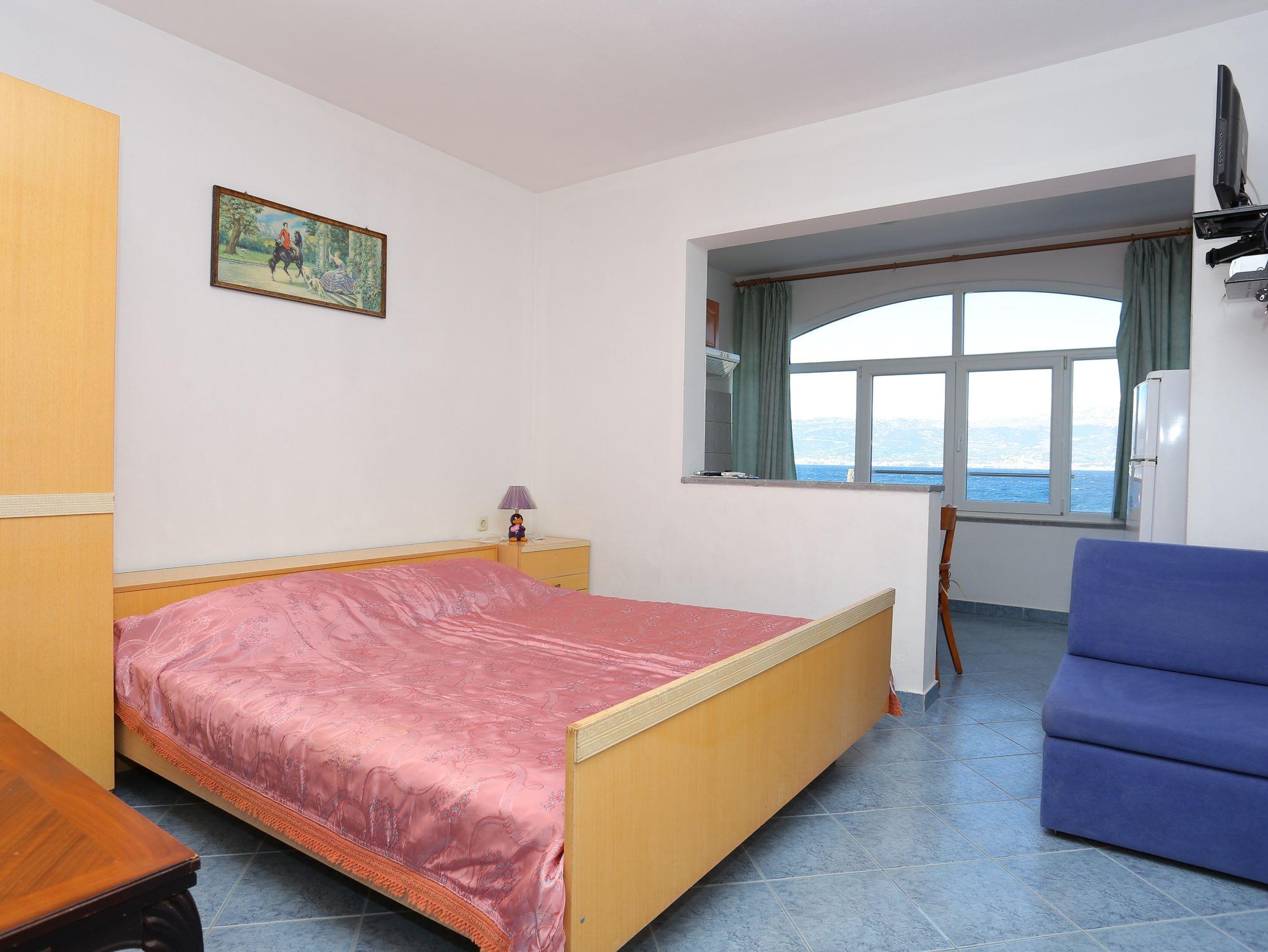 Studio bietet Platz für 3 Gäste. Die Betten sind in Schlafzimmern, die es 1 gibt, innerhalb einer Gesamtfläche von 26m2, angeordnet. Die Gäste haben einen eigenen Balkon zur Verfügung, auf der sie in warmen Sommernächten genießen können. Das Studio-Apartment bietet Meerblick. Es ist erlaubt, Speisen auf dem Gemeinschafts-Grill vorzubereiten. IM PREIS INBEGRIFFEN: Kurtaxe, Endreinigung, Parkplatz, Internet, tragbarer Grill, Sonnenschirm, Liegestühle. VERBINDLICHE ZUSÄTZLICHE KOSTEN: Aufzahlung für Kurzaufenthalte (prozentualer Zuschlag pro Nächtigungsanzahl: 30% - 1, 20% - 2, 10% - 3). UNVERBINDLICHE ZUSÄTZLICHE KOSTEN: Klimatisierung (5,00 € pro Nacht), Bootsanlegeplatz (5,00 € pro Nacht). Die Verfügbarkeit zusätzlicher Dienstleistungen in Ihrem reservierten Termin und die Preise derselben (falls nicht aufgeführt) müssen im Voraus überprüft werden. Zusätzliche Dienstleistungen die in der Zahlungsaufforderung nicht aufgeführt sind werden direkt beim Vermieter bezahlt, angenommen der Gast nutzt auch diese.