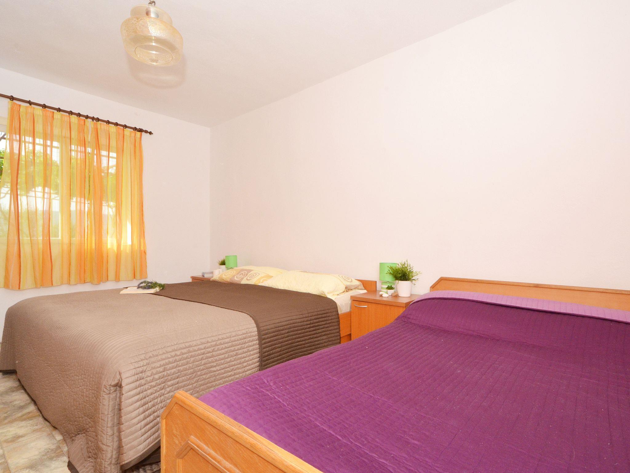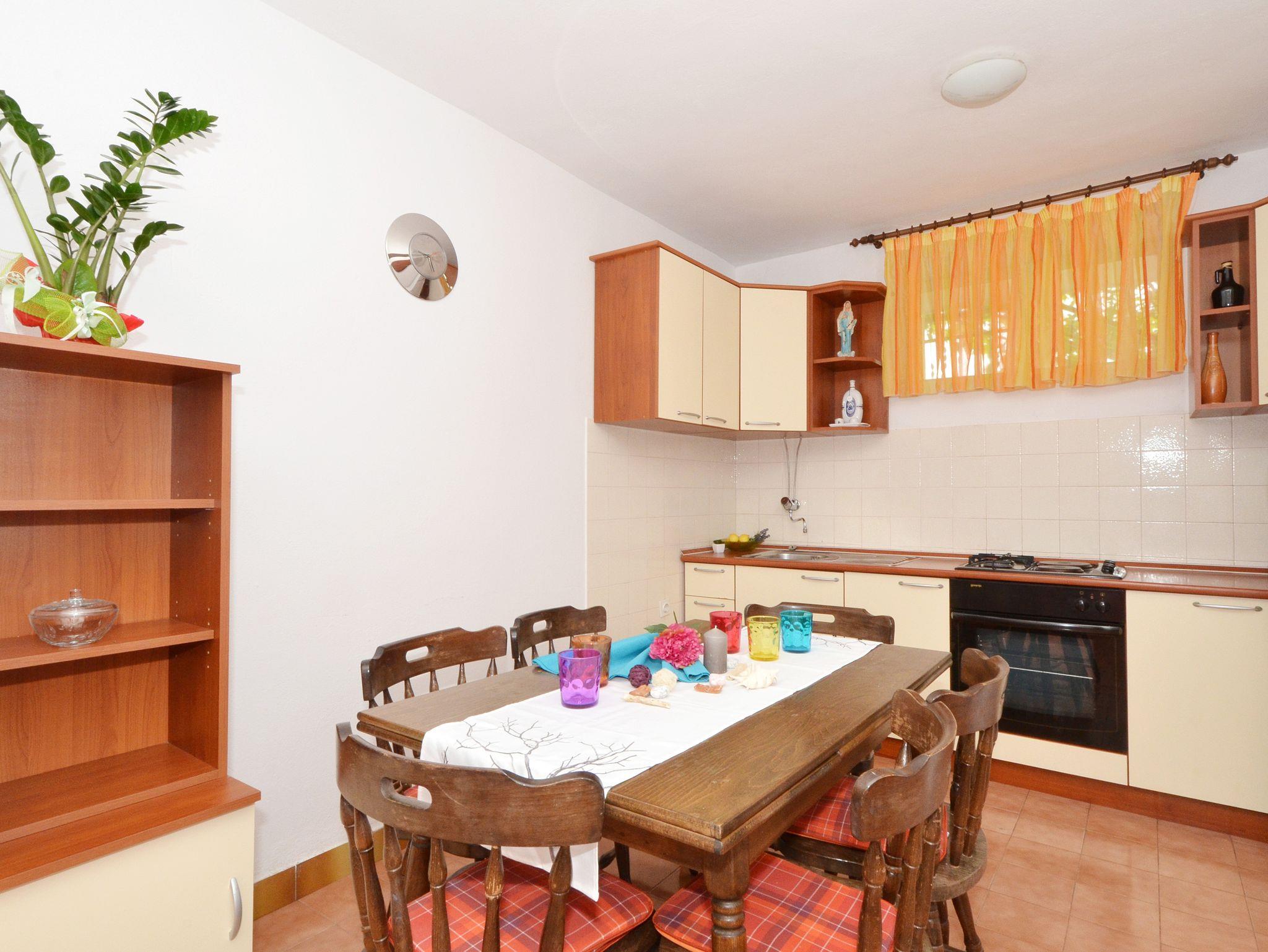 Ferienwohnung bietet Platz für 4 Gäste. Die Betten sind in Schlafzimmern, die es 1 gibt, und in Wohnzimmer, innerhalb einer Gesamtfläche von 43m2, angeordnet. Die Gäste haben eine eigene Terrasse zur Verfügung, auf der sie in warmen Sommernächten genießen können. Es ist erlaubt, Speisen auf dem Gemeinschafts-Grill vorzubereiten. Durch die Terrasse der gebuchten Unterkunftseinheit gehen auch andere Gäste oder Vermieter. IM PREIS INBEGRIFFEN: Kurtaxe, Endreinigung, Klimatisierung, Parkplatz, Internet, Wäschewaschen. VERBINDLICHE ZUSÄTZLICHE KOSTEN: Aufzahlung für Kurzaufenthalte (prozentualer Zuschlag pro Nächtigungsanzahl: 30% - 1, 20% - 2, 10% - 3). UNVERBINDLICHE ZUSÄTZLICHE KOSTEN: Bootsanlegeplatz (5,00 € pro Nacht). Die Verfügbarkeit zusätzlicher Dienstleistungen in Ihrem reservierten Termin und die Preise derselben (falls nicht aufgeführt) müssen im Voraus überprüft werden. Zusätzliche Dienstleistungen die in der Zahlungsaufforderung nicht aufgeführt sind werden direkt beim Vermieter bezahlt, angenommen der Gast nutzt auch diese.