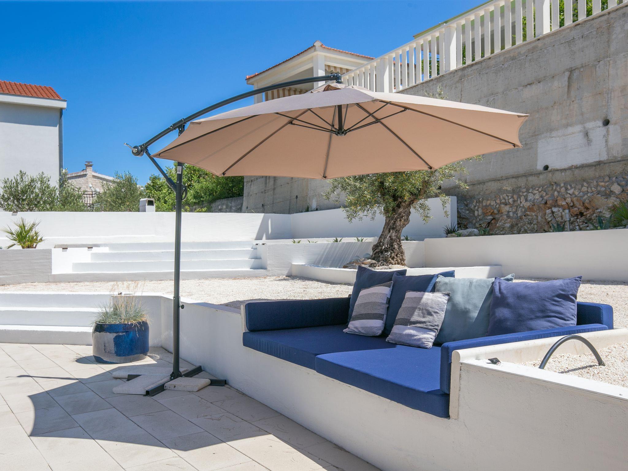 Haus bietet Platz für 8 Gäste. Die Betten sind in Schlafzimmern, die es 3 gibt, innerhalb einer Gesamtfläche von 135m2, angeordnet. Die Gäste haben eine eigene Terrasse zur Verfügung, auf der sie in warmen Sommernächten genießen können. Das Haus bietet Meerblick. Für vollen Genuss und Entspannung gibt es einen privaten Grill für Gäste dieser Unterkunft. Während ihres Aufenthalts können sich Gäste im privaten Schwimmbad entspannen. Räume der gebuchten Unterkunftseinheit werden nicht in eine Ganze verbunden. IM PREIS INBEGRIFFEN: Kurtaxe, Endreinigung, Klimatisierung, Pool, Parkplatz, Internet, Kinderbett, Bügeleisen, Bügelbrett, Föhn. Die Verfügbarkeit zusätzlicher Dienstleistungen in Ihrem reservierten Termin und die Preise derselben (falls nicht aufgeführt) müssen im Voraus überprüft werden. Zusätzliche Dienstleistungen die in der Zahlungsaufforderung nicht aufgeführt sind werden direkt beim Vermieter bezahlt, angenommen der Gast nutzt auch diese. Ermäßigung auf den Grundpreis: Gratistag 14=13 (bei einem Aufenthalt von 14 Tagen oder mehr erhalten Sie einen Gratistag für den Aufenthalt bis 31.12.26).