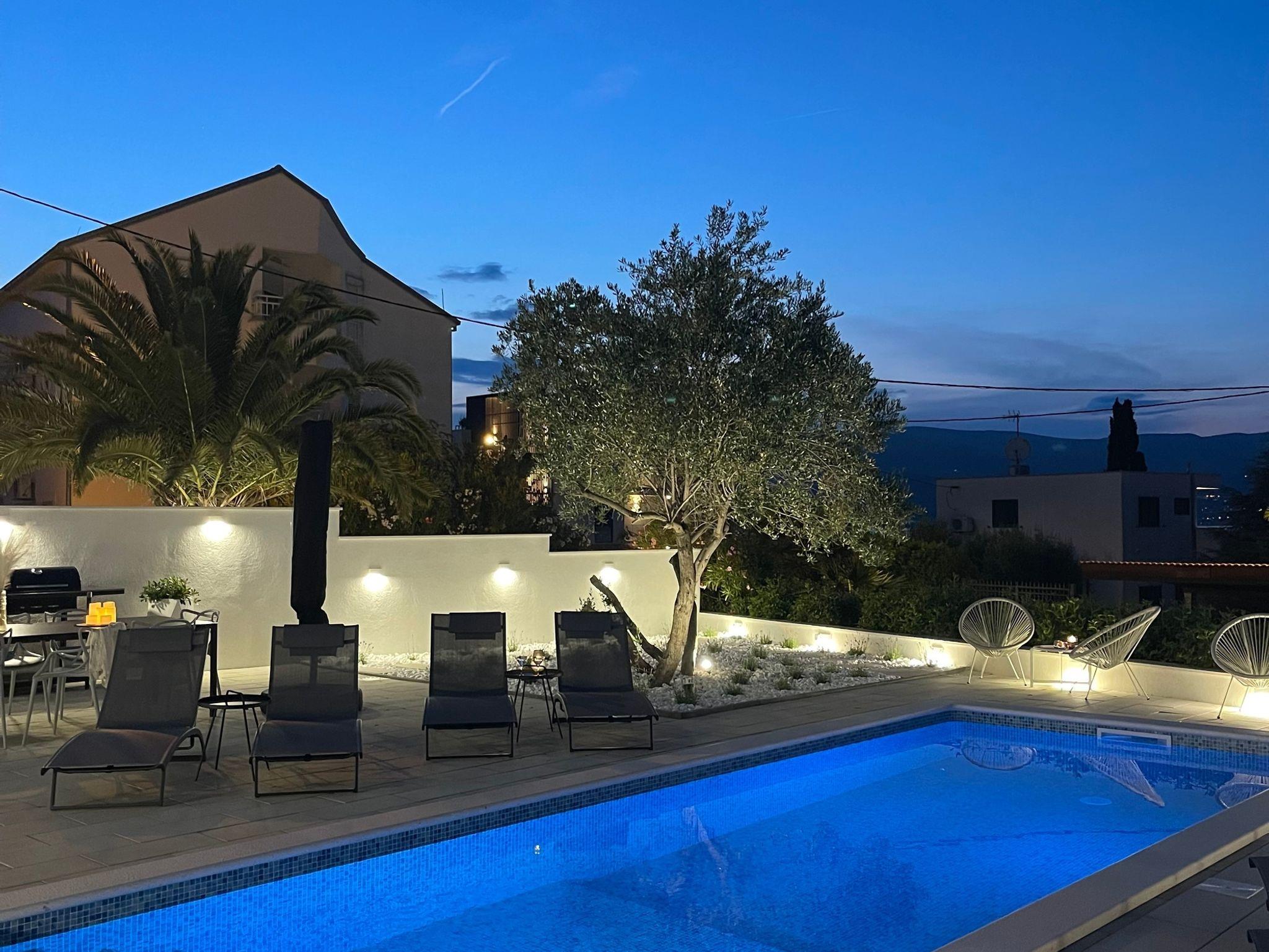 Ferienwohnungen mit Pool für Familien Arbanija, Ciovo - 25090, 2-Zimmer-Ferienwohnung mit Terrasse und Meerblick Arbanija, Ciovo A-25090-b