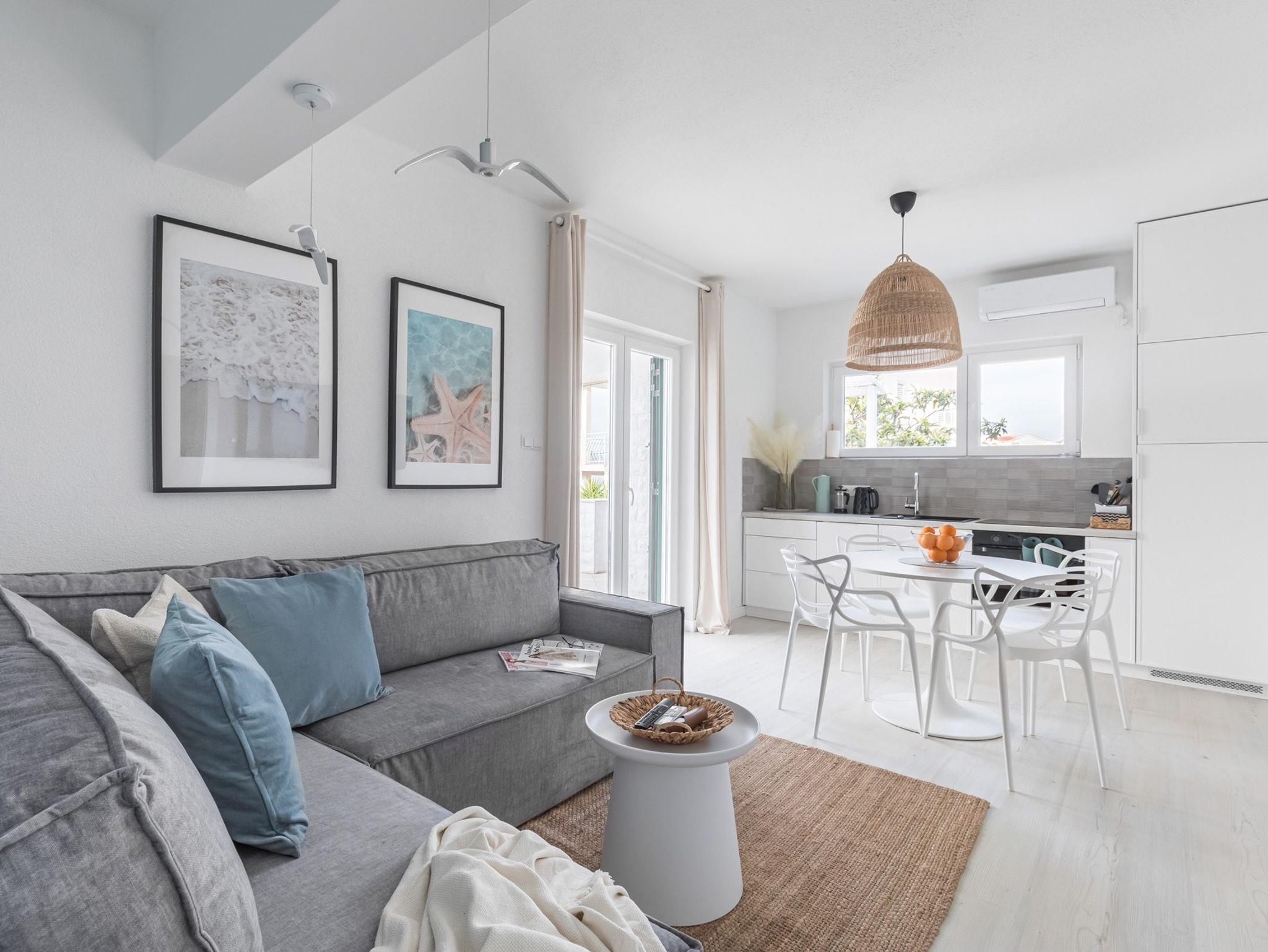 Ferienwohnung bietet Platz für 6 Gäste. Die Betten sind in Schlafzimmern, die es 2 gibt, und in Wohnzimmer, innerhalb einer Gesamtfläche von 43m2, angeordnet. Die Gäste haben eine eigene Terrasse zur Verfügung, auf der sie in warmen Sommernächten genießen können. Das Apartment bietet Meerblick. Für vollen Genuss und Entspannung gibt es einen privaten Grill für Gäste dieser Unterkunft. Während ihres Aufenthalts können Gäste das gemeinsam zur Nutzung stehende Schwimmbad benutzen. In der Unterkunftseinheit besteht die Möglichkeit des Mitbringens von Haustieren gegen Aufpreis. IM PREIS INBEGRIFFEN: Endreinigung, Klimatisierung, Pool, Parkplatz, Internet, Kinderbett, Bügeleisen, Bügelbrett, Föhn. VERBINDLICHE ZUSÄTZLICHE KOSTEN: Kurtaxe (Erwachsene 0,93 € - 2,65 € Nacht/Person, Kinderermäßigung 12 - 17 Jahre). UNVERBINDLICHE ZUSÄTZLICHE KOSTEN: Haustiere (5,00 € pro Nacht). Die Verfügbarkeit zusätzlicher Dienstleistungen in Ihrem reservierten Termin und die Preise derselben (falls nicht aufgeführt) müssen im Voraus überprüft werden. Zusätzliche Dienstleistungen die in der Zahlungsaufforderung nicht aufgeführt sind werden direkt beim Vermieter bezahlt, angenommen der Gast nutzt auch diese.
