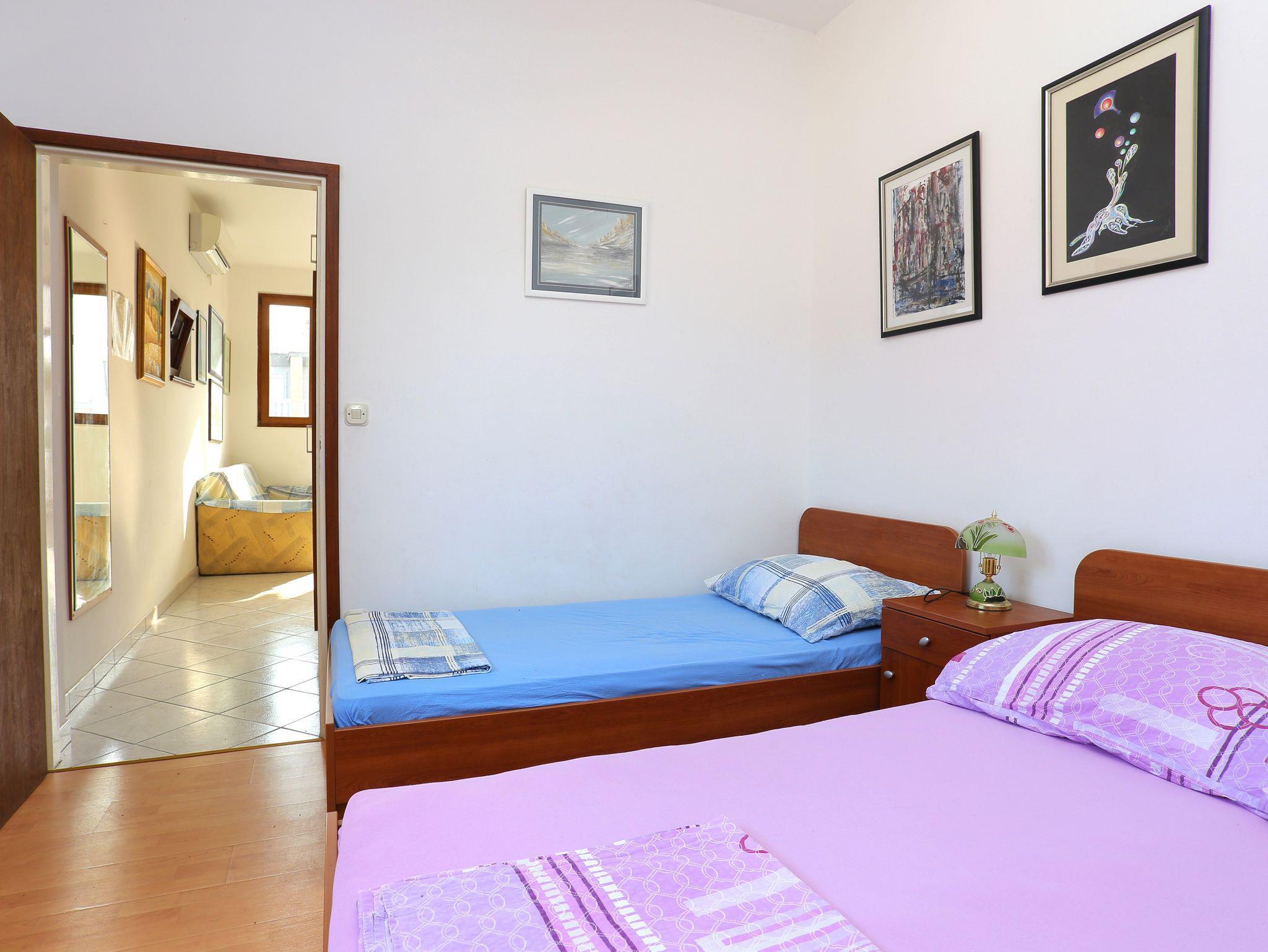 Ferienwohnung bietet Platz für 5 Gäste. Die Betten sind in Schlafzimmern, die es 1 gibt, und in Esszimmer, innerhalb einer Gesamtfläche von 27m2, angeordnet. Die Gäste haben eine eigene Terrasse zur Verfügung, auf der sie in warmen Sommernächten genießen können. Das Apartment bietet Meerblick. Es ist erlaubt, Speisen auf dem Gemeinschafts-Grill vorzubereiten. In der Unterkunftseinheit besteht die Möglichkeit des Mitbringens von Haustieren gegen Aufpreis. IM PREIS INBEGRIFFEN: Kurtaxe, Endreinigung, Klimatisierung, Parkplatz, Internet, Kinderbett. VERBINDLICHE ZUSÄTZLICHE KOSTEN: Aufzahlung für Kurzaufenthalte (prozentualer Zuschlag pro Nächtigungsanzahl: 30% - 1, 20% - 2, 10% - 3). UNVERBINDLICHE ZUSÄTZLICHE KOSTEN: Haustiere (18,00 € pro Nacht). Die Verfügbarkeit zusätzlicher Dienstleistungen in Ihrem reservierten Termin und die Preise derselben (falls nicht aufgeführt) müssen im Voraus überprüft werden. Zusätzliche Dienstleistungen die in der Zahlungsaufforderung nicht aufgeführt sind werden direkt beim Vermieter bezahlt, angenommen der Gast nutzt auch diese. Ermäßigung auf den Grundpreis: Gratistag 14=13 (bei einem Aufenthalt von 14 Tagen oder mehr erhalten Sie einen Gratistag für den Aufenthalt bis 31.12.26).