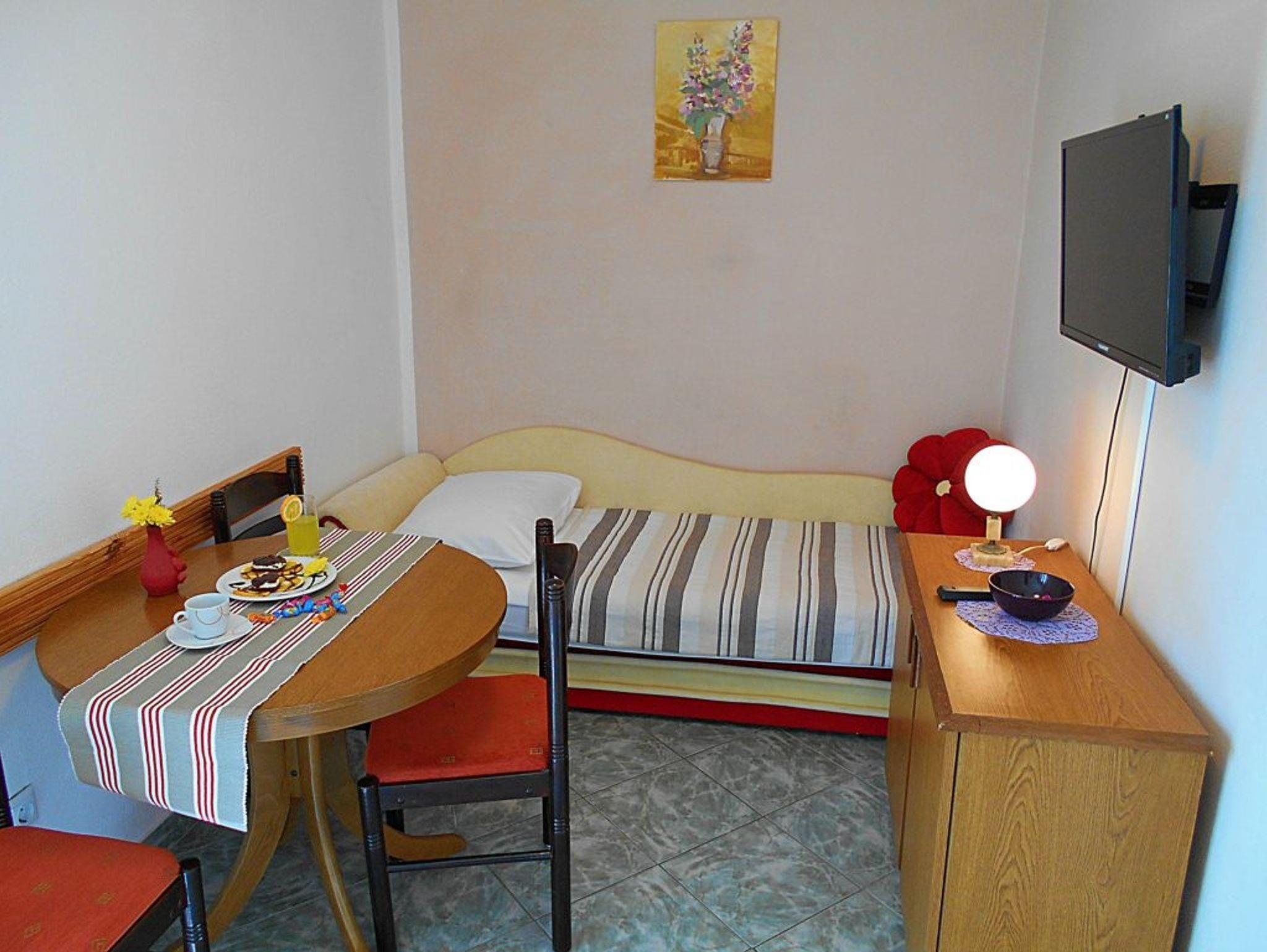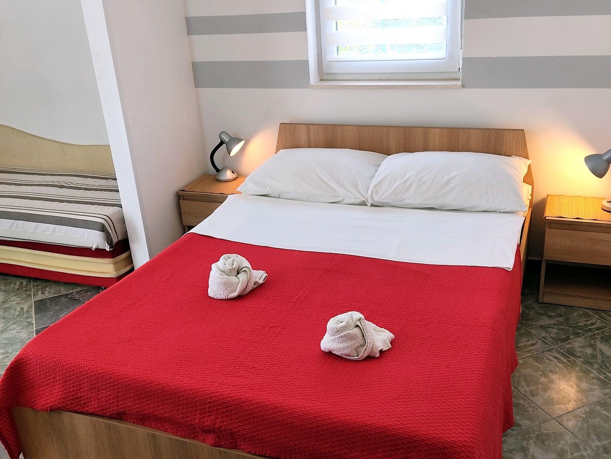 Studio bietet Platz für 2 Gäste. Die Betten sind in Schlafzimmern, die es 1 gibt, innerhalb einer Gesamtfläche von 24m2, angeordnet. Die Gäste haben einen eigenen Balkon zur Verfügung, auf der sie in warmen Sommernächten genießen können. Das Studio-Apartment bietet Meerblick. Es ist erlaubt, Speisen auf dem Gemeinschafts-Grill vorzubereiten. IM PREIS INBEGRIFFEN: Kurtaxe, Endreinigung, Klimatisierung, Parkplatz, Internet, Wäschewaschen, 1 Bett für Kinder (im Preis enthalten). VERBINDLICHE ZUSÄTZLICHE KOSTEN: Aufzahlung für Kurzaufenthalte (prozentualer Zuschlag pro Nächtigungsanzahl: 30% - 1, 20% - 2, 10% - 3). Die Verfügbarkeit zusätzlicher Dienstleistungen in Ihrem reservierten Termin und die Preise derselben (falls nicht aufgeführt) müssen im Voraus überprüft werden. Zusätzliche Dienstleistungen die in der Zahlungsaufforderung nicht aufgeführt sind werden direkt beim Vermieter bezahlt, angenommen der Gast nutzt auch diese.