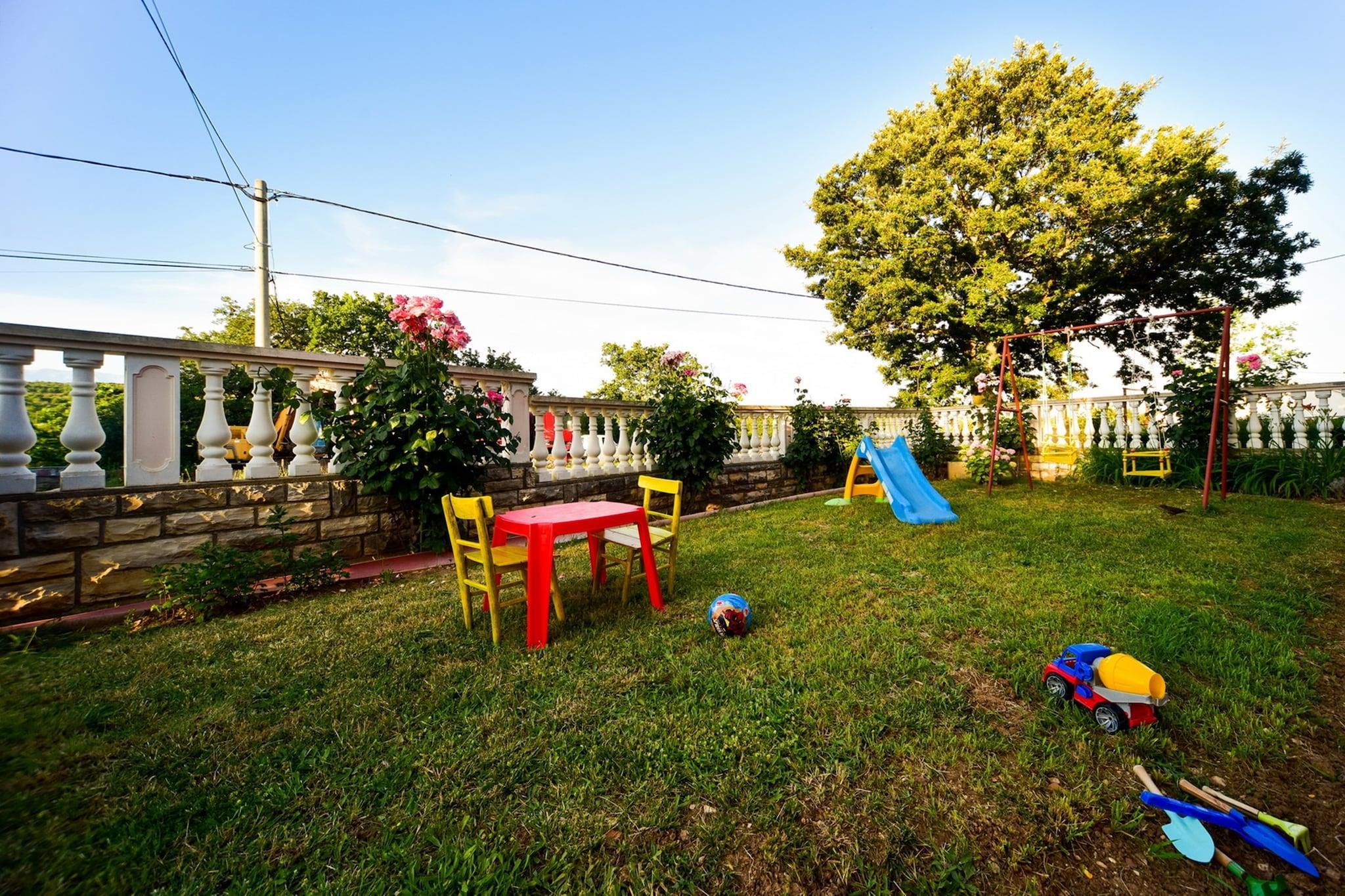 In der 1. Etage: (offene Küche(Wasserkocher, Toaster, Kochherd(4 Kochplatten, Gas, elektrisch), Kaffeemaschine, Backofen, Mikrowelle, Spülmaschine, Kühl-/Gefrierkombination), Wohn/Esszimmer(TV(Flatscreen), Esstisch(6 Personen), Sitzecke, Balkon oder Terrasse, Klimaanlage), Schlafzimmer(Doppelbett, Balkon), Schlafzimmer(Doppelbett), Schlafzimmer(Doppelbett), Badezimmer(Dusche, Waschbecken, Toilette, Waschmaschine, Föhn), Babybett) Toilette(Waschbecken, Toilette), Garage, Infrarotdusche, Terrasse(alleinige Nutzung, überdacht), Garten(alleinige Nutzung, umzäunt, illuminiert), Gartenmöbel, Liegen, Grill, Parkplatz, Pool(alleinige Nutzung, umzäunt, 8 x 4 m.), Spielgeräte