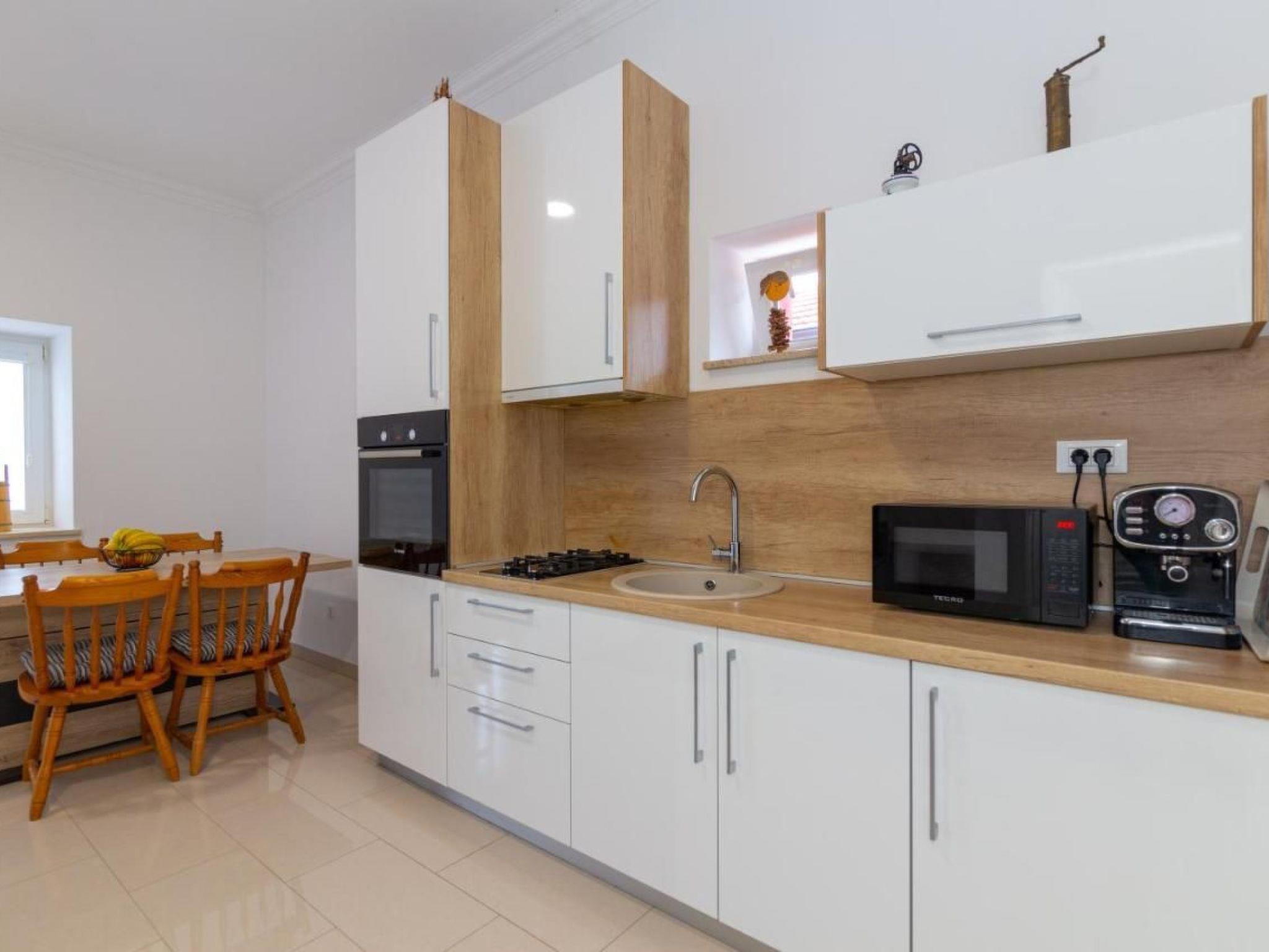Entdecken Sie dieses sehr modern eingerichtete Ferienhaus, das über ein geräumiges, klimatisiertes Wohnzimmer mit zwei Küchen, zwei Schlafzimmer mit einem Doppelbett und einem Einzelbett, ein Badezimmer, ein Gäste WC und Flachbildfernseher verfügt. Springen Sie in einen 32 m² großen privaten Pool, während Ihre Kinder sich auf den Schaukeln vergnügen, oder bereiten Sie Ihre Lieblingsgerichte auf dem Grillplatz vor. Neben dem Pool gibt es bequeme Sonnenliegen und einen Sitzbereich sowie einen Essbereich im Freien für angenehmes Beisammensein und Entspannen. Der großzügige Pool und die schöne Sonnenterrasse sind umgeben von der unberührten Natur mit dem Biokovo-Gebirge im Vordergrund und bieten Ihnen wahre Momente der Ruhe und laden zum stundenlangen Verweilen ein.
