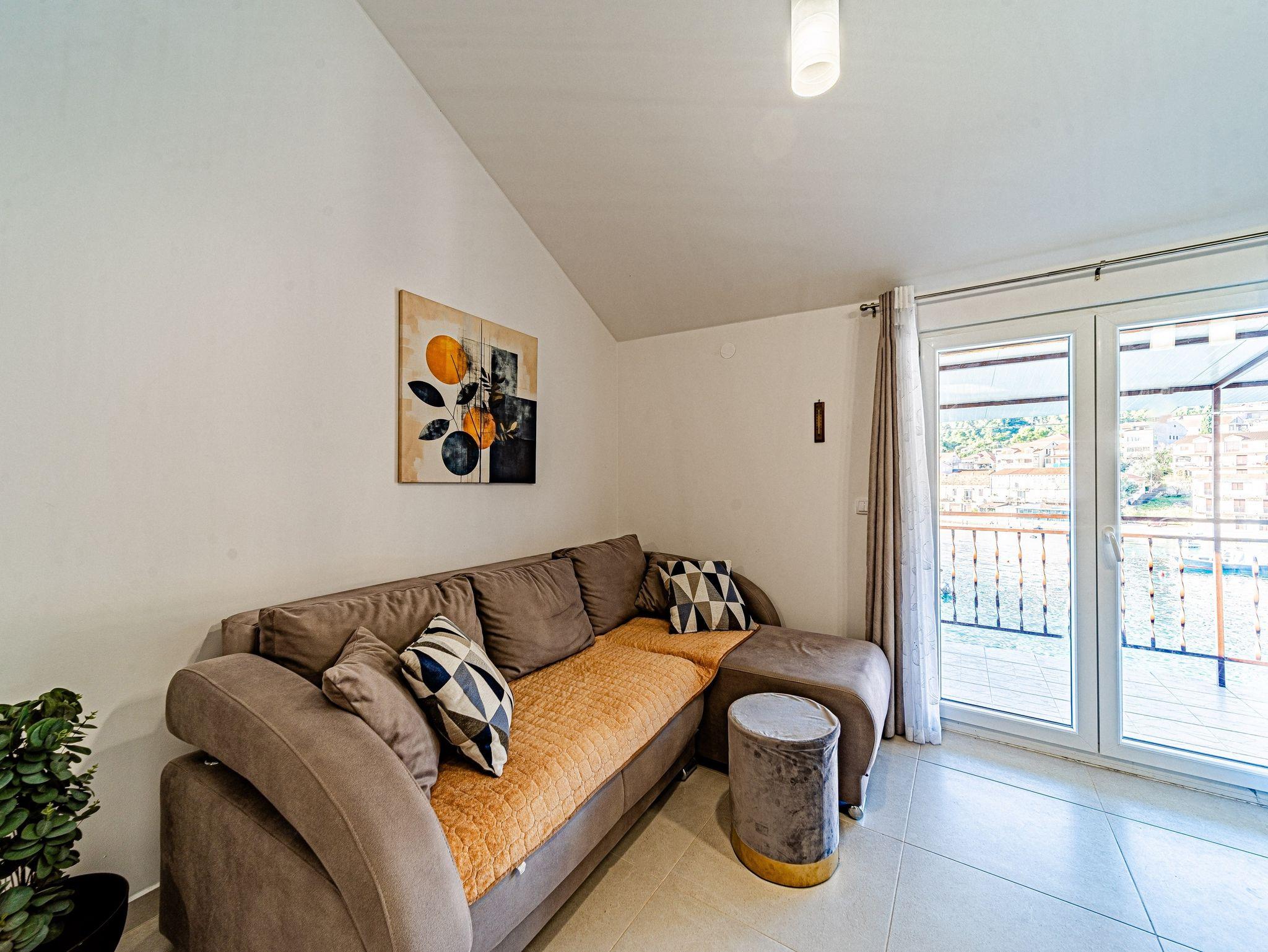 Studio bietet Platz für 3 Gäste. Die Betten sind in Schlafzimmern, die es 1 gibt, und in Wohnzimmer, innerhalb einer Gesamtfläche von 33m2, angeordnet. Die Gäste haben eine eigene Terrasse zur Verfügung, auf der sie in warmen Sommernächten genießen können. Das Studio-Apartment bietet Meerblick. Es ist erlaubt, Speisen auf dem Gemeinschafts-Grill vorzubereiten. IM PREIS INBEGRIFFEN: Kurtaxe, Endreinigung, Klimatisierung, Parkplatz, Internet, Bügeleisen, Bügelbrett, Föhn. Die Verfügbarkeit zusätzlicher Dienstleistungen in Ihrem reservierten Termin und die Preise derselben (falls nicht aufgeführt) müssen im Voraus überprüft werden. Zusätzliche Dienstleistungen die in der Zahlungsaufforderung nicht aufgeführt sind werden direkt beim Vermieter bezahlt, angenommen der Gast nutzt auch diese. Ermäßigung auf den Grundpreis: Gratistag 14=13 (bei einem Aufenthalt von 14 Tagen oder mehr erhalten Sie einen Gratistag für den Aufenthalt bis 31.12.26).