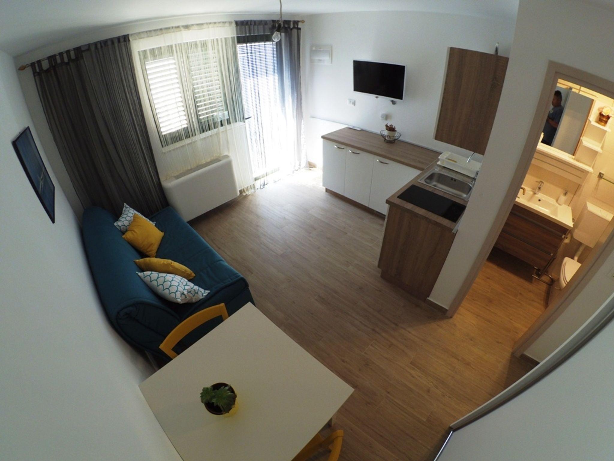 Studio bietet Platz für 2 Gäste. Die Betten sind in Schlafzimmern, die es 1 gibt, innerhalb einer Gesamtfläche von 22m2, angeordnet. Das Studio-Apartment bietet Meerblick. Die reservierte Unterkunftseinheit verfügt über einen gemeinsame Terrasse. IM PREIS INBEGRIFFEN: Kurtaxe, Endreinigung, Klimatisierung, Parkplatz, Internet, Bootsanlegeplatz, Kinderbett, Bügeleisen, Bügelbrett, Föhn. UNVERBINDLICHE ZUSÄTZLICHE KOSTEN: Zentralheizung (2,00 € pro Nacht). Die Verfügbarkeit zusätzlicher Dienstleistungen in Ihrem reservierten Termin und die Preise derselben (falls nicht aufgeführt) müssen im Voraus überprüft werden. Zusätzliche Dienstleistungen die in der Zahlungsaufforderung nicht aufgeführt sind werden direkt beim Vermieter bezahlt, angenommen der Gast nutzt auch diese. Ermäßigung auf den Grundpreis: Gratistag 21=19 (bei einem Aufenthalt von 21 Tagen oder mehr erhalten Sie 2 Gratistage für den Aufenthalt bis 31.12.26).