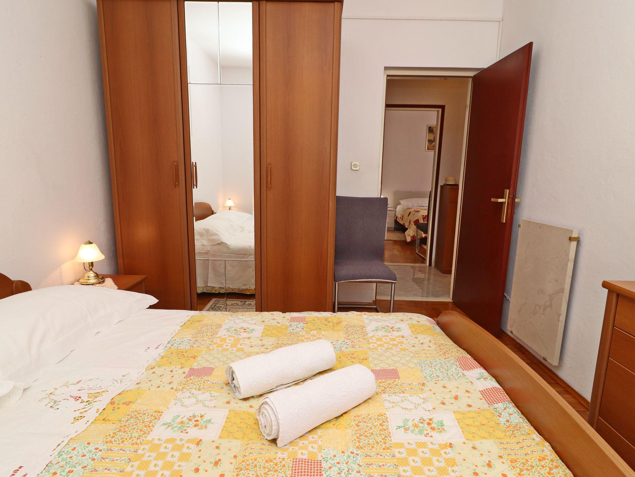 Ferienwohnung bietet Platz für 7 Gäste. Die Betten sind in Schlafzimmern, die es 3 gibt, und in Wohnzimmer, innerhalb einer Gesamtfläche von 85m2, angeordnet. Die Gäste haben eine eigene Terrasse zur Verfügung, auf der sie in warmen Sommernächten genießen können. Das Apartment bietet Meerblick. Es ist erlaubt, Speisen auf dem Gemeinschafts-Grill vorzubereiten. IM PREIS INBEGRIFFEN: Kurtaxe, Endreinigung, Klimatisierung, Parkplatz, Internet, Bootsanlegeplatz, Bügeleisen, Bügelbrett. VERBINDLICHE ZUSÄTZLICHE KOSTEN: Aufzahlung für Kurzaufenthalte (prozentualer Zuschlag pro Nächtigungsanzahl: 30% - 1, 20% - 2, 10% - 3). Die Verfügbarkeit zusätzlicher Dienstleistungen in Ihrem reservierten Termin und die Preise derselben (falls nicht aufgeführt) müssen im Voraus überprüft werden. Zusätzliche Dienstleistungen die in der Zahlungsaufforderung nicht aufgeführt sind werden direkt beim Vermieter bezahlt, angenommen der Gast nutzt auch diese.