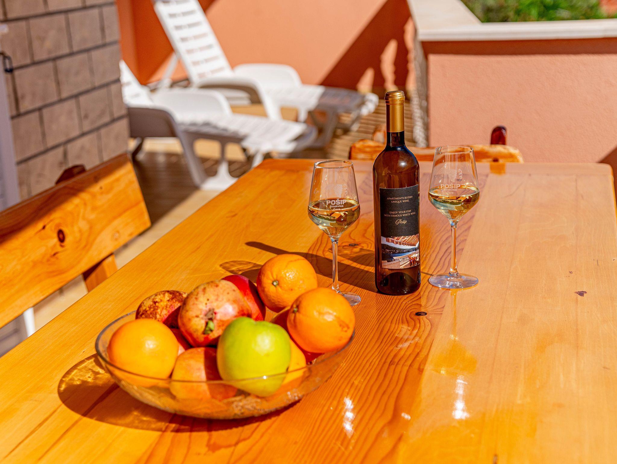 Ferienwohnung bietet Platz für 8 Gäste. Die Betten sind in Schlafzimmern, die es 4 gibt, innerhalb einer Gesamtfläche von 96m2, angeordnet. Die Gäste haben eine eigene Terrasse zur Verfügung, auf der sie in warmen Sommernächten genießen können. Das Apartment bietet Meerblick. Es ist erlaubt, Speisen auf dem Gemeinschafts-Grill vorzubereiten. IM PREIS INBEGRIFFEN: Kurtaxe, Endreinigung, Klimatisierung, Parkplatz, Internet, Wäschewaschen, Bootsanlegeplatz, Kinderbett, Bügeleisen, Bügelbrett, Föhn, Liegestühle. Die Verfügbarkeit zusätzlicher Dienstleistungen in Ihrem reservierten Termin und die Preise derselben (falls nicht aufgeführt) müssen im Voraus überprüft werden. Zusätzliche Dienstleistungen die in der Zahlungsaufforderung nicht aufgeführt sind werden direkt beim Vermieter bezahlt, angenommen der Gast nutzt auch diese. Ermäßigung auf den Grundpreis: Gratistag 14=13 (bei einem Aufenthalt von 14 Tagen oder mehr erhalten Sie einen Gratistag für den Aufenthalt bis 31.12.26).